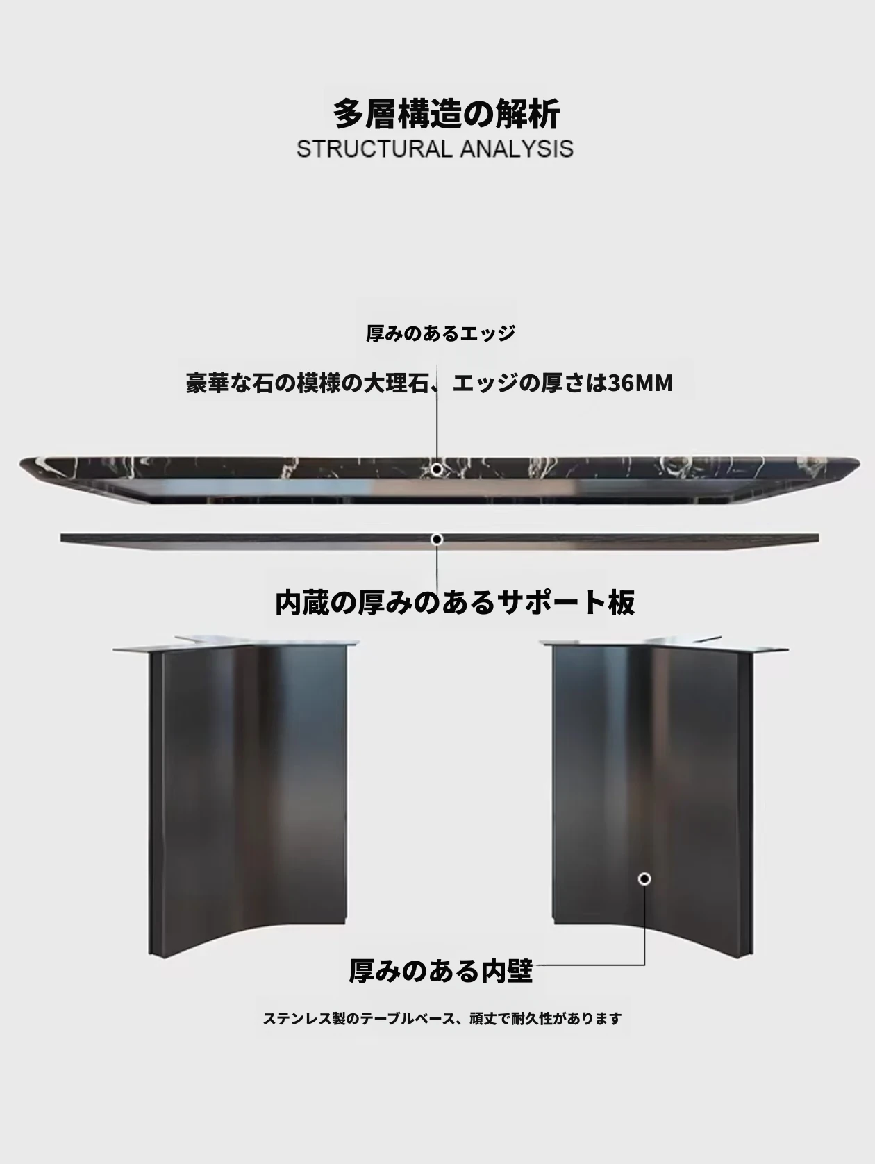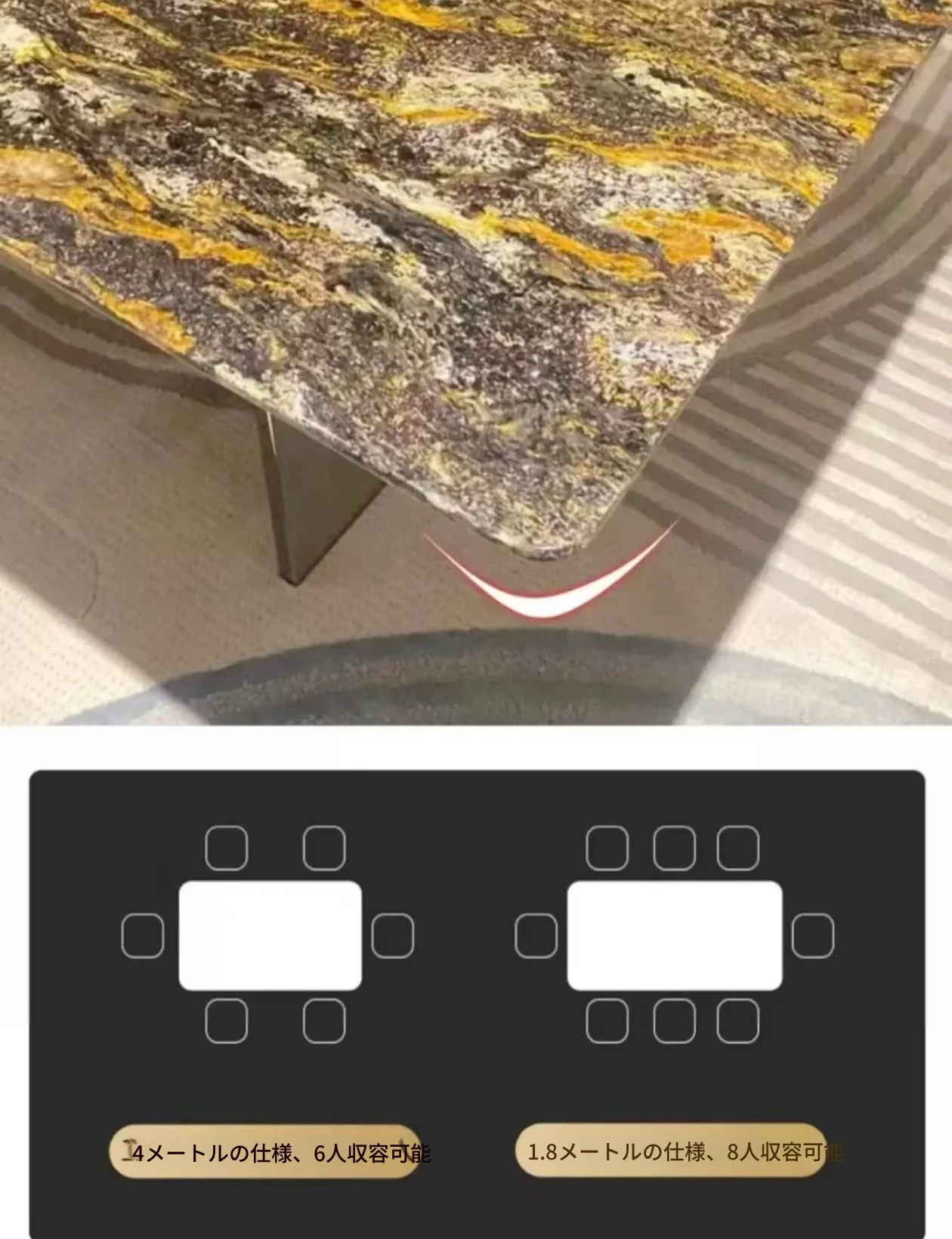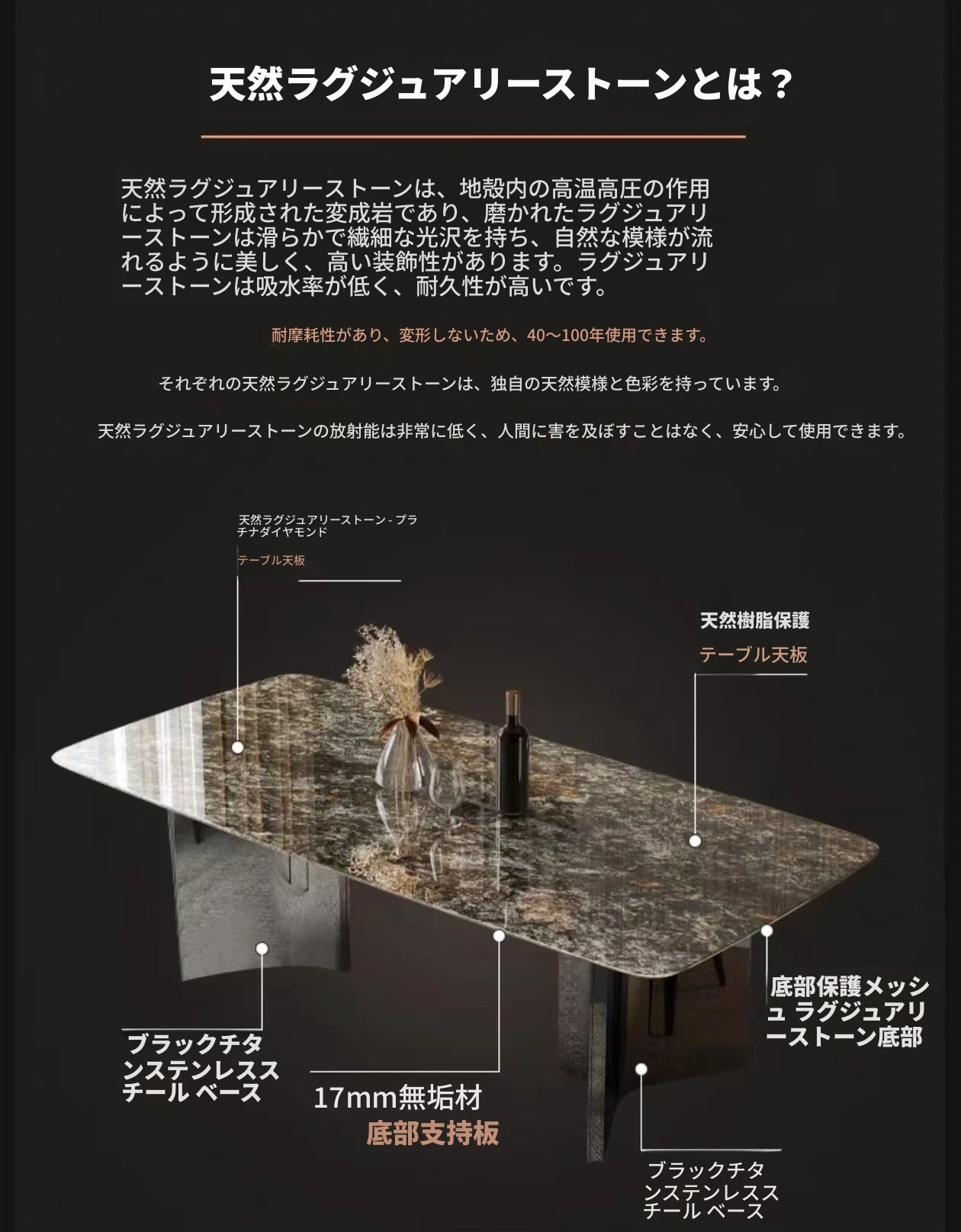 実店舗品質のイタリアンミニマルデザイン、プラチナダイヤモンド仕上げの天然大理石長方形ダイニングテーブル&チェアセット。洗練された美しさと耐久性を兼ね備えた贅沢な食卓で、特別なひとときをお楽しみください。