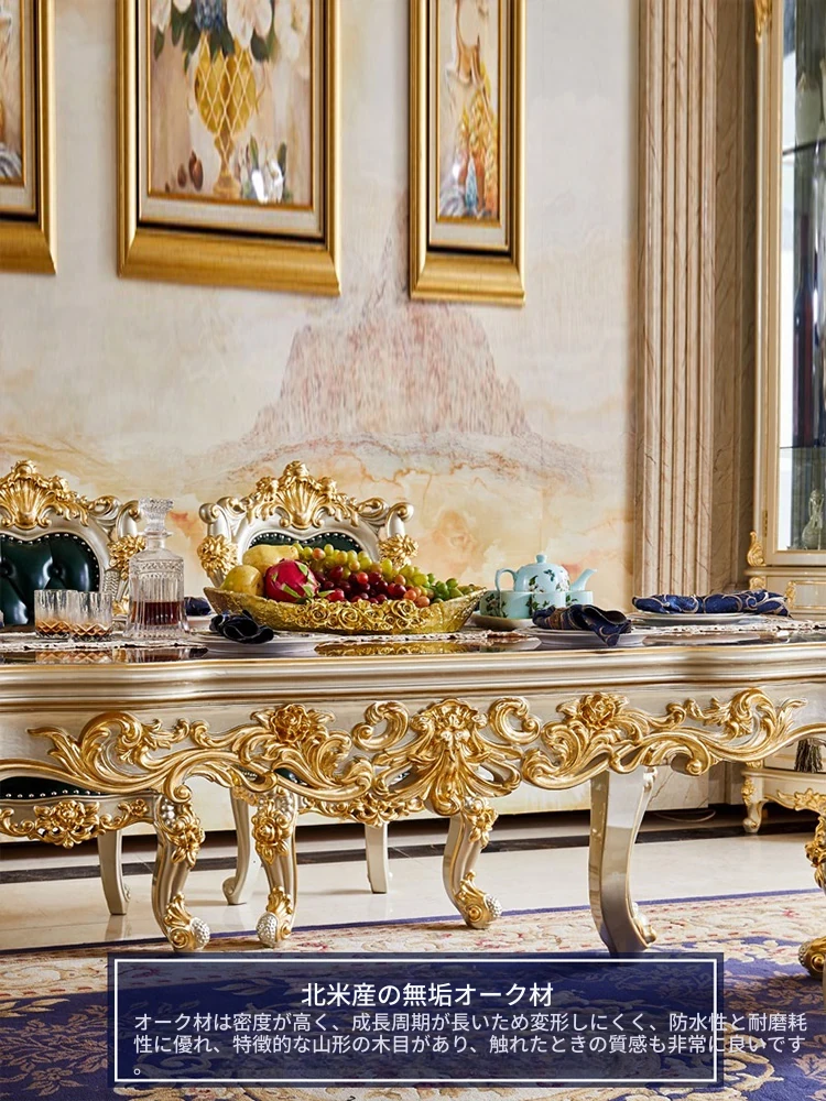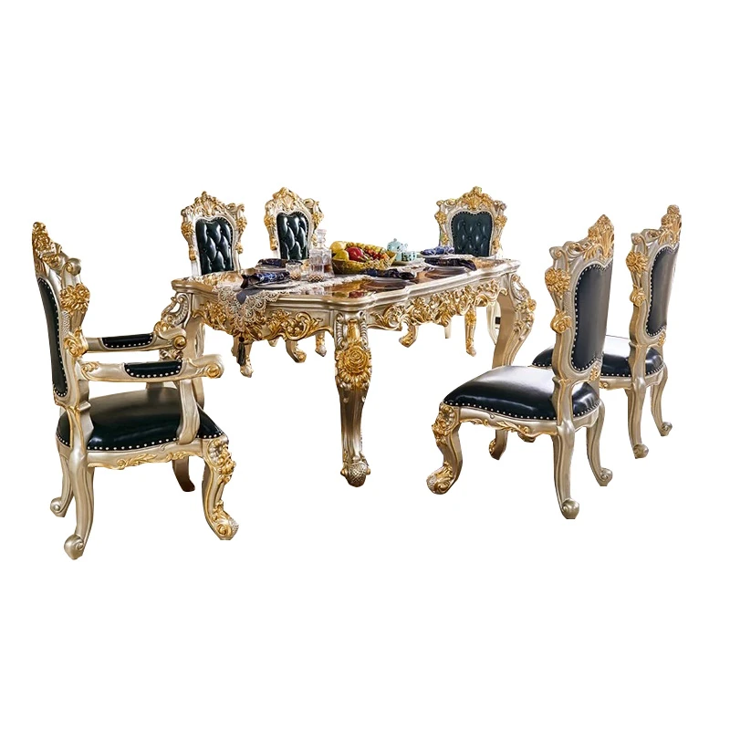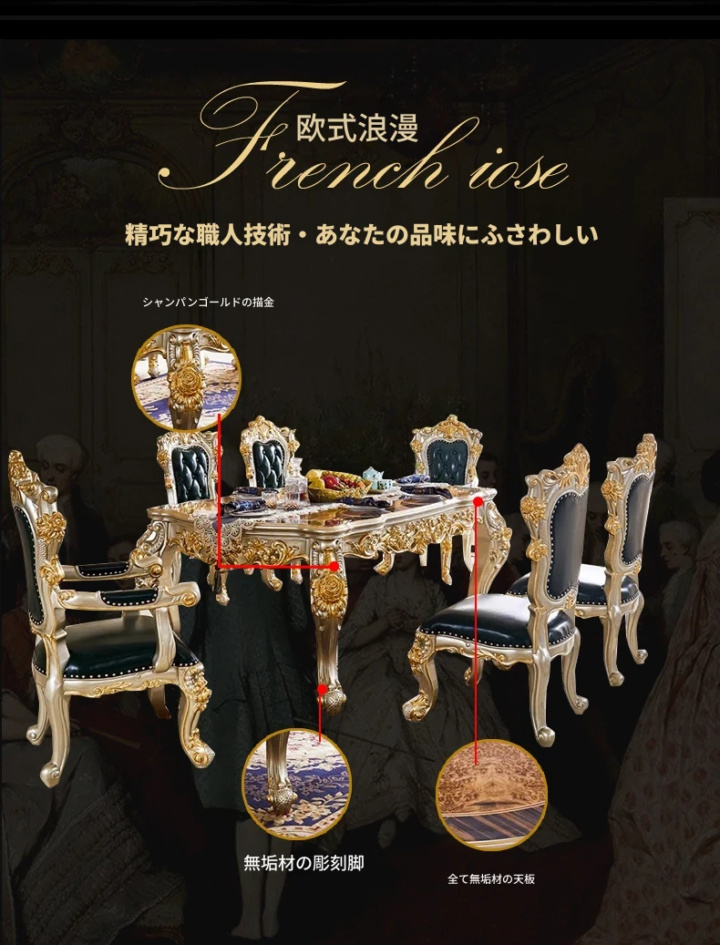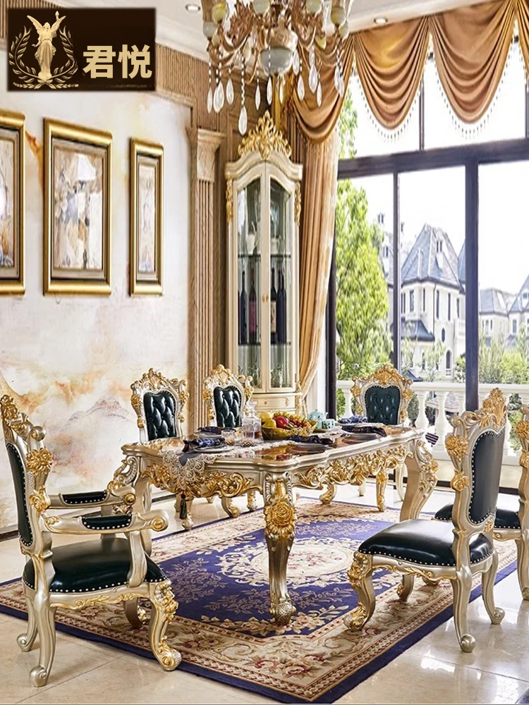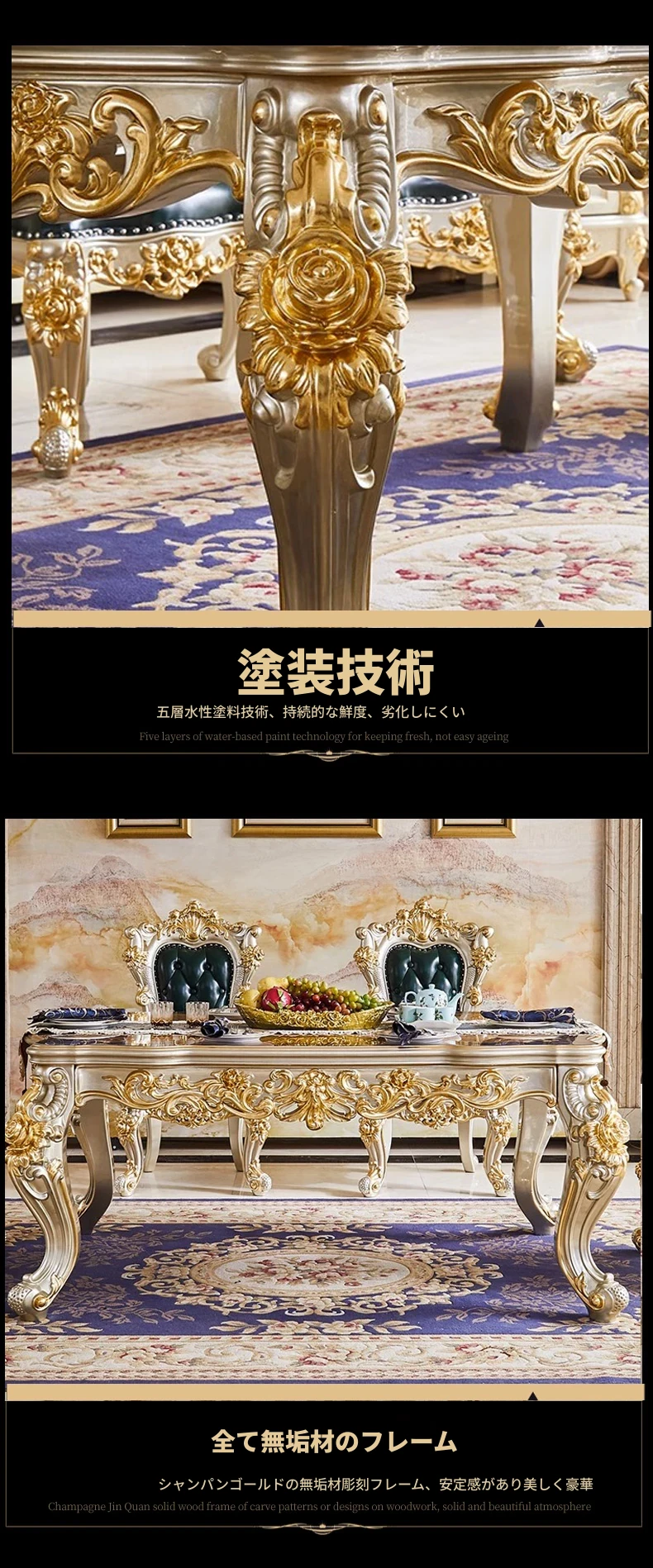 ヨーロピアンスタイルの四角テーブル アメリカンビラスタイル 大理石ダイニングテーブル&チェアセット 小型から大型住宅向け 本格的無垢材使用 長方形のレストランテーブルで、優雅な食卓を演出します!