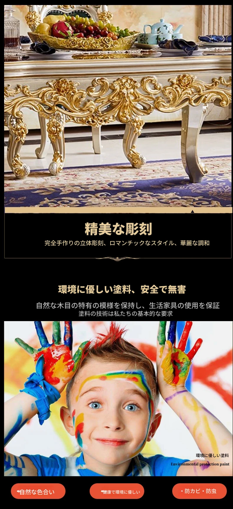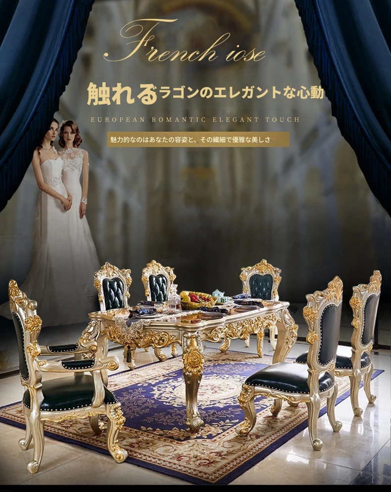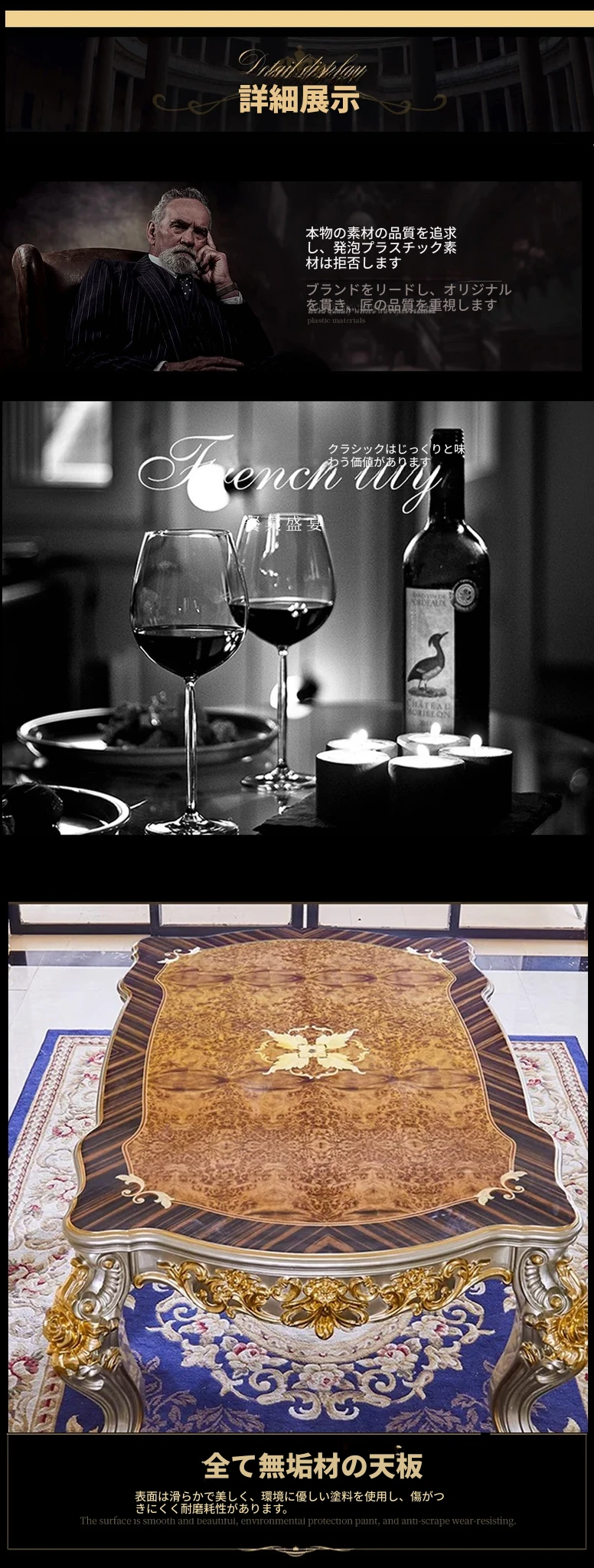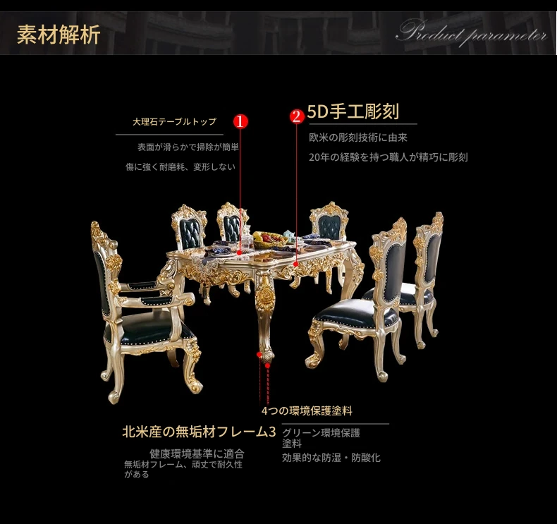 ヨーロピアンスタイルの四角テーブル アメリカンビラスタイル 大理石ダイニングテーブル&チェアセット 小型から大型住宅向け 本格的無垢材使用 長方形のレストランテーブルで、優雅な食卓を演出します!