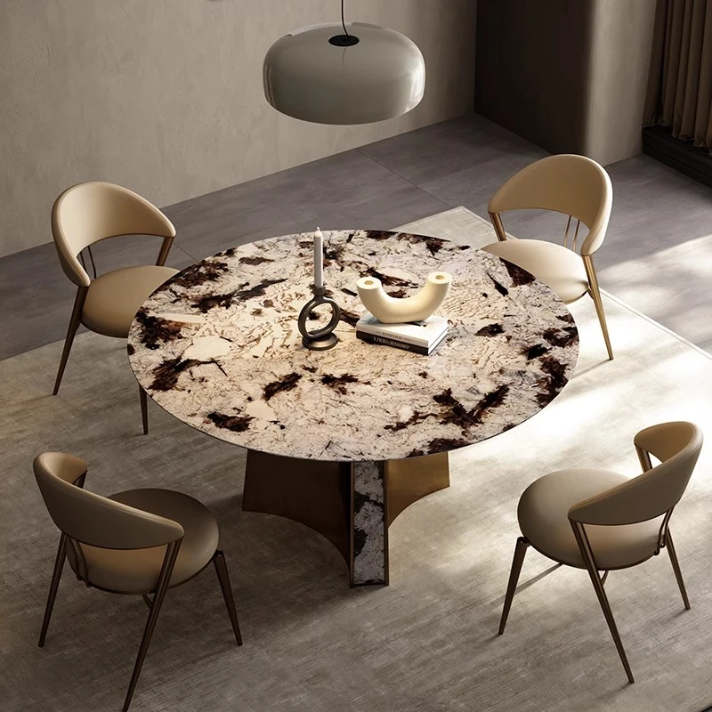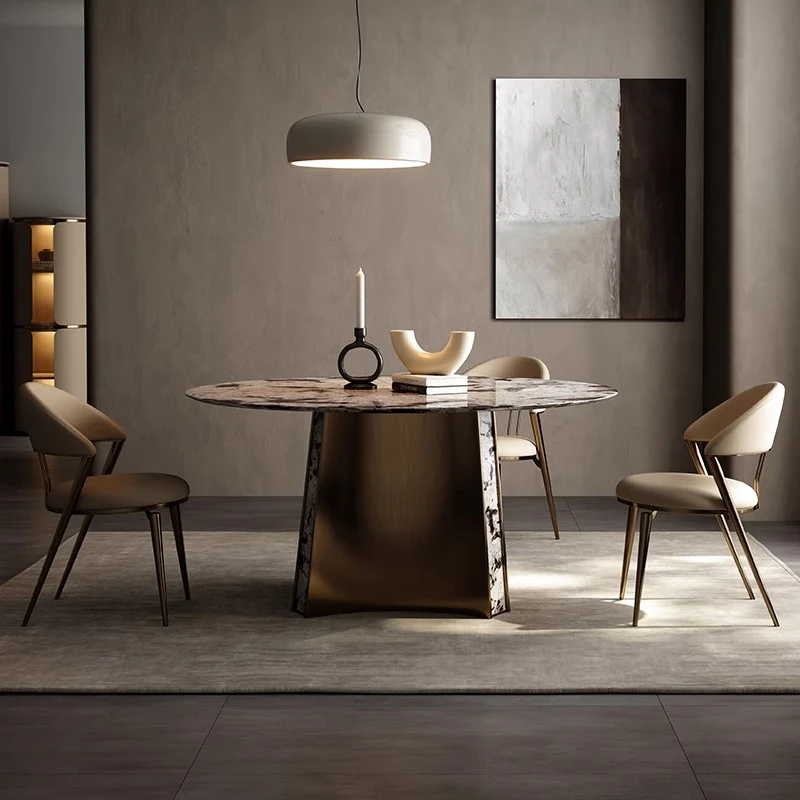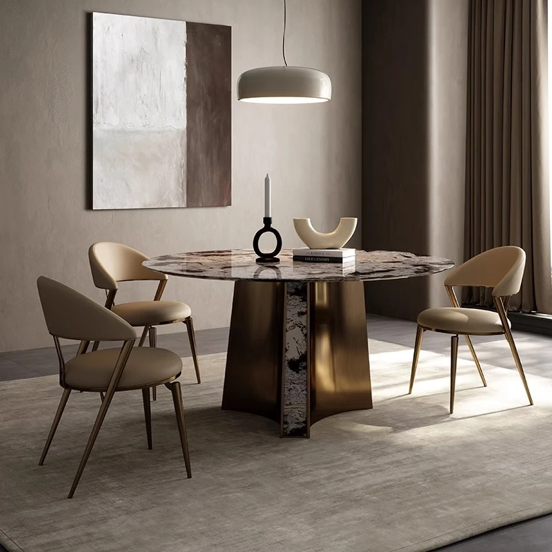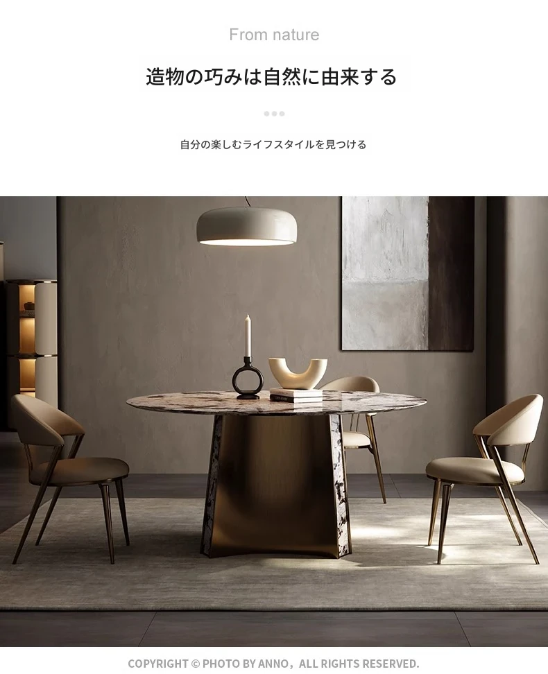 イタリアンラグジュアリー天然大理石ダイニングテーブル&チェアセット - モダンでシンプルな長方形デザイン、家庭用にぴったりな高級感溢れる一品!
