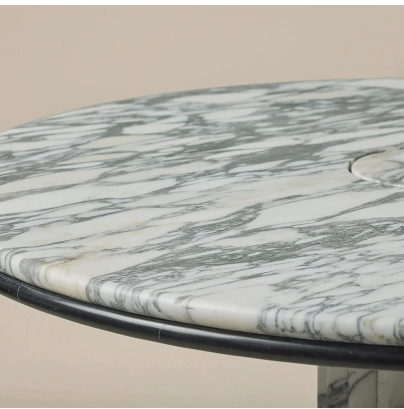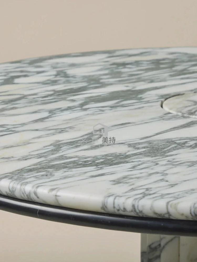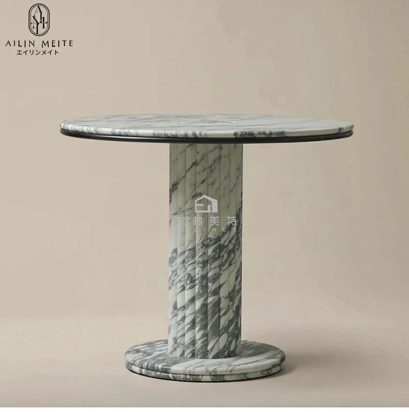 イタリアンミニマルラグジュアリー天然大理石ラウンドテーブル|シンプルでモダンな洗練デザインの高級ダイニングテーブル。優雅な雰囲気を演出し、どんなインテリアにもマッチします!