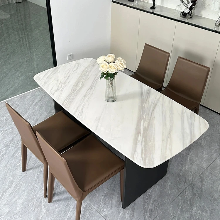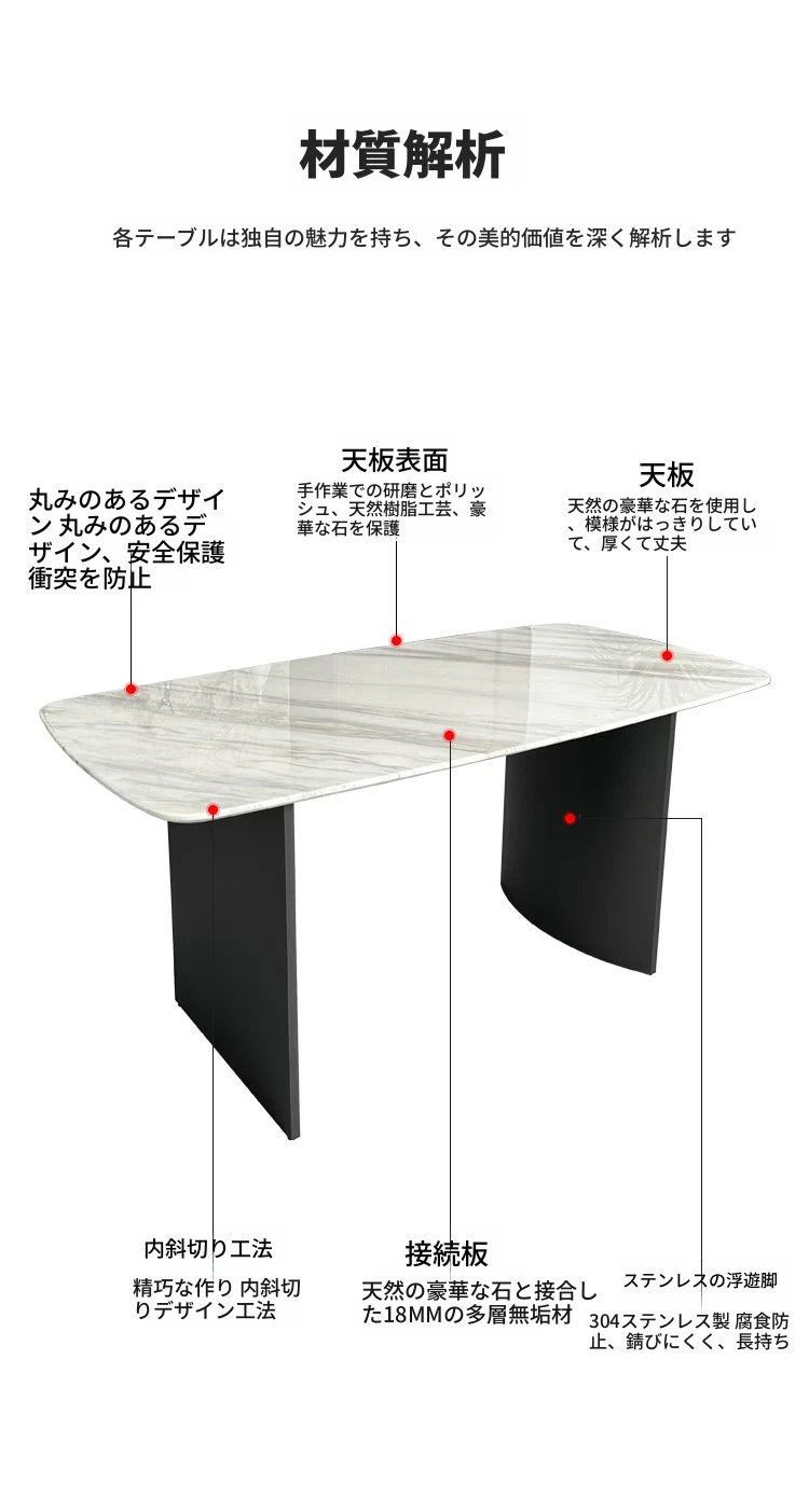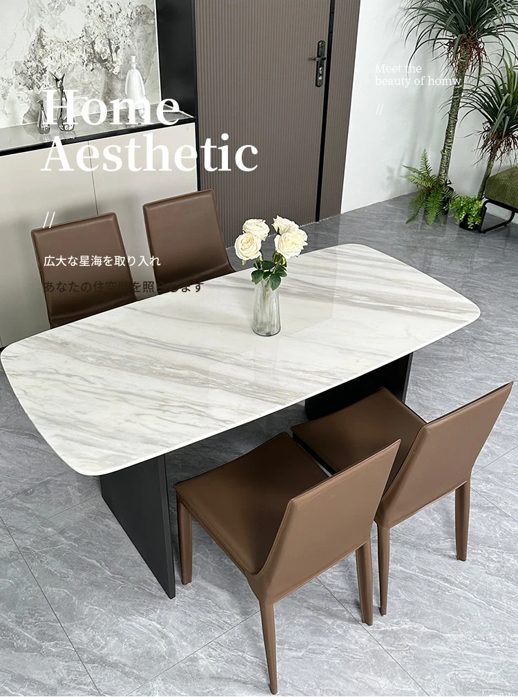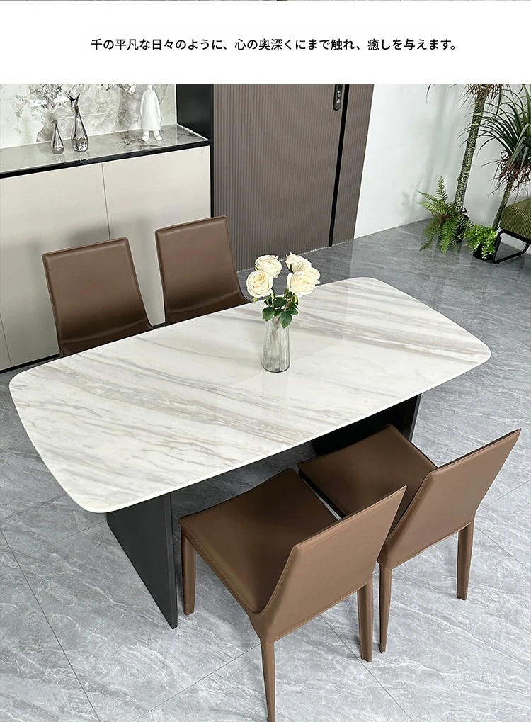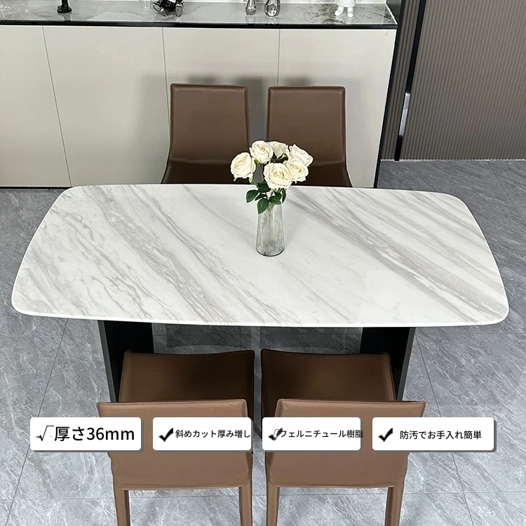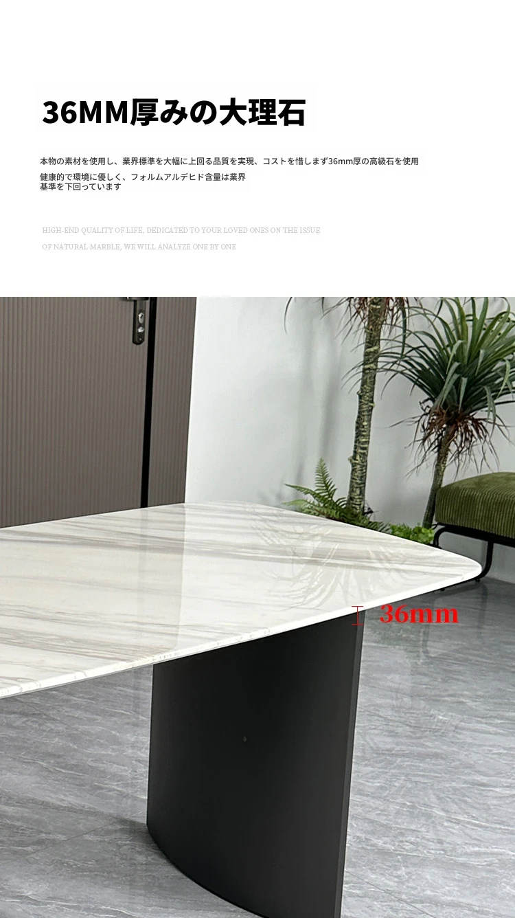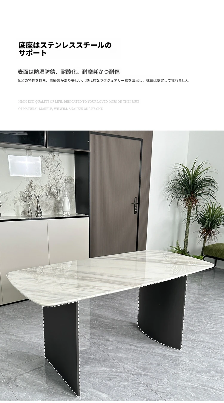 実店舗品質のイタリアンミニマルデザイン、天然大理石ダイニングテーブル。豪華な別荘や広々とした住宅に最適なジャズホワイトのラグジュアリーな石製テーブル。