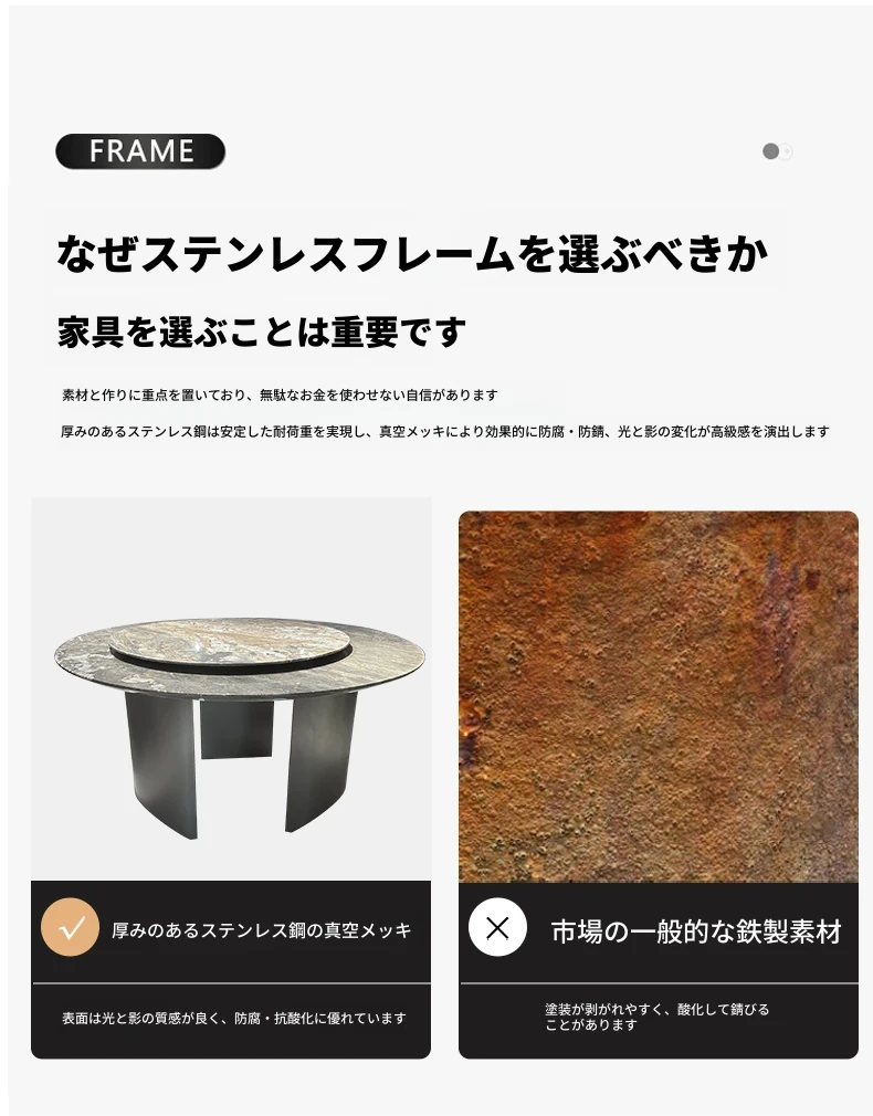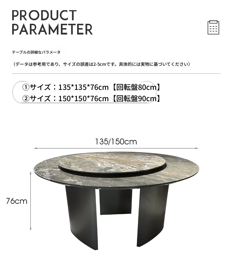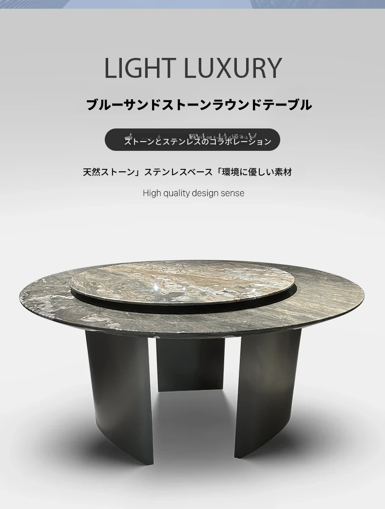 1.35*1.35メートル【回転台80cm追加】ブルーサンドスラブダイニングテーブル