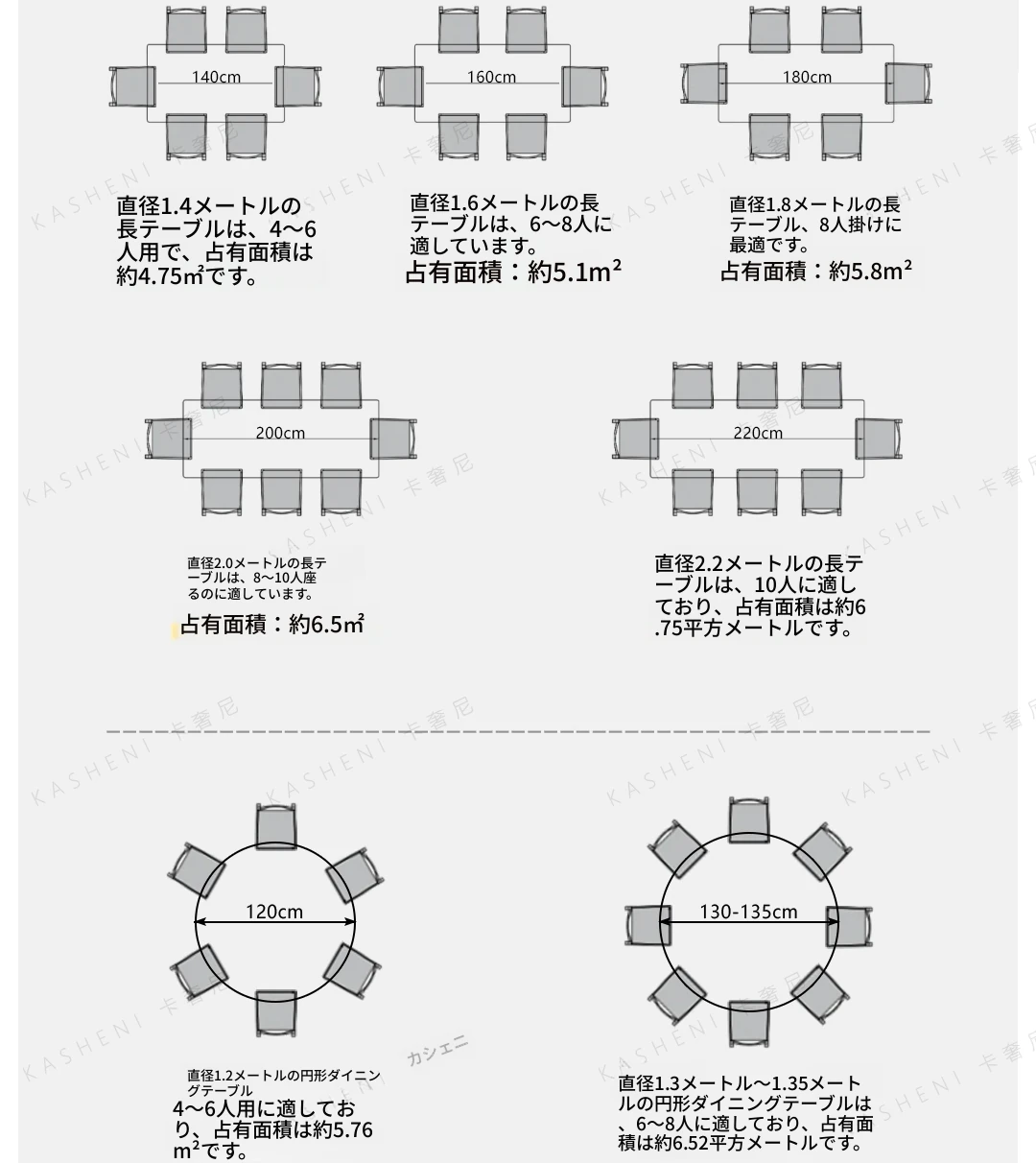 1.8メートル*0.9メートルパンドラ水滴ダイニングテーブル