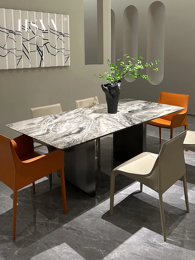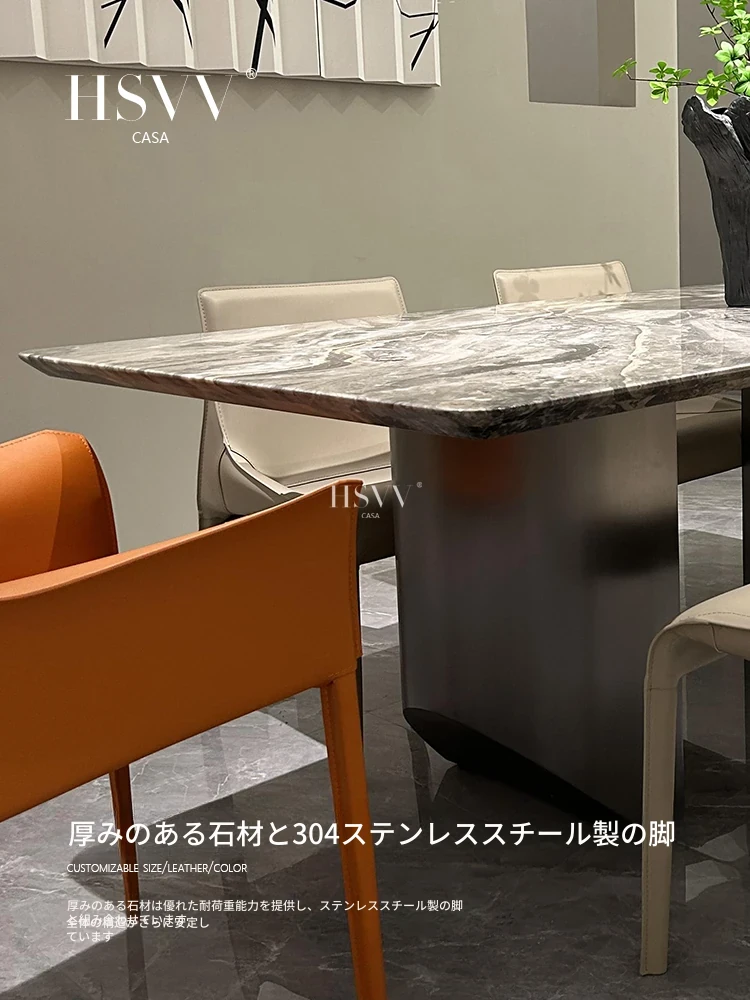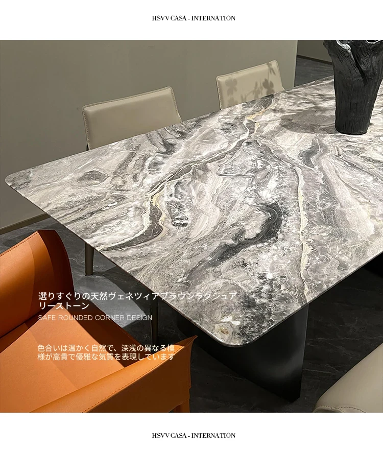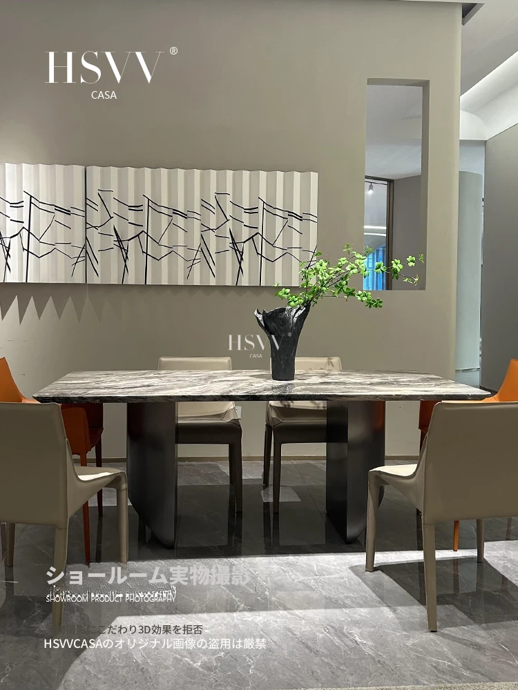 高級イタリアンデザインの大理石長方形ダイニングテーブル&チェアセット - エレガントで洗練された空間を演出する軽奢スタイルの食卓。