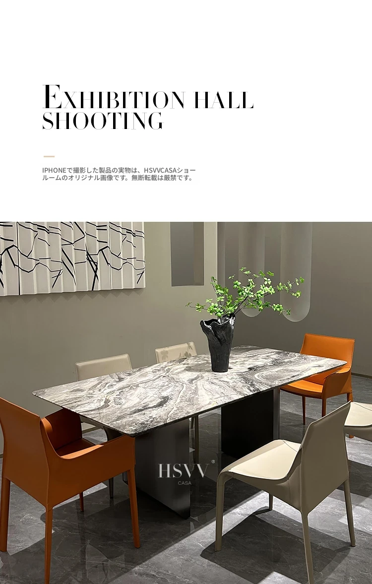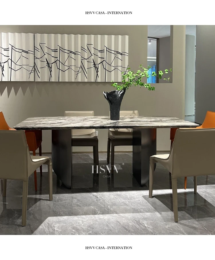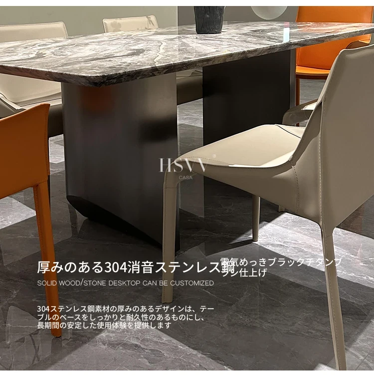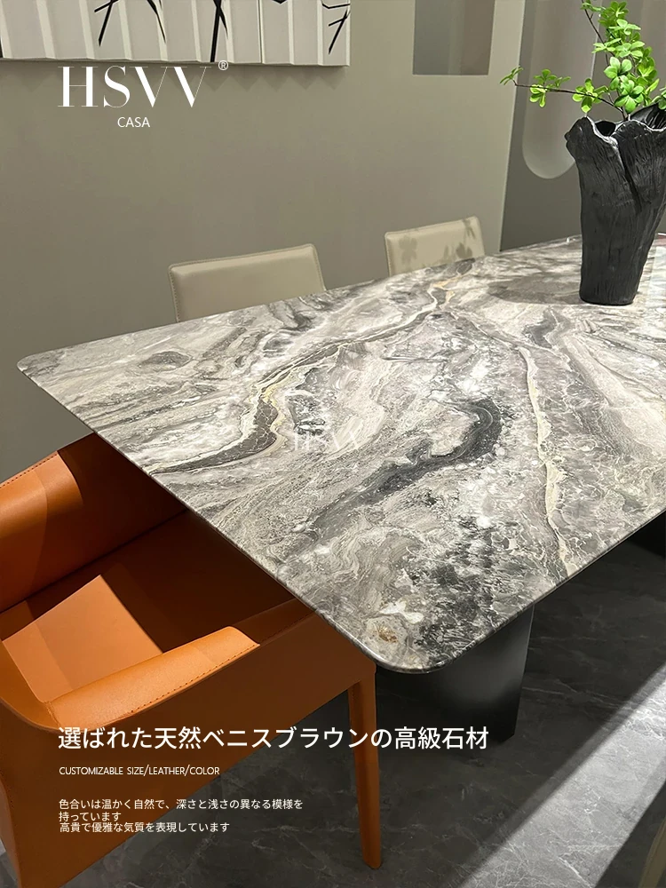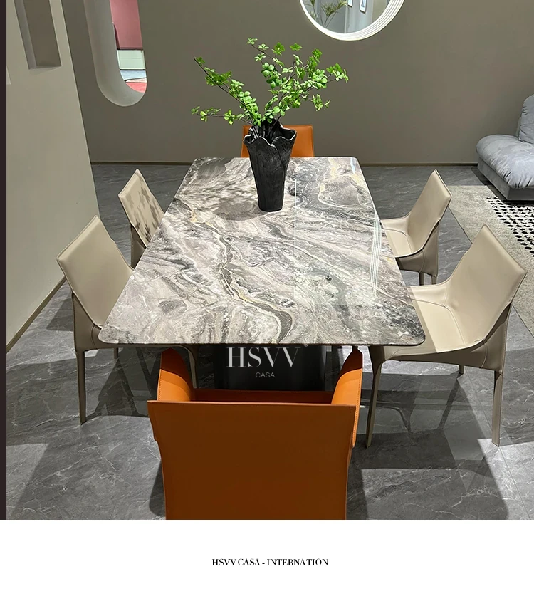 高級イタリアンデザインの大理石長方形ダイニングテーブル&チェアセット - エレガントで洗練された空間を演出する軽奢スタイルの食卓。