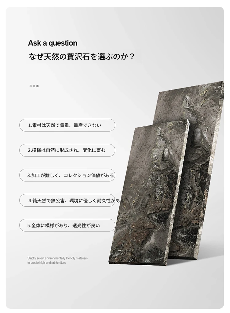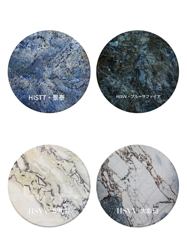 天然ヴェネツィアブラウンラグジュアリー石/ブラックチタンブラッシュメタル脚/動画画像選石材