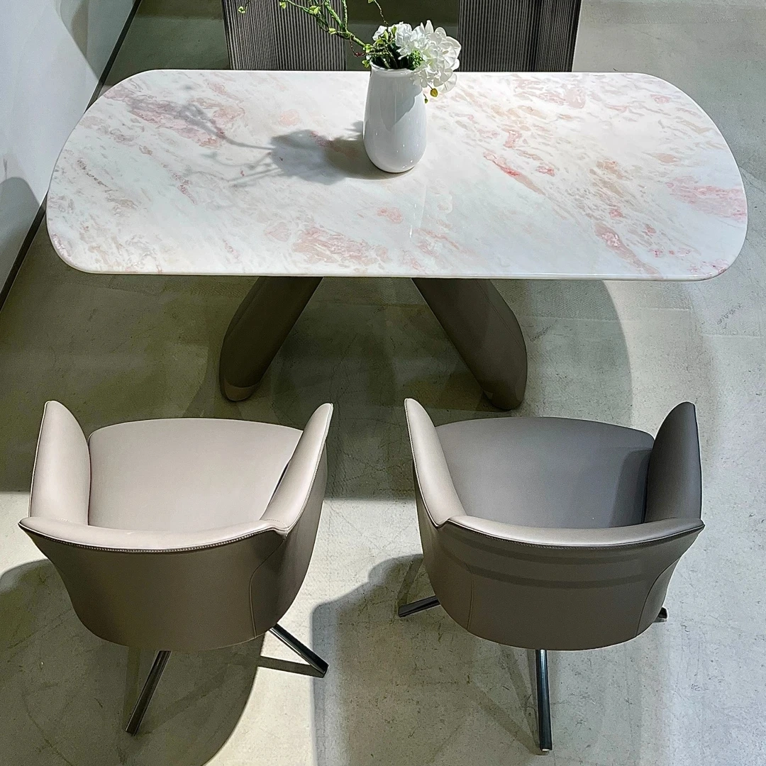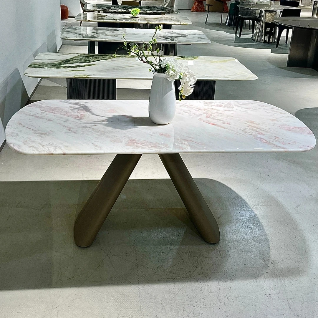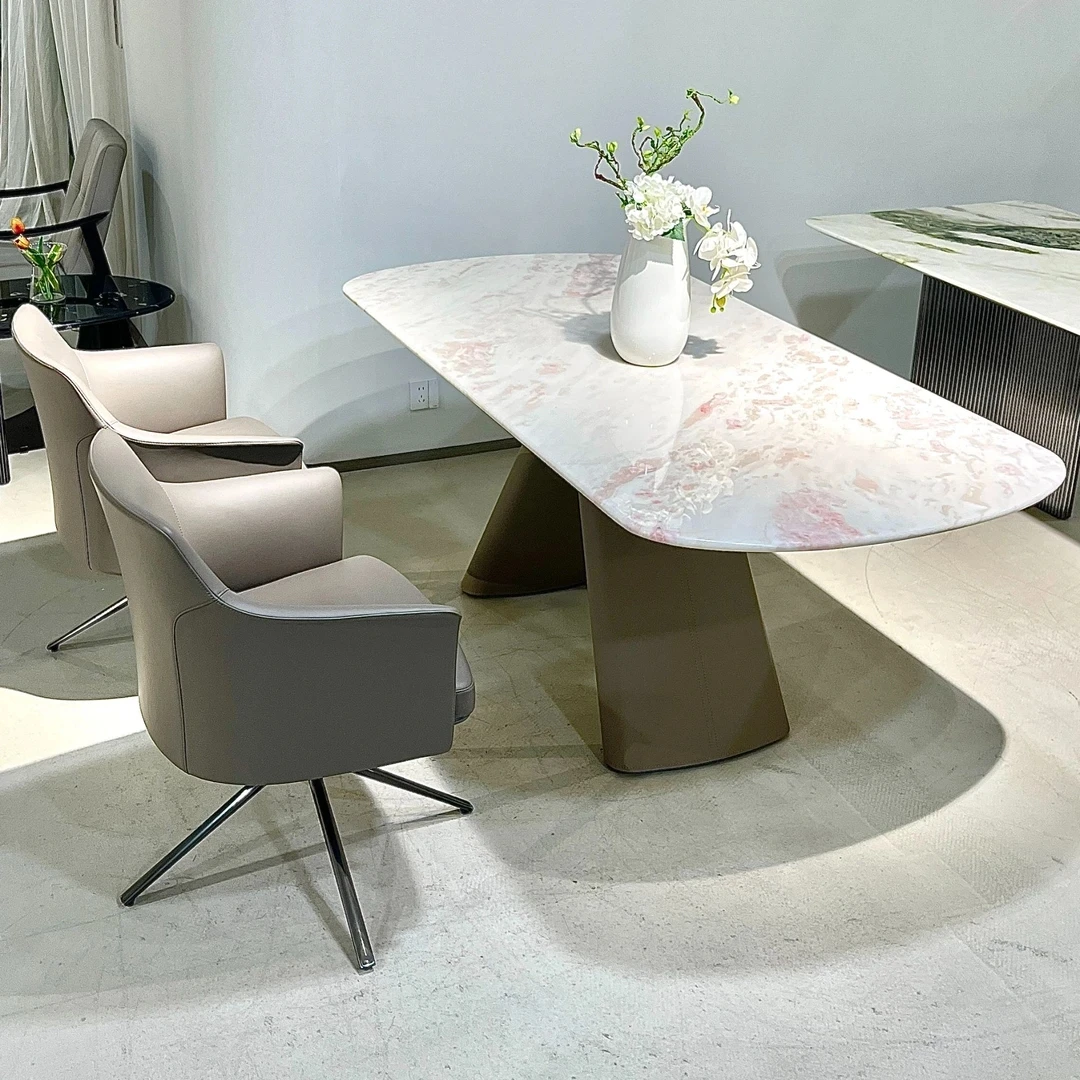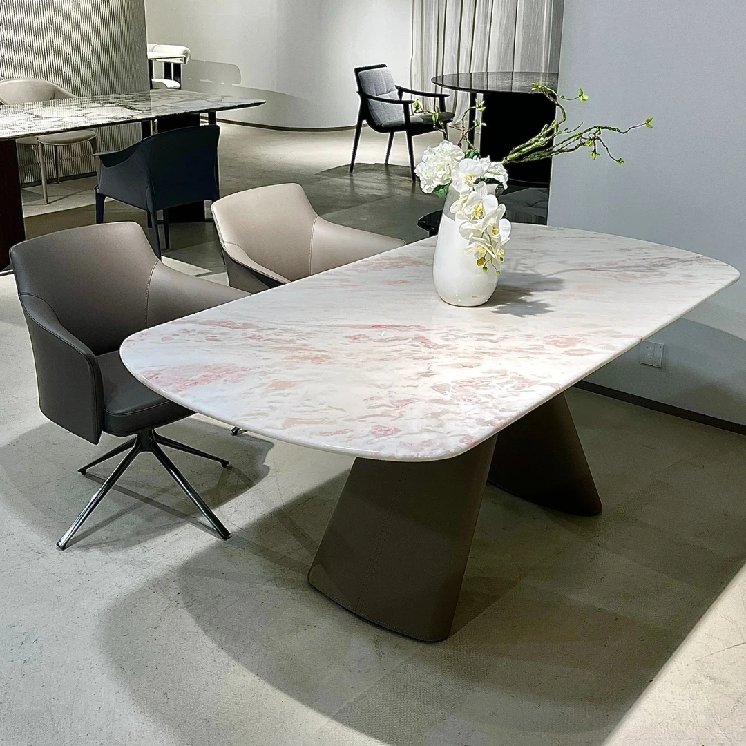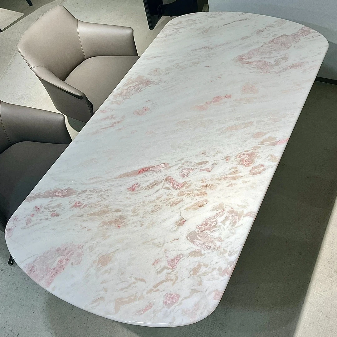 輸入天然のバラ色レインボーラグジュアリーストーンテーブル 高級感溢れるデザインの大理石長方形ダイニングテーブル - 上質な食事体験を提供する卓越した一品