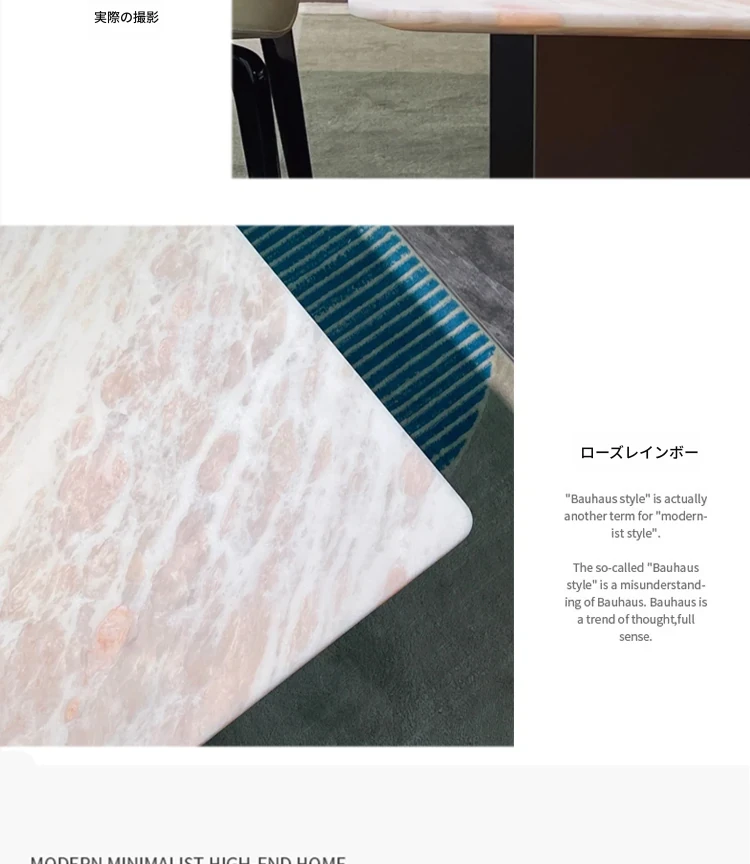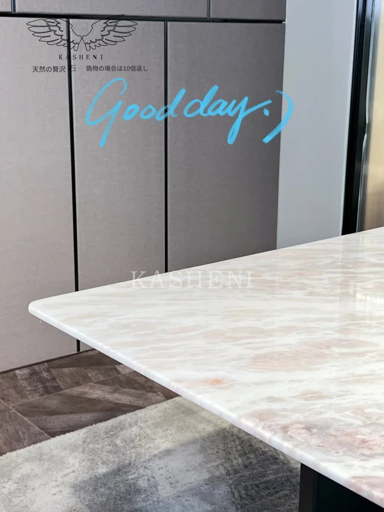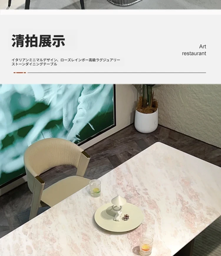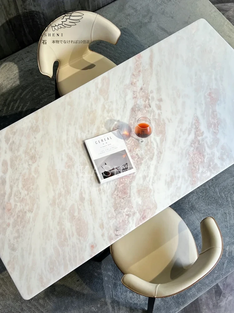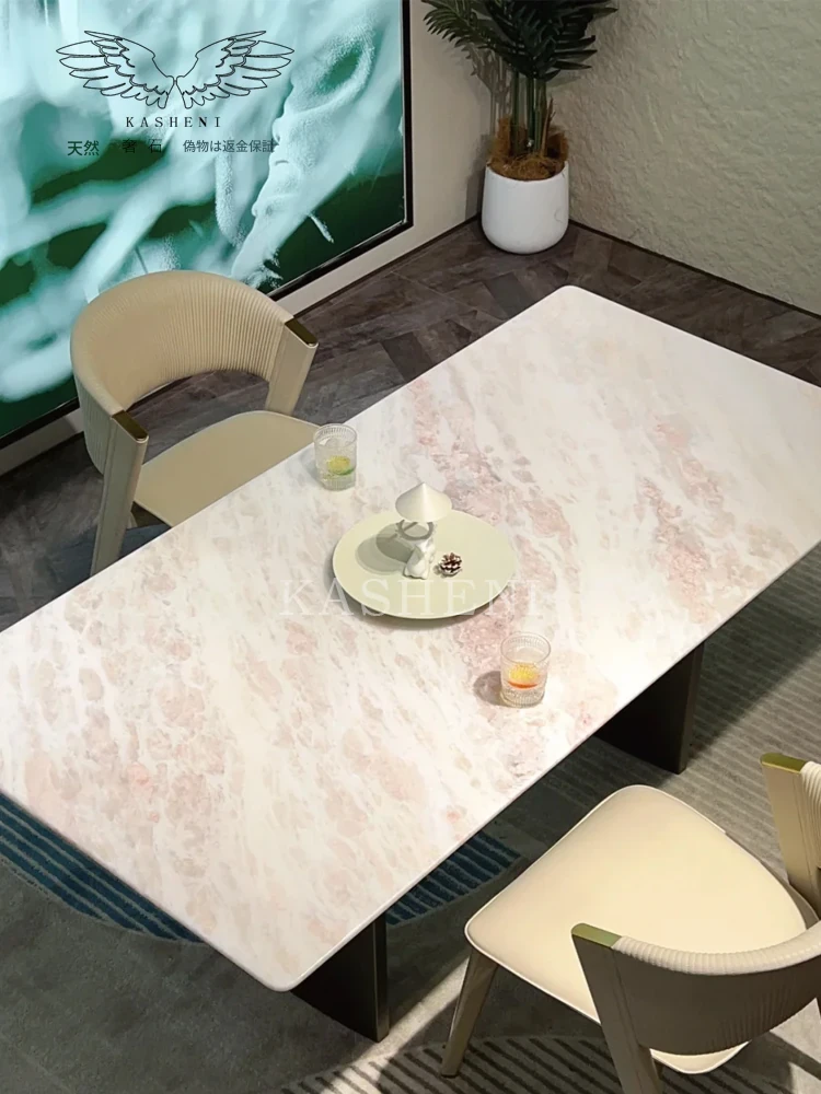 輸入品・天然ローズレインボー大理石ダイニングテーブル|高級感あふれるシンプルなデザイン|ピンクダイヤモンド・フェンディホワイトの贅沢な食卓で、特別なひとときを演出!