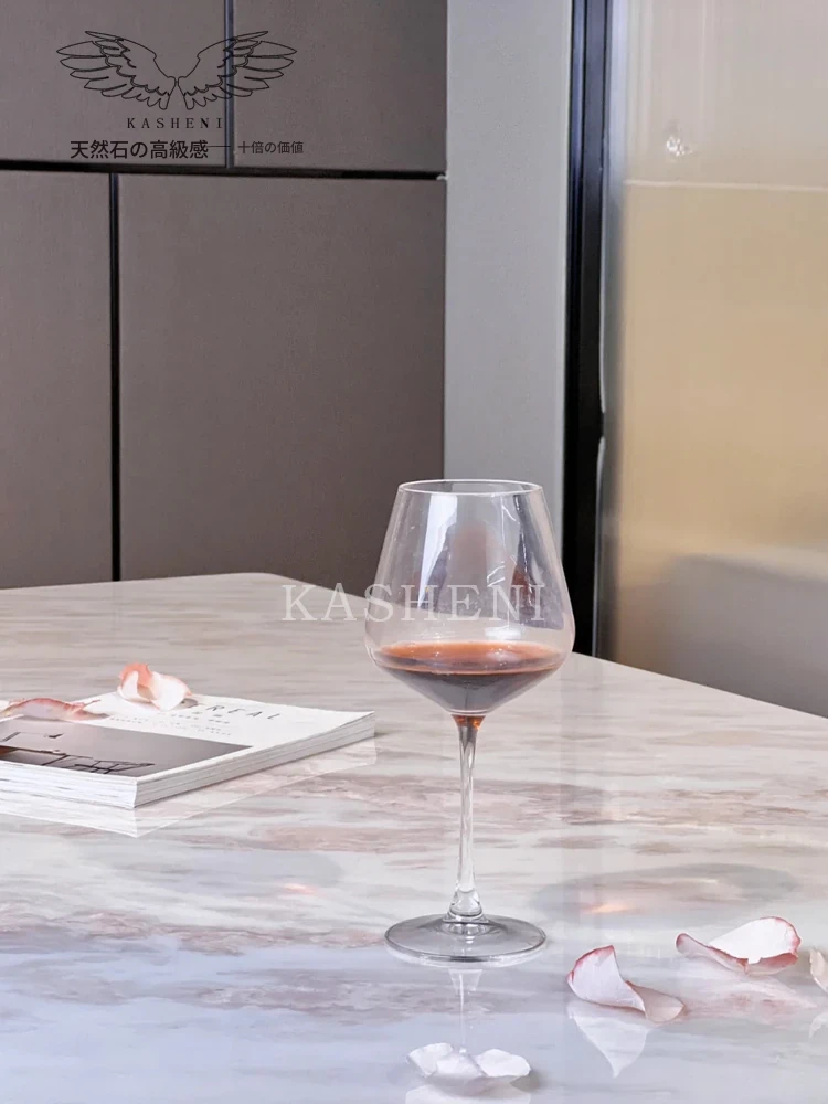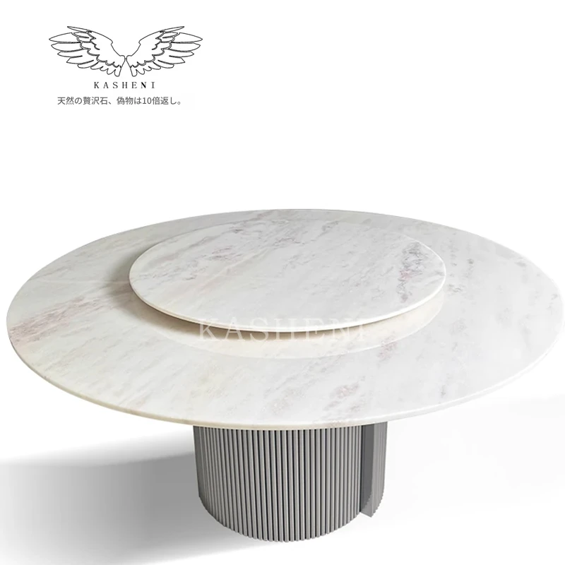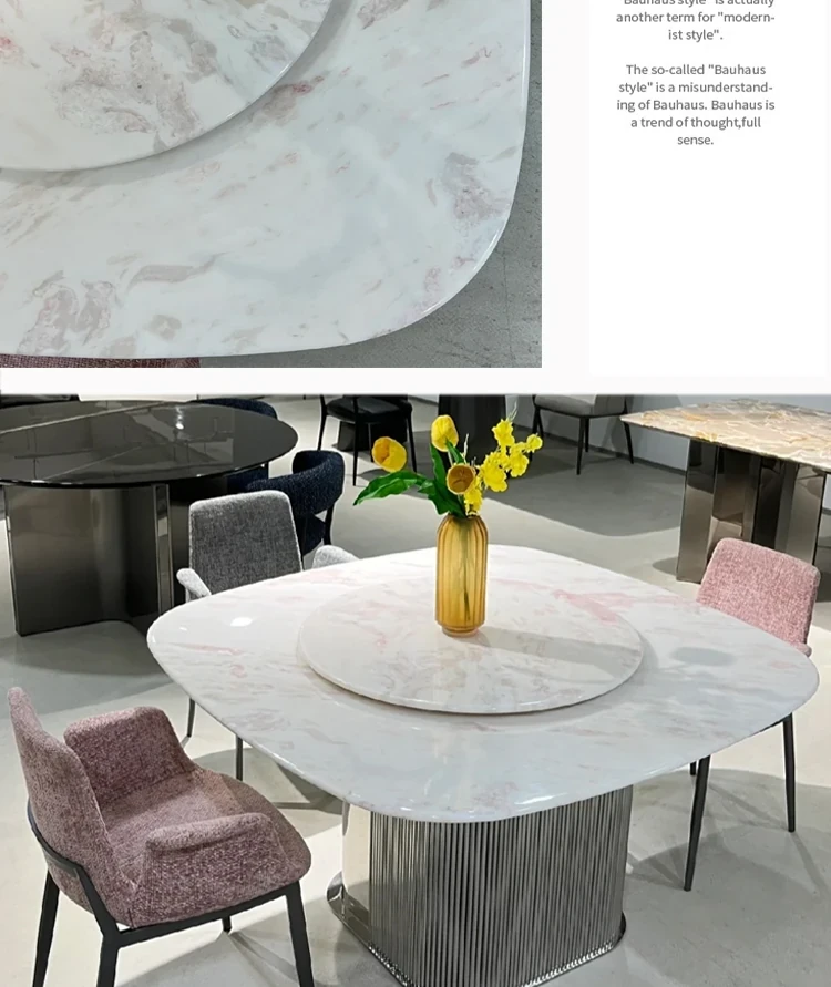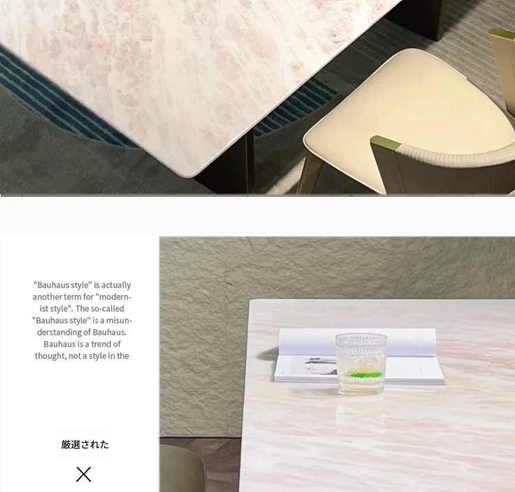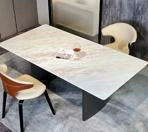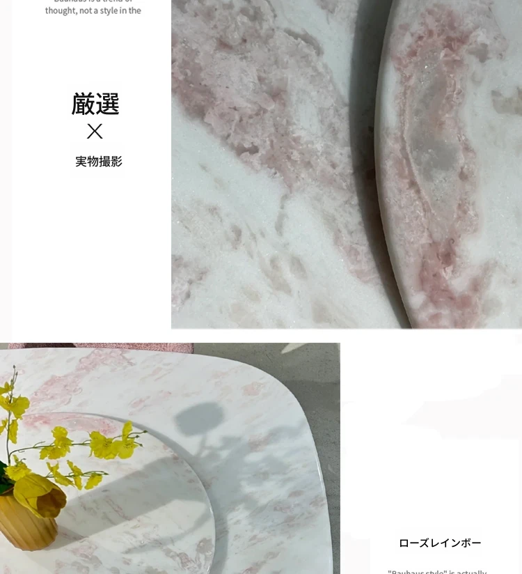 輸入品・天然ローズレインボー大理石ダイニングテーブル|高級感あふれるシンプルなデザイン|ピンクダイヤモンド・フェンディホワイトの贅沢な食卓で、特別なひとときを演出!