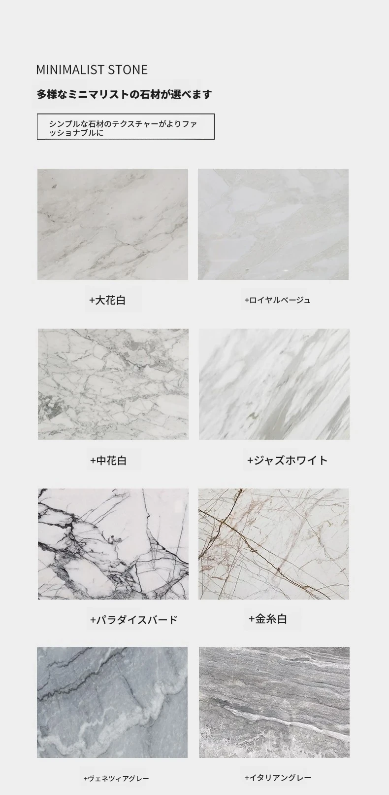 天然の石材は、各ブロックの模様が異なり、板の選択をサポート