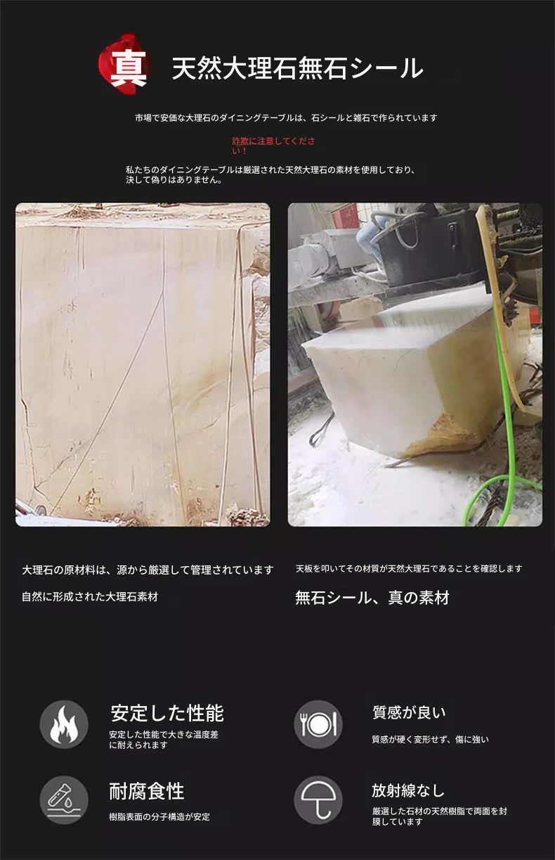 1.35*1.35メートル【回転台80cm付き】ブラックローズラグジュアリー石のダイニングテーブル