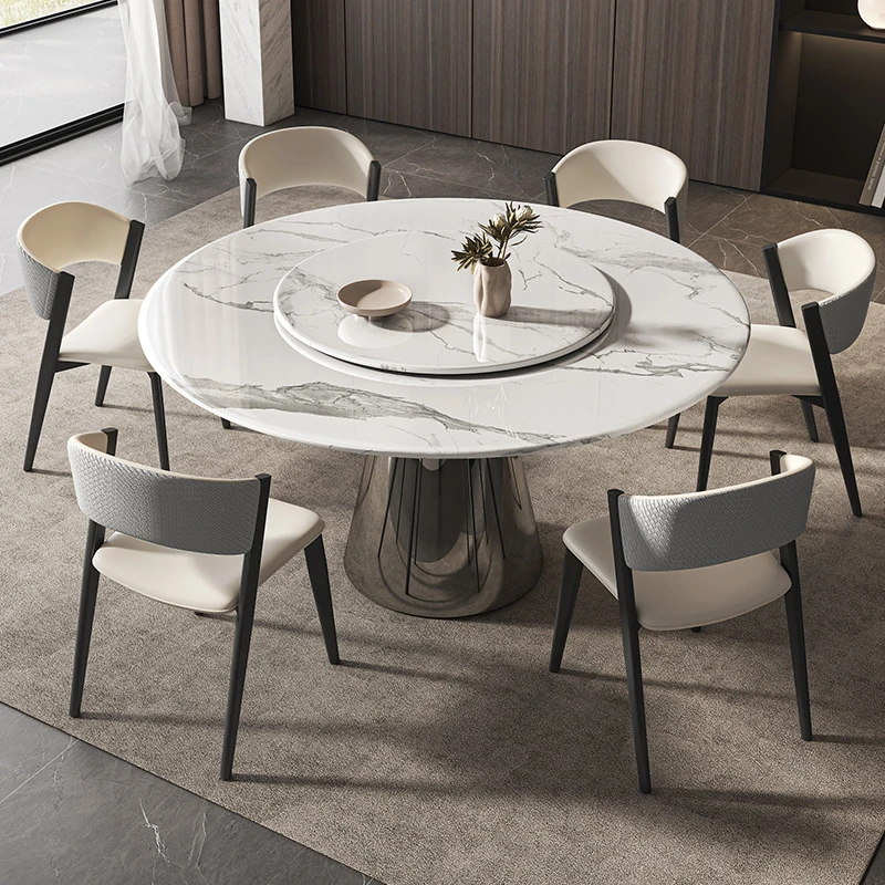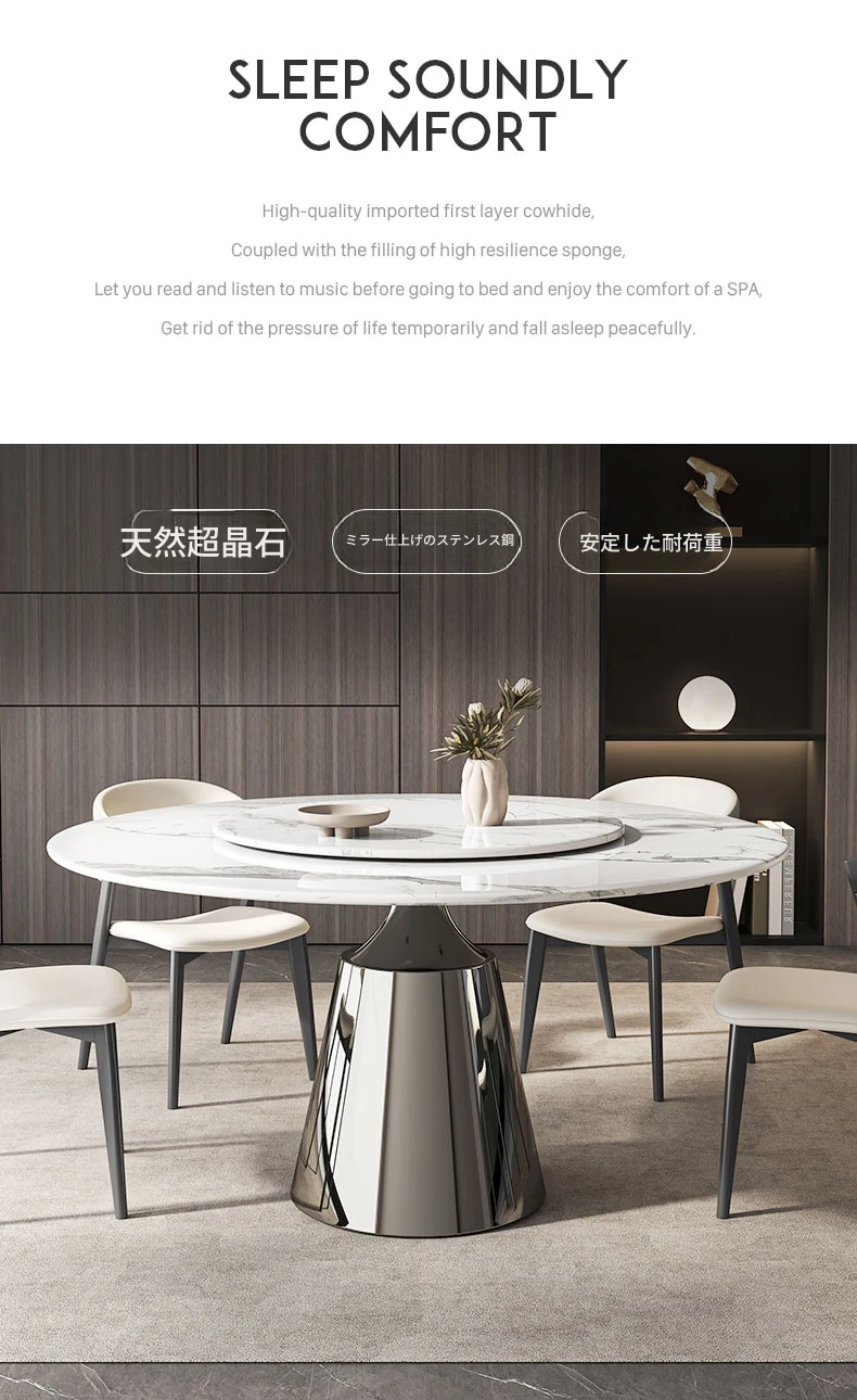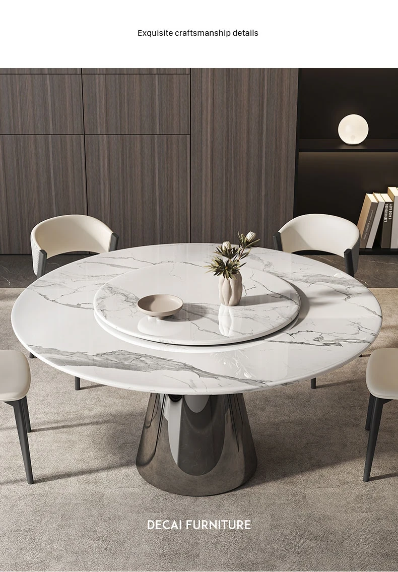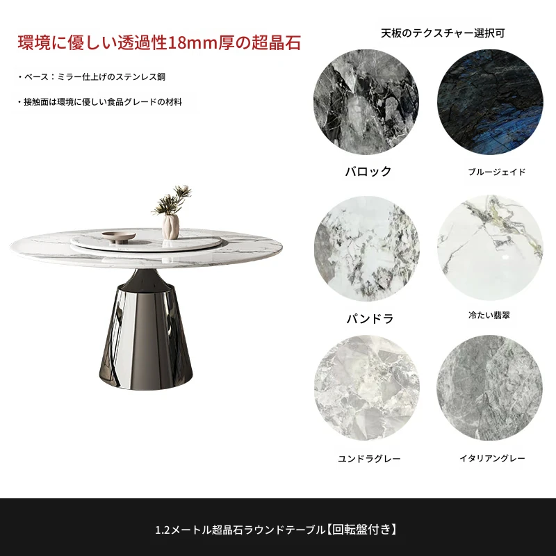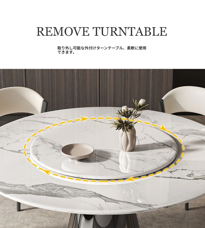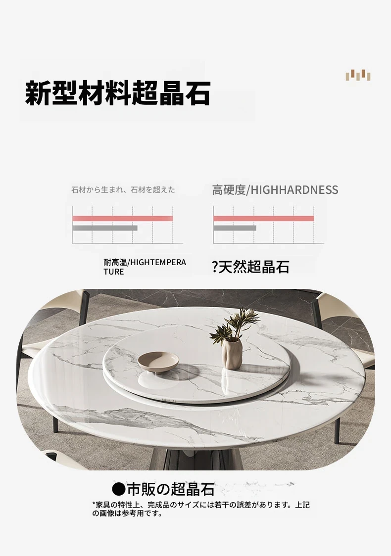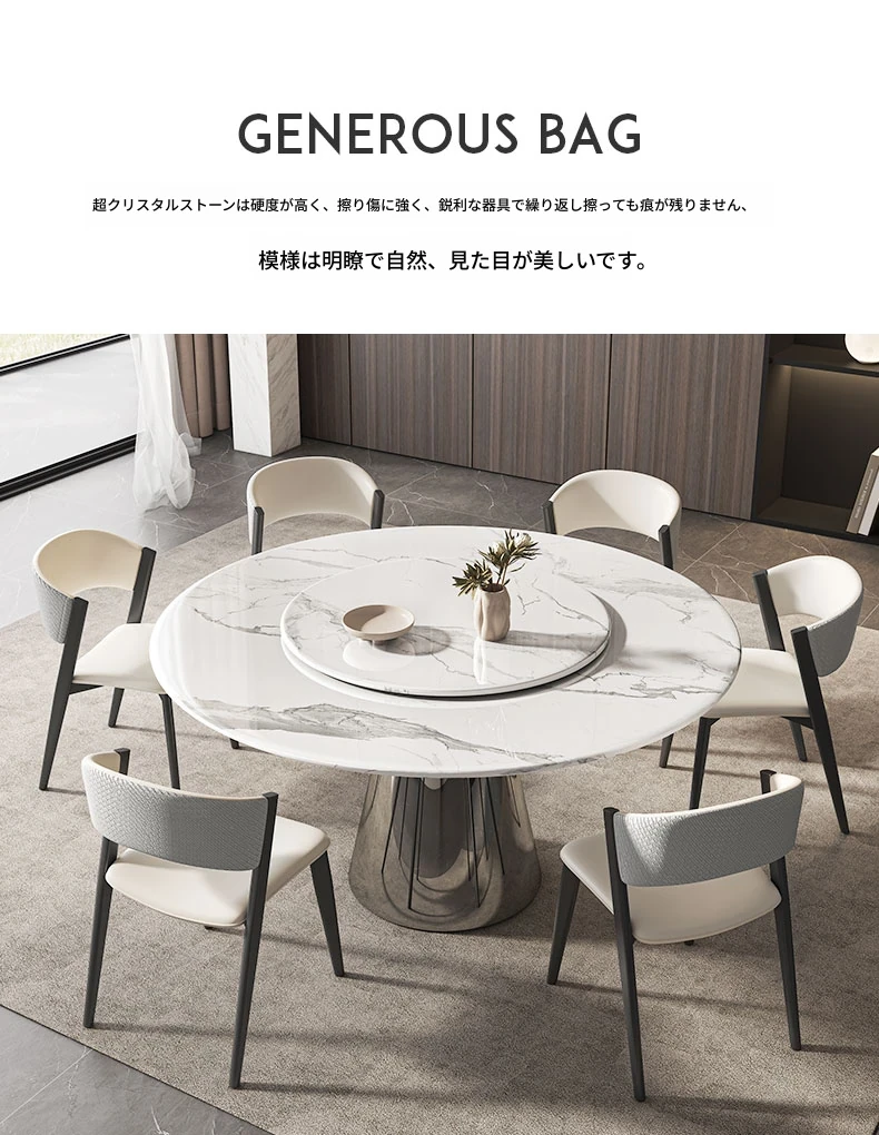 イタリアンラグジュアリー大理石ダイニングテーブル - 超晶石製、回転盤付き、家庭用セット、光沢のある大円形デザインで特別な食事体験をお届けします!