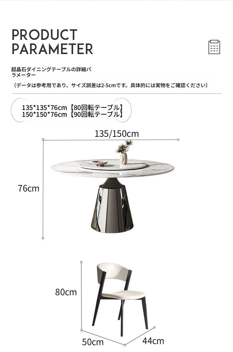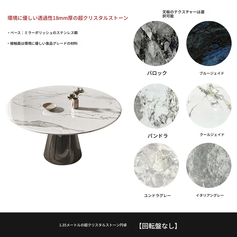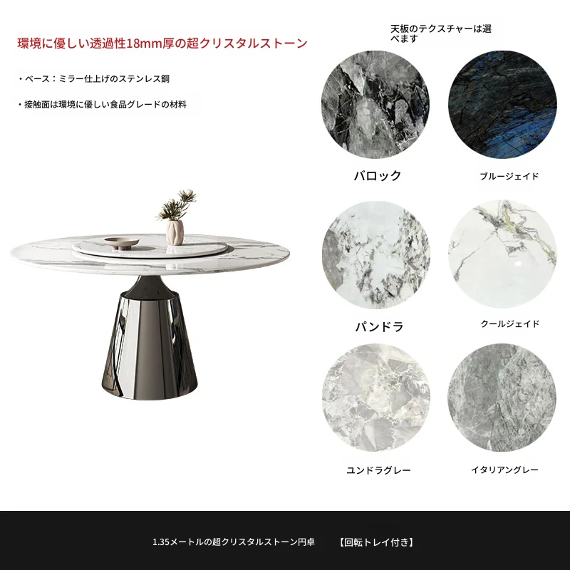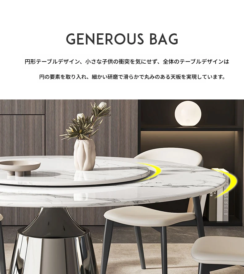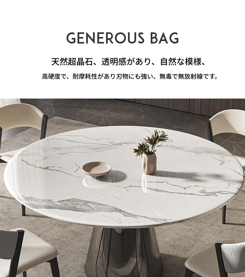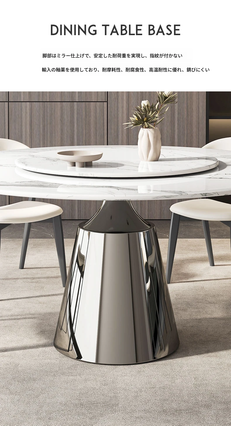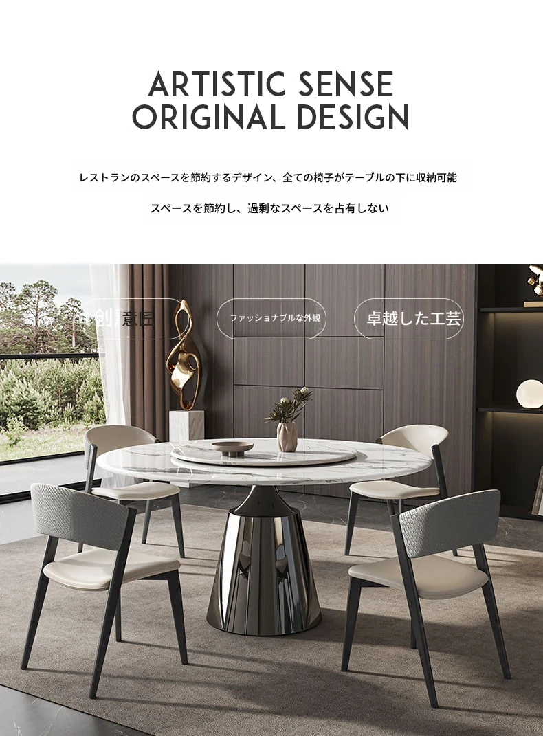 イタリアンラグジュアリー大理石ダイニングテーブル - 超晶石製、回転盤付き、家庭用セット、光沢のある大円形デザインで特別な食事体験をお届けします!