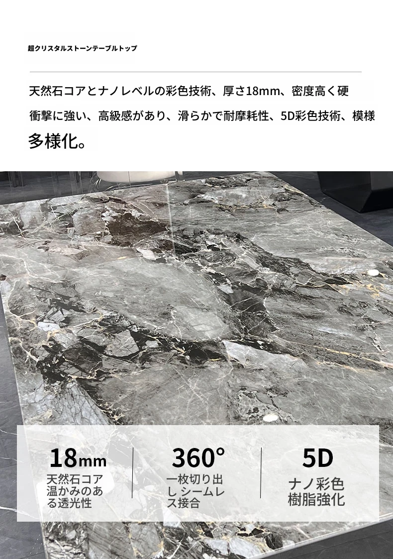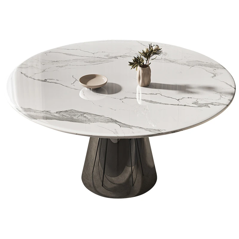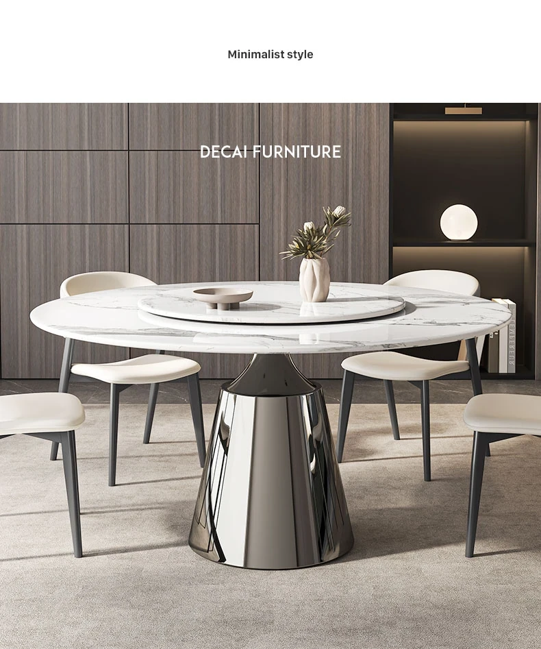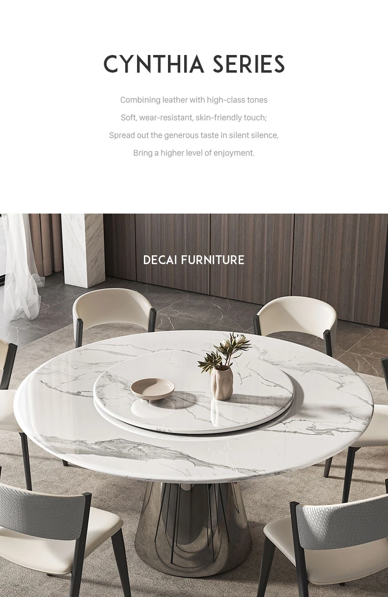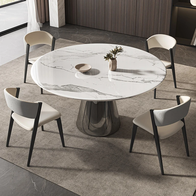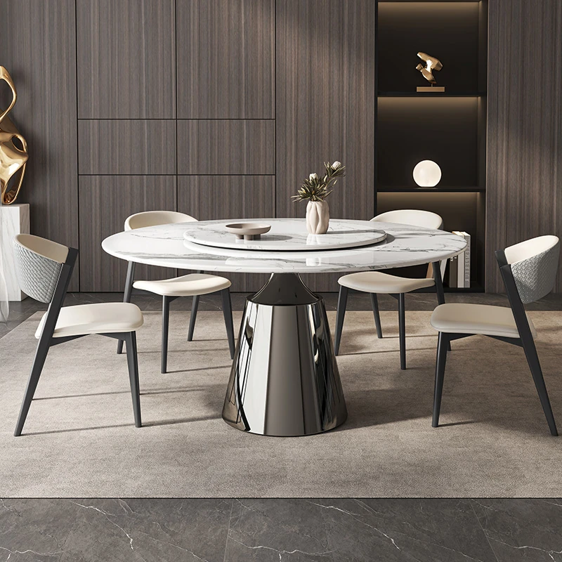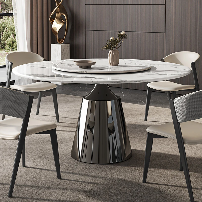 イタリアンラグジュアリー大理石ダイニングテーブル - 超晶石製、回転盤付き、家庭用セット、光沢のある大円形デザインで特別な食事体験をお届けします!