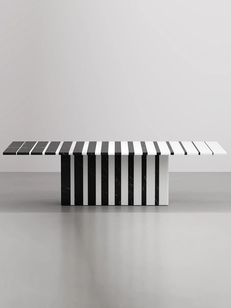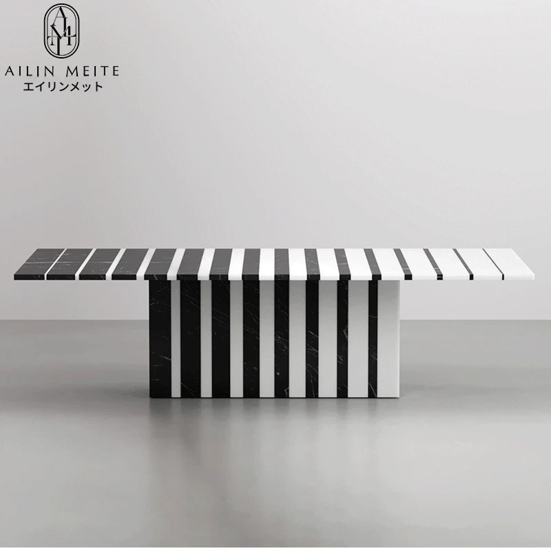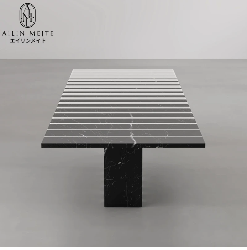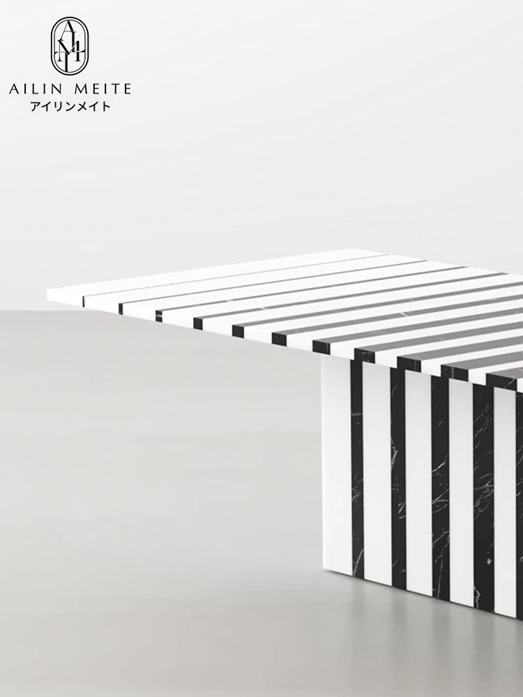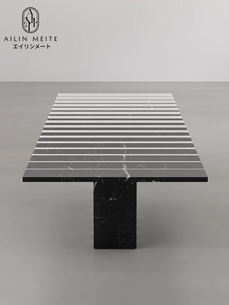 イタリアンラグジュアリー天然大理石ダイニングテーブル - モダンでミニマルなデザイン、高級別荘にぴったりなストライプ長方形テーブル!家族や友人との特別なひとときを演出します。