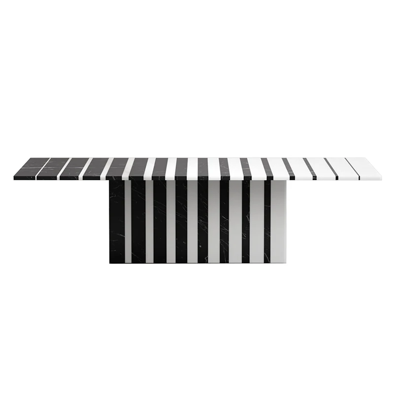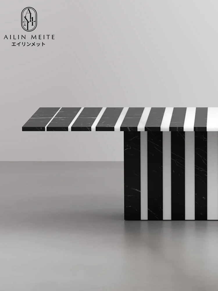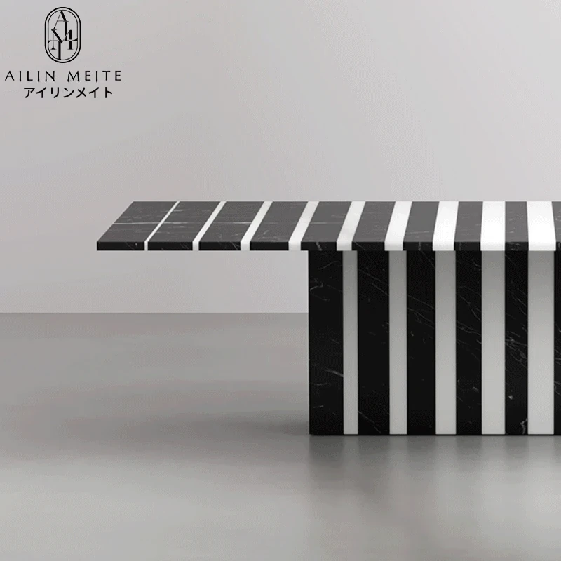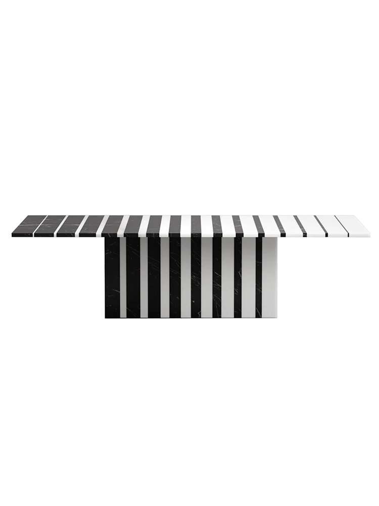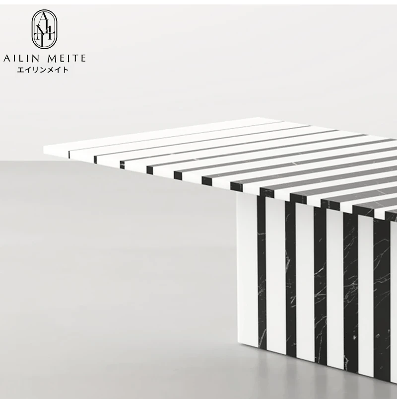 イタリアンラグジュアリー天然大理石ダイニングテーブル - モダンでミニマルなデザイン、高級別荘にぴったりなストライプ長方形テーブル!家族や友人との特別なひとときを演出します。