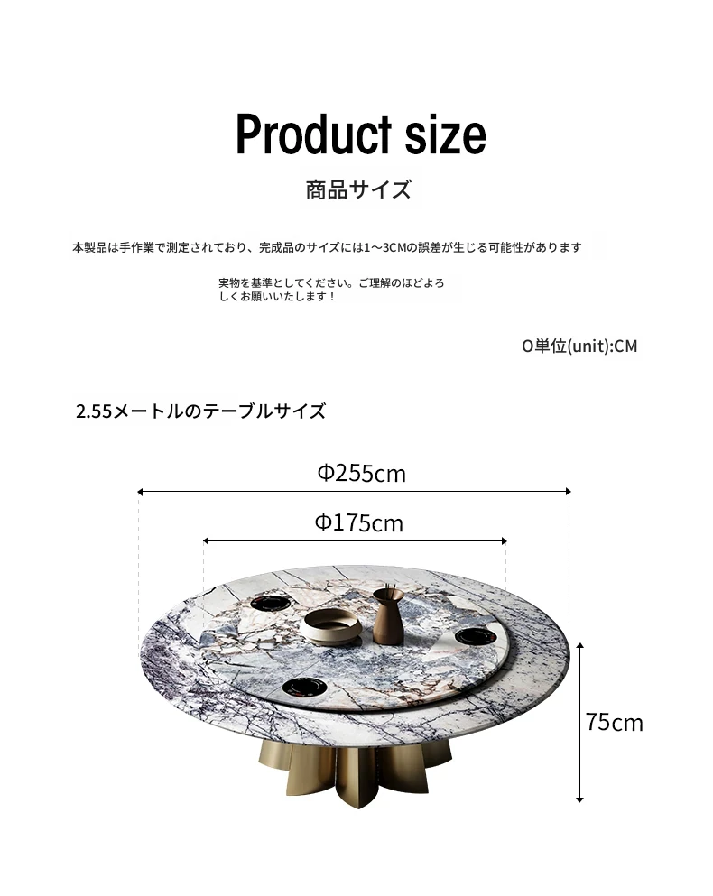 電動円卓 2.55M 天然ラグジュアリー石 大象ホワイト + 電磁炉回転盤