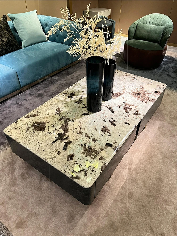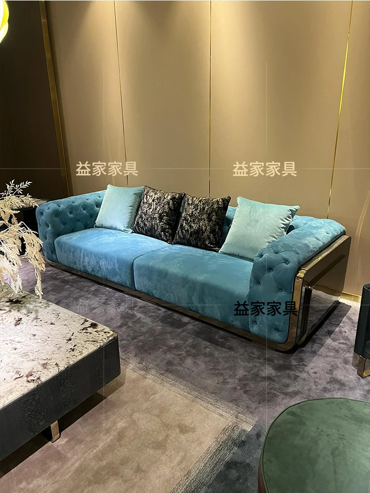 イタリアンラグジュアリー マット仕上げの牛革ソファー 天然木製 ピアノ塗装 大平面豪邸 高級別荘向けリビング家具 最高の快適さと洗練をあなたの空間に!