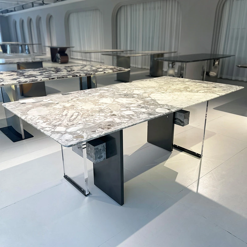 イタリアンラグジュアリー極簡オレオグレー天然石長方形ダイニングテーブル - 高級別荘向け、洗練されたデザインの家用テーブルで、優雅な食事空間を演出します。