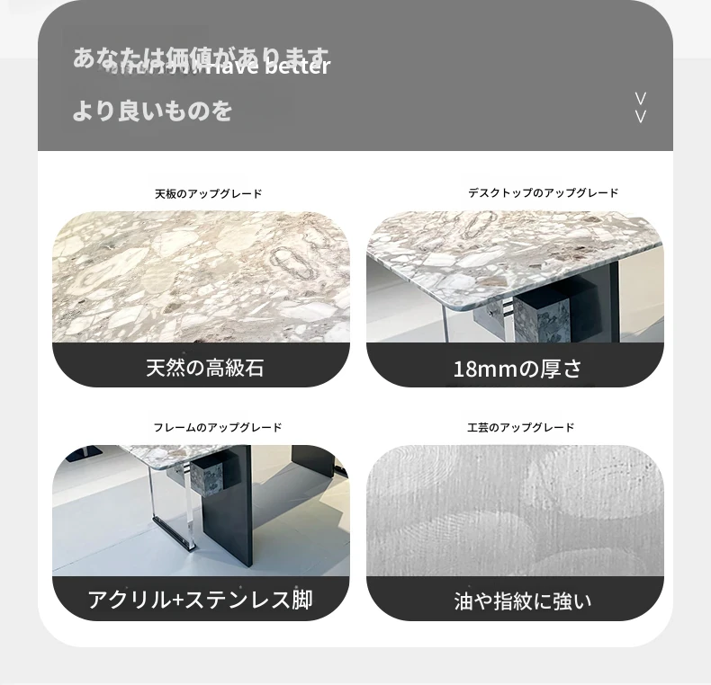 1.8*0.9メートル オレオグレー高級石製ダイニングテーブル