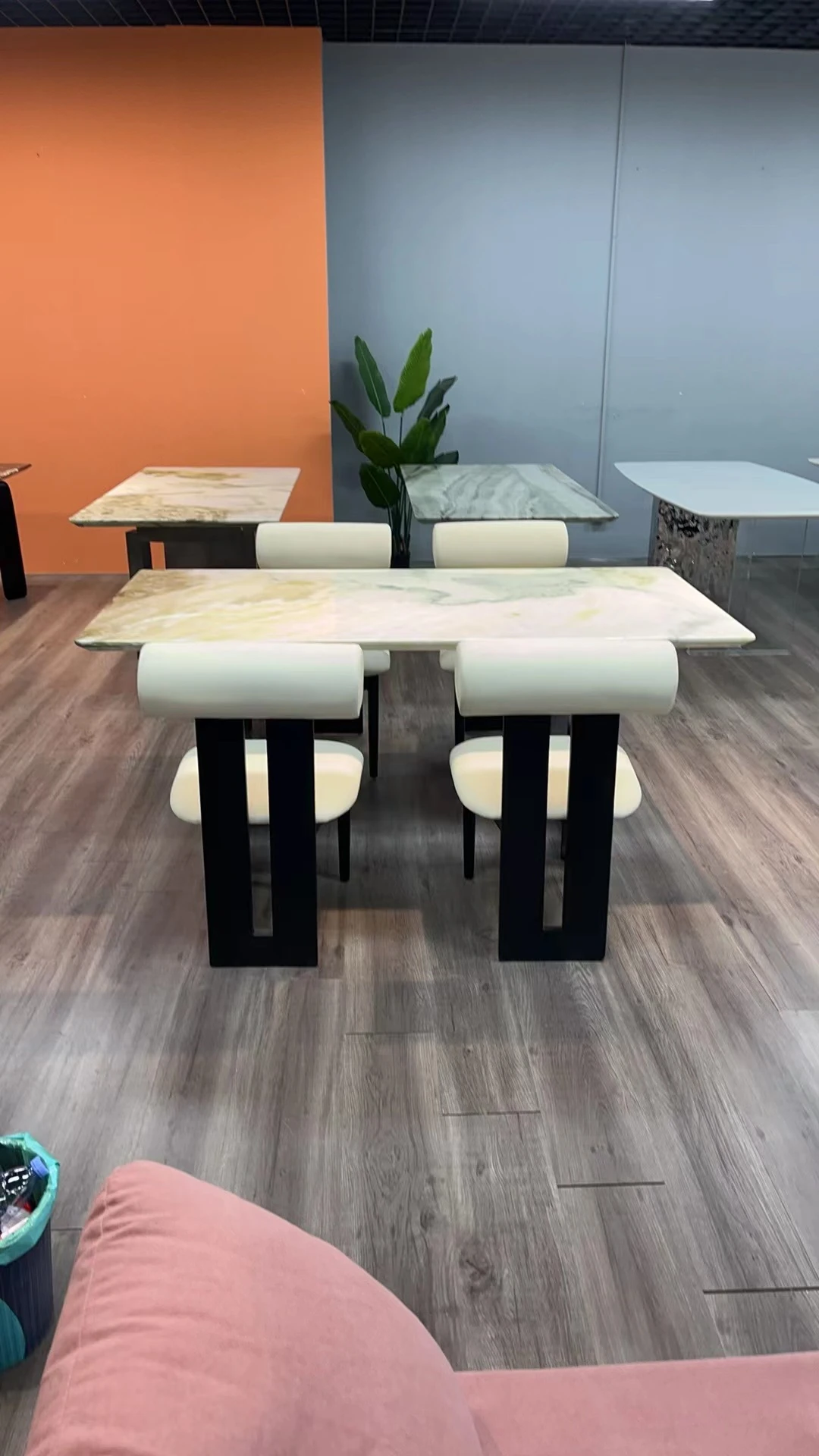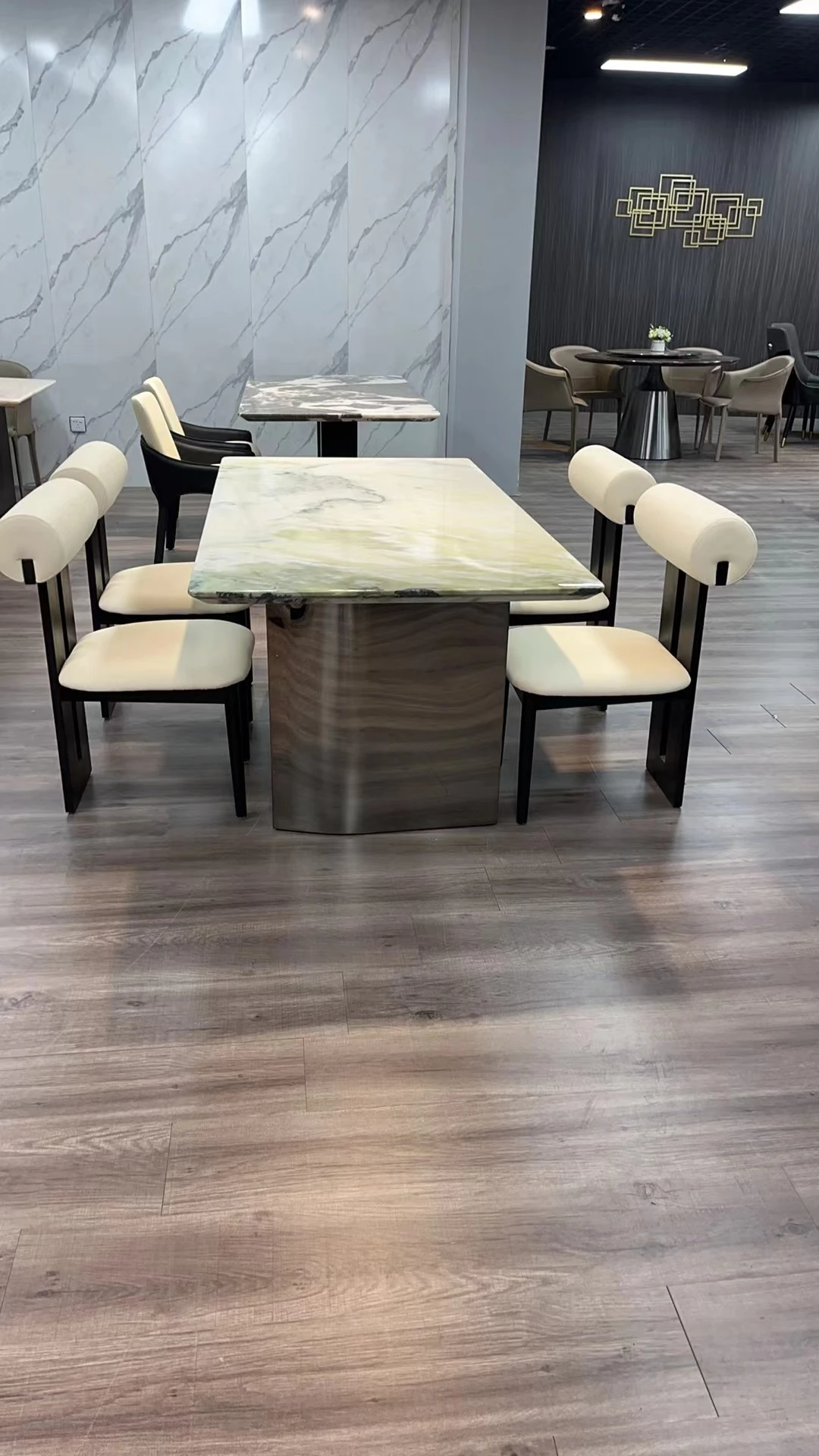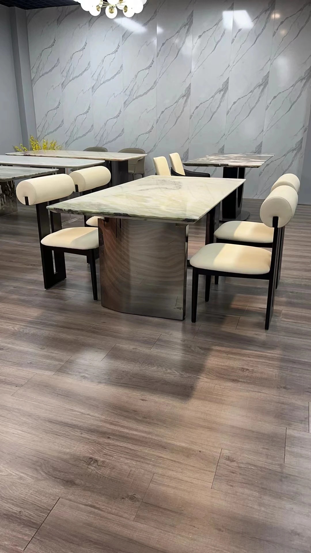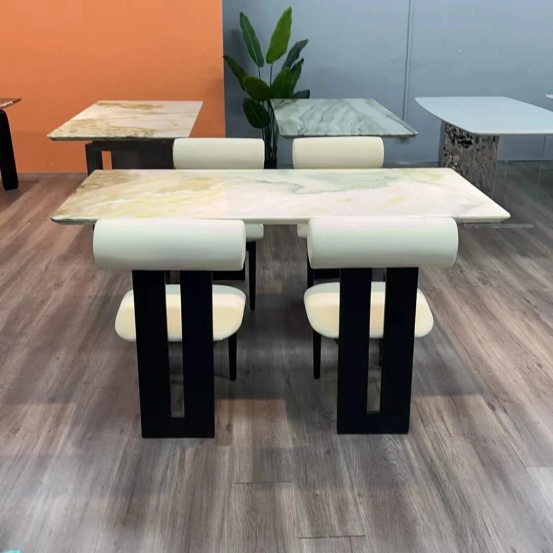 イタリアンミニマリズムの純天然フィンディグリーンラグジュアリー石の長方形ダイニングテーブル。シンプルで洗練された大理石デザインが、あなたの家にエレガントなスタイルをプラスします。軽やかな高級感をお楽しみください。