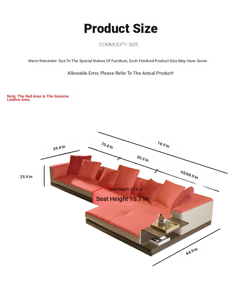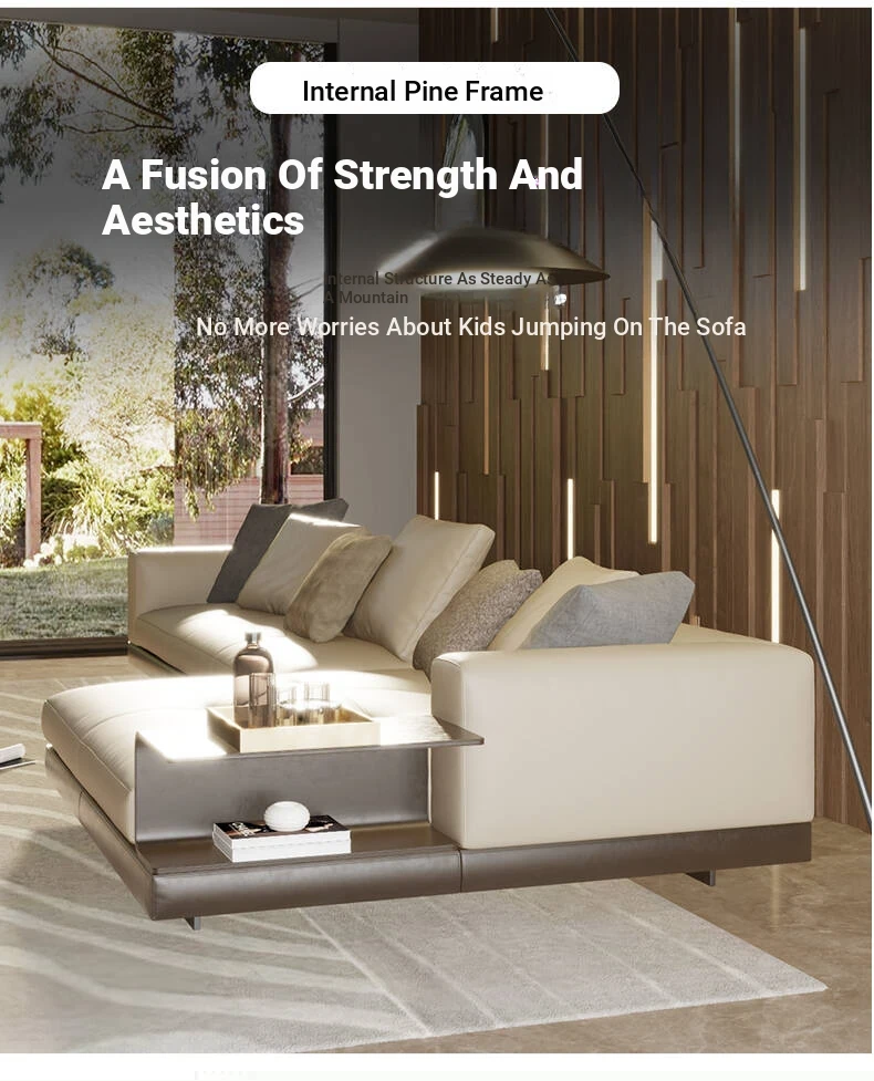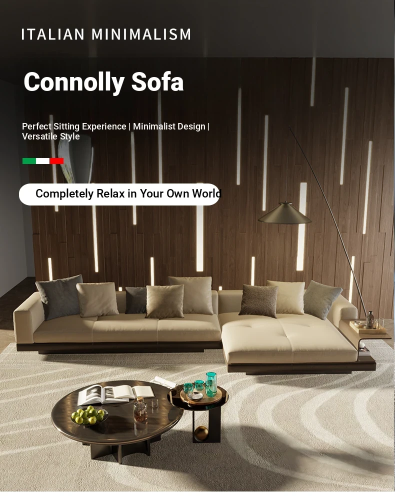 Junyue Connolly Genuine Leather Sofa - Italian Minimalist Design, Premium Top-Grain and Semi-Aniline Leather, Modern Simple L-Shaped Corner Sofa for Your Living Room