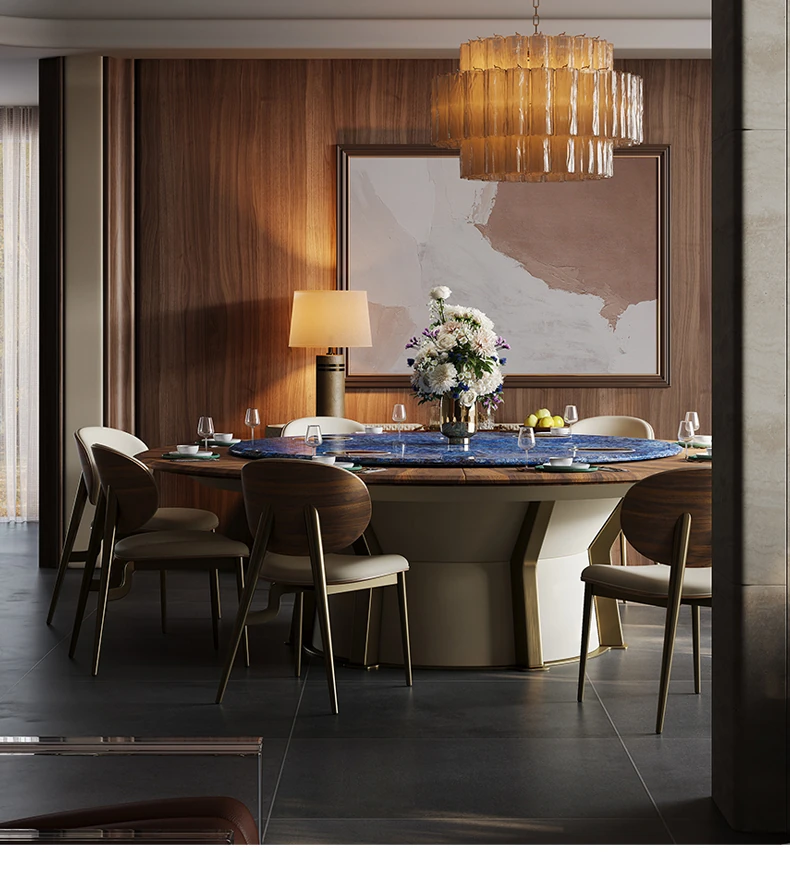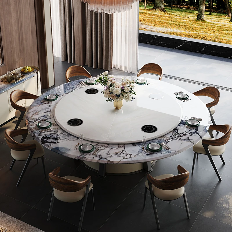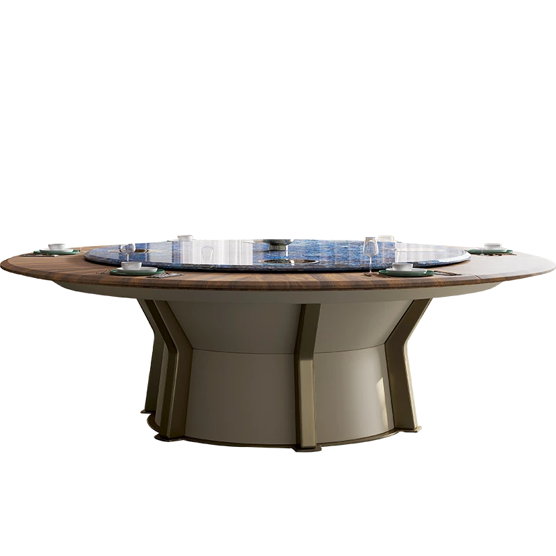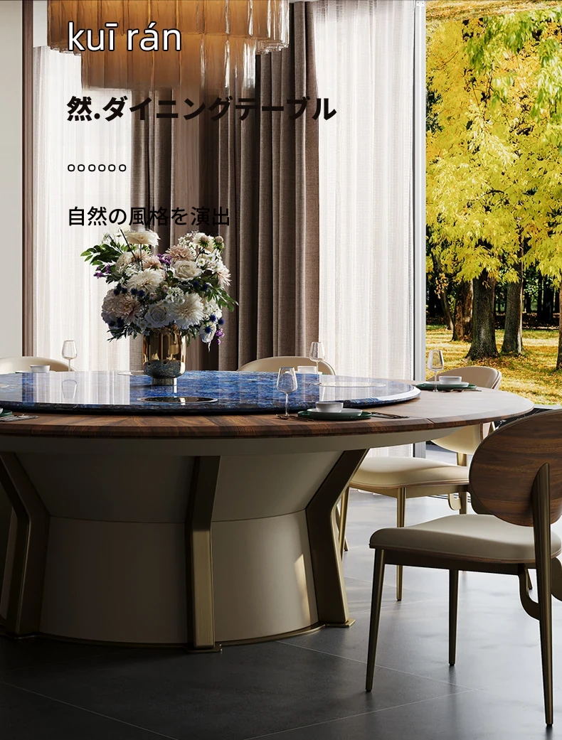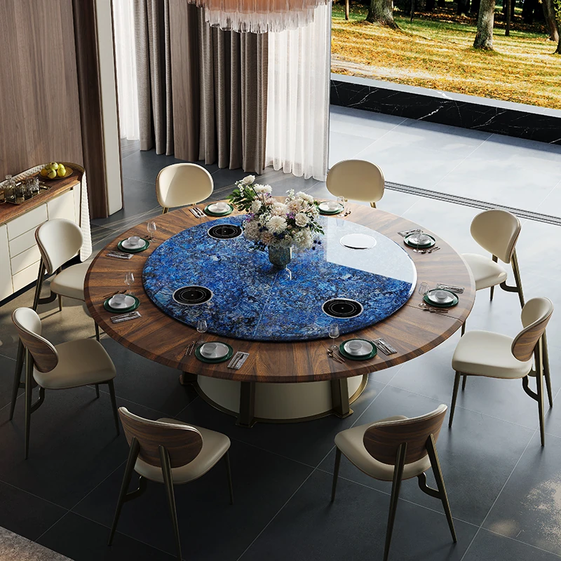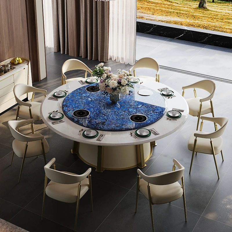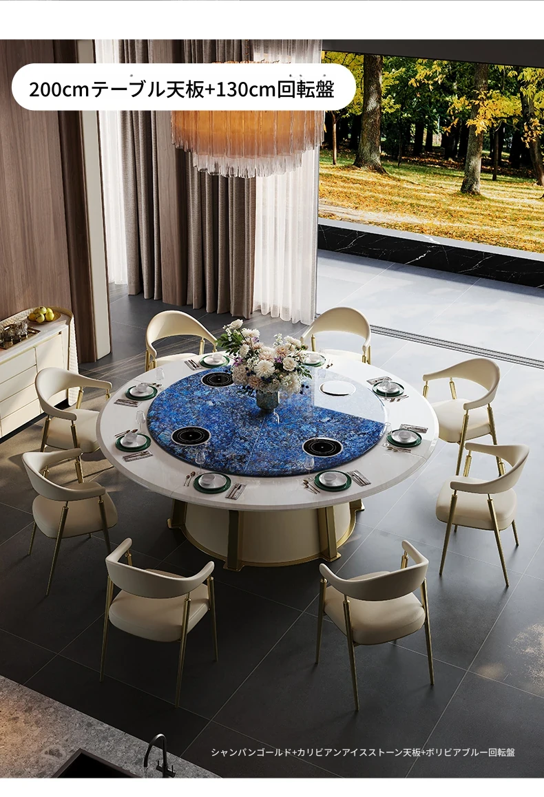 豪華な天然ブルージェイド石製の2.5メートル電動ダイニングテーブル - ヴィラやホテルの宴会に最適なラウンドテーブル!贅沢な空間を演出し、特別なひとときをお届けします。