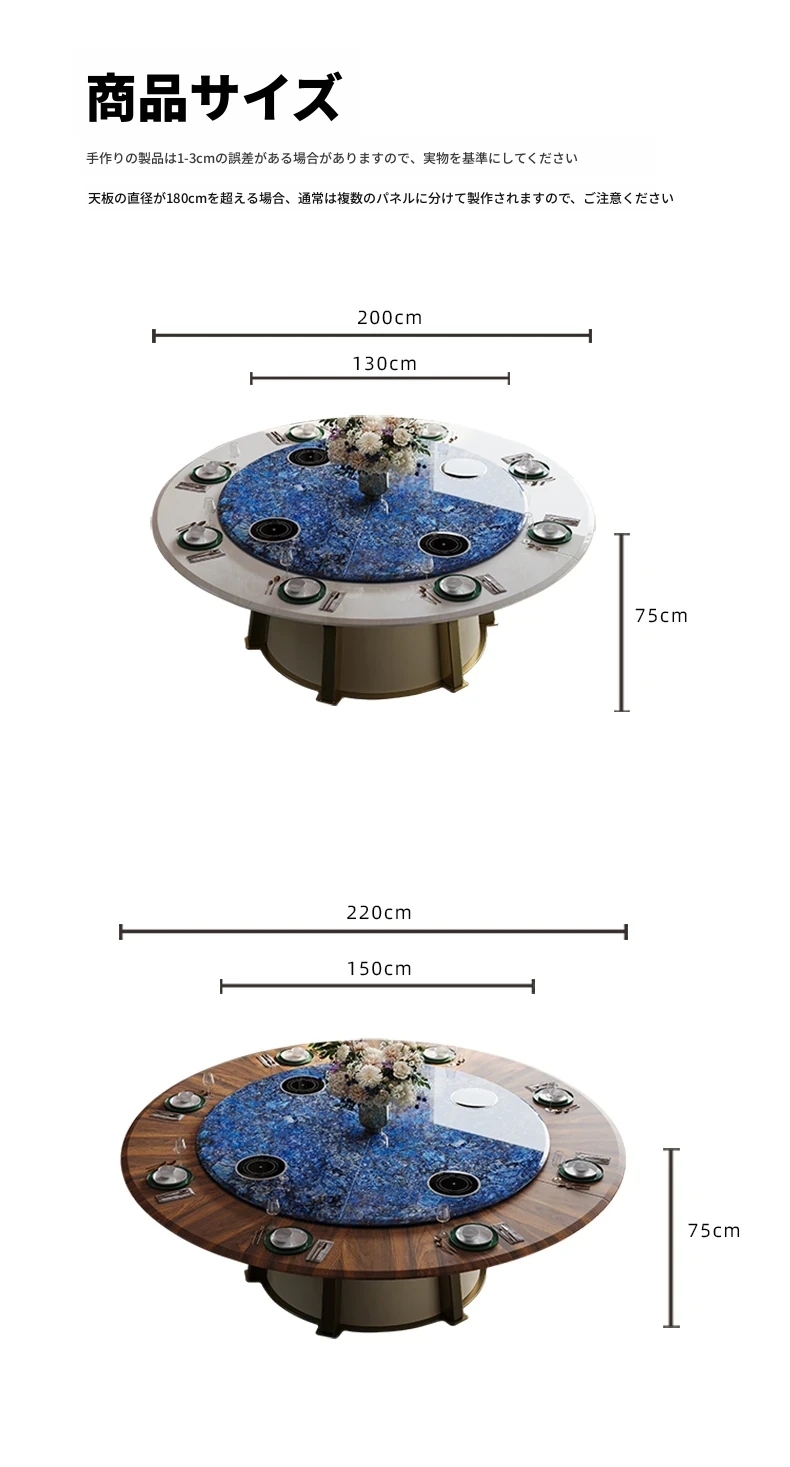 電動ダイニングテーブル/カリーアイスジャスパー2.2メートル天板+1.5メートル(ボリビア豪華石)回転台