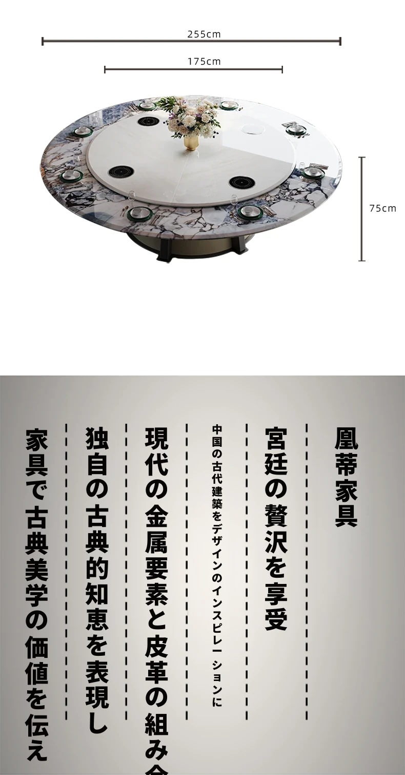 電動ダイニングテーブル/エレファントホワイト2.55メートル天板+1.75メートル(ボリビア豪華石)回転台
