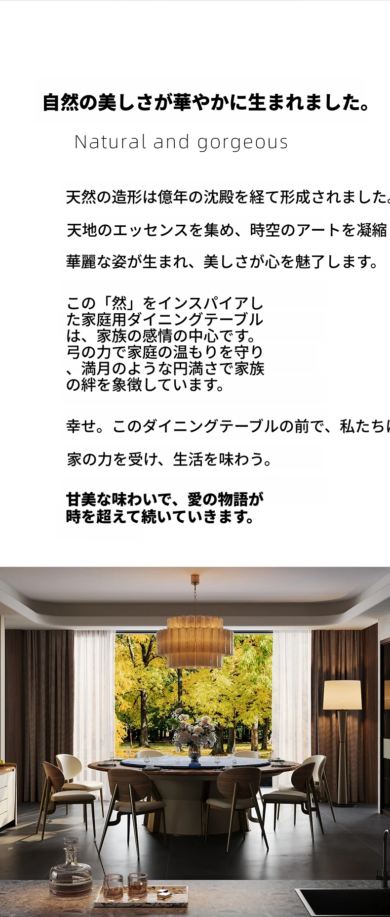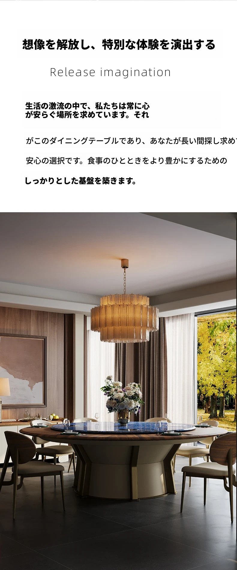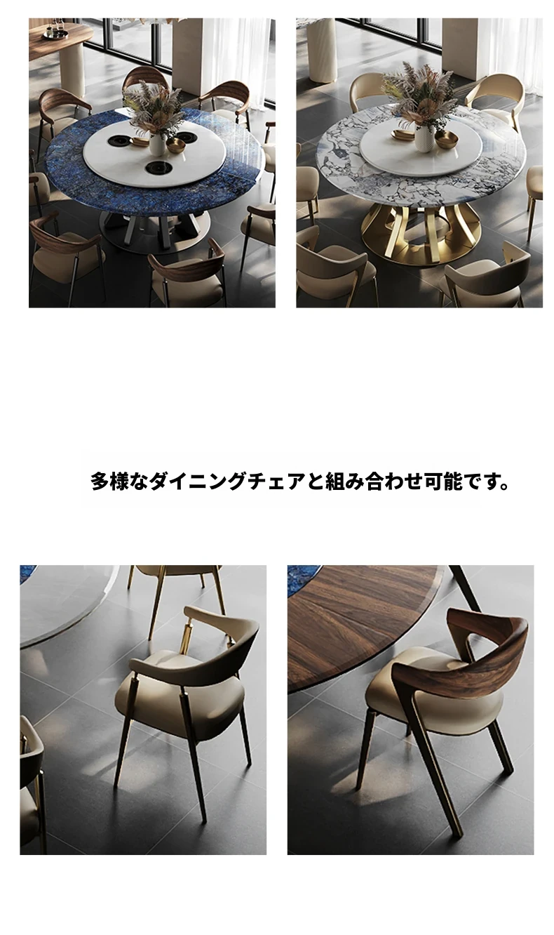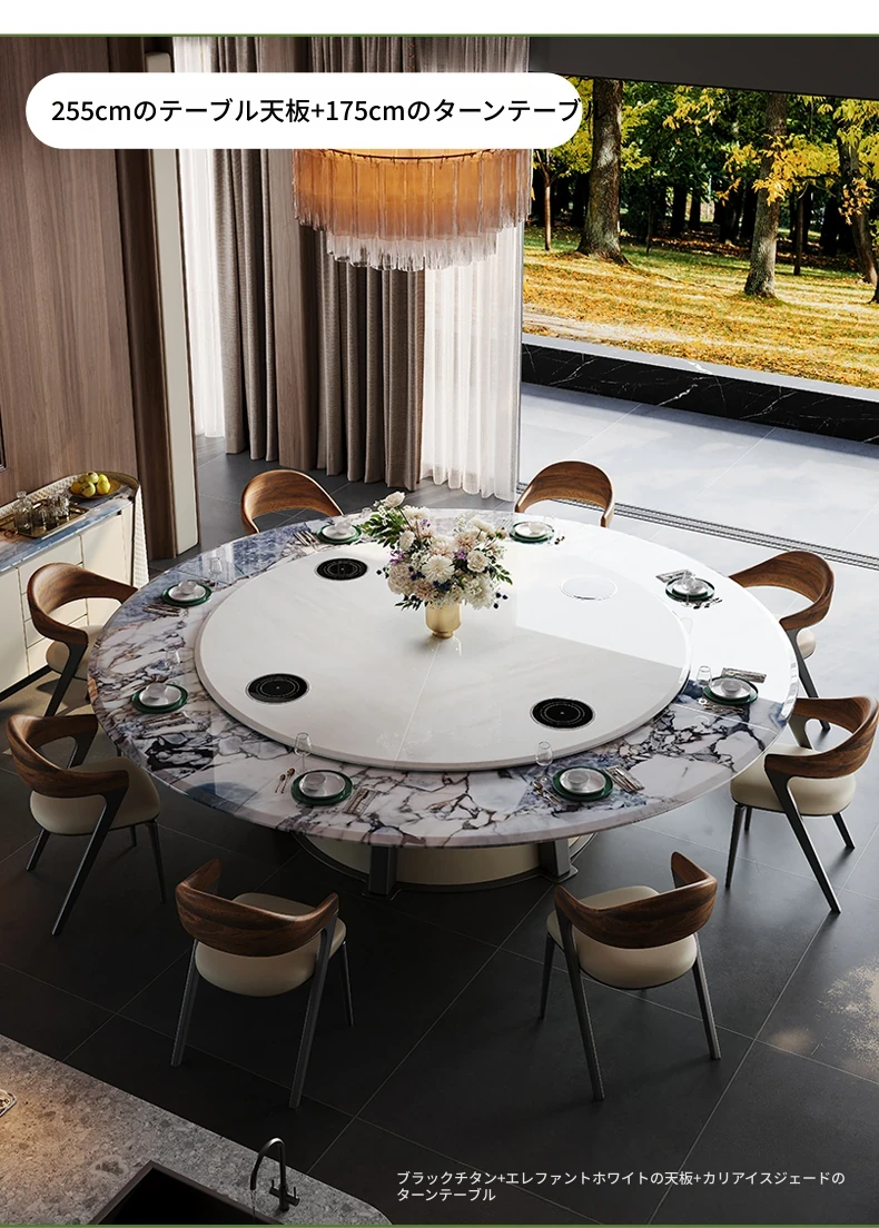 電動ダイニングテーブル/エレファントホワイト2.2メートル天板+1.5メートル(ボリビア豪華石)回転台