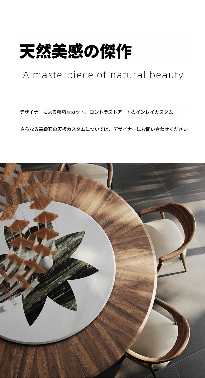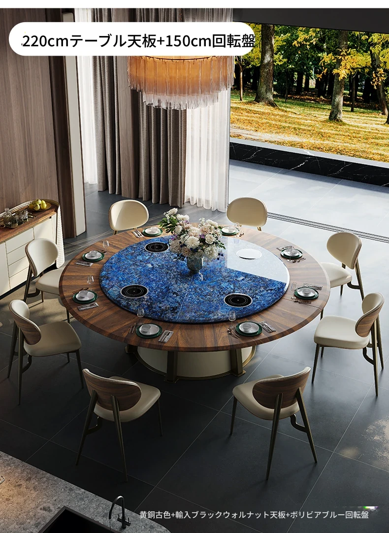 電動ダイニングテーブル/輸入ブラックウォールナット2.2メートル天板+1.5メートル(ボリビア豪華石)回転台