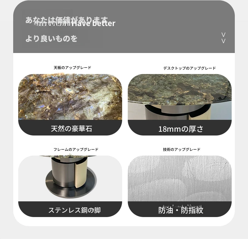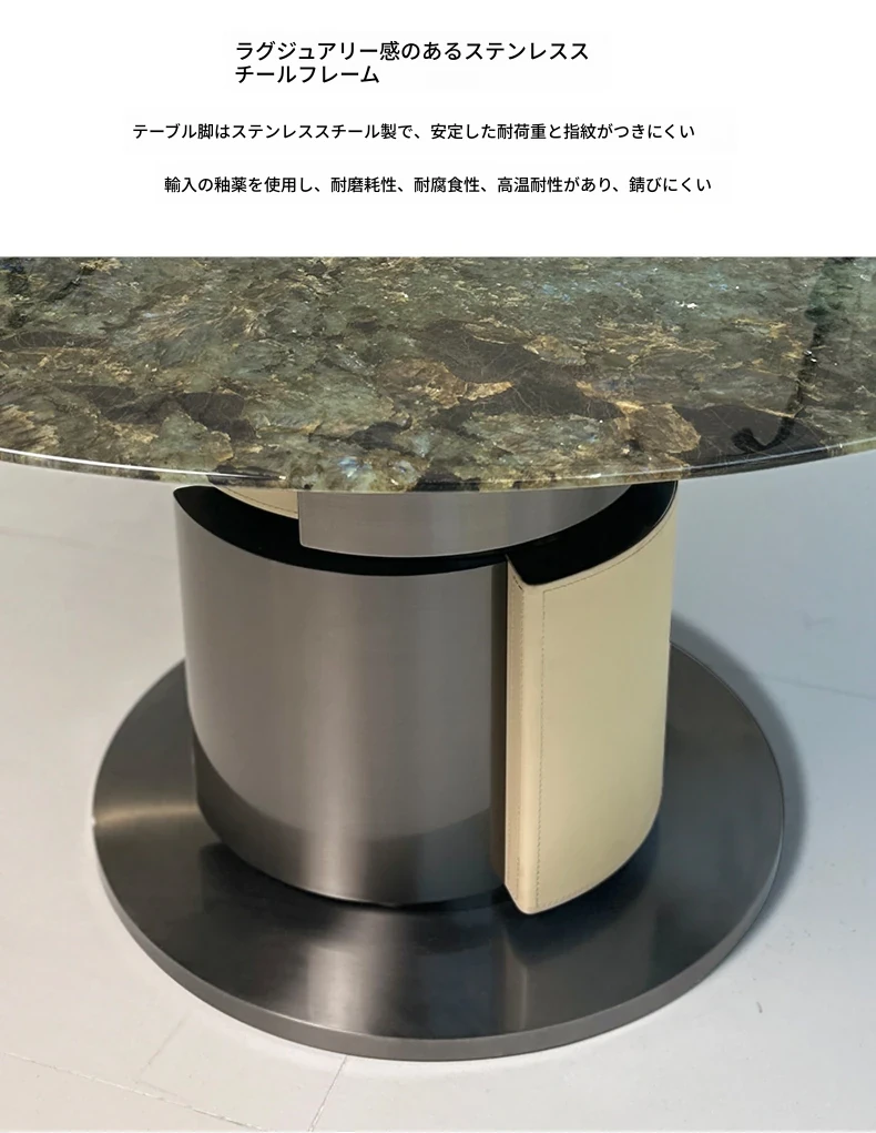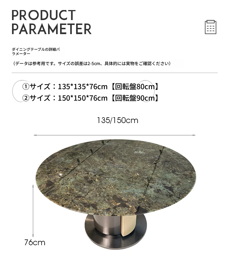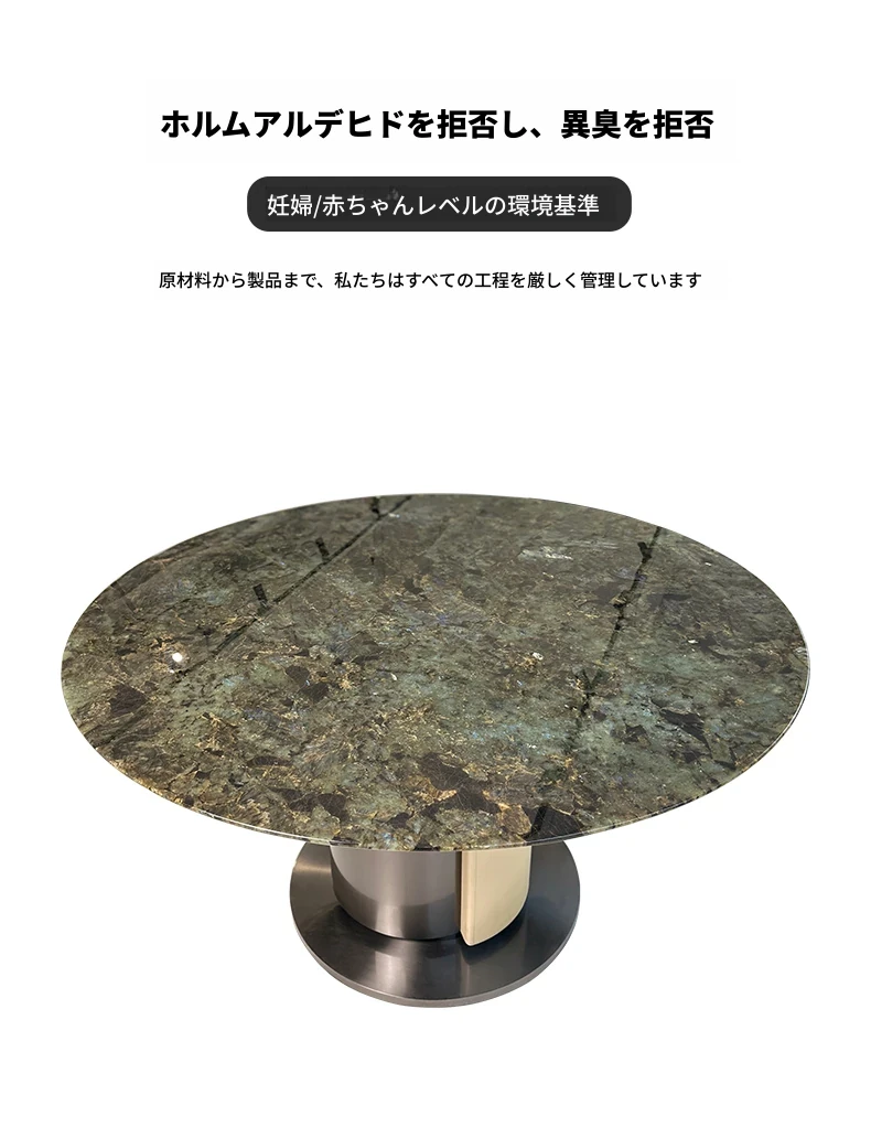 1.35*1.35メートル【回転台80cm付き】ブルージェイド豪華石製ダイニングテーブル