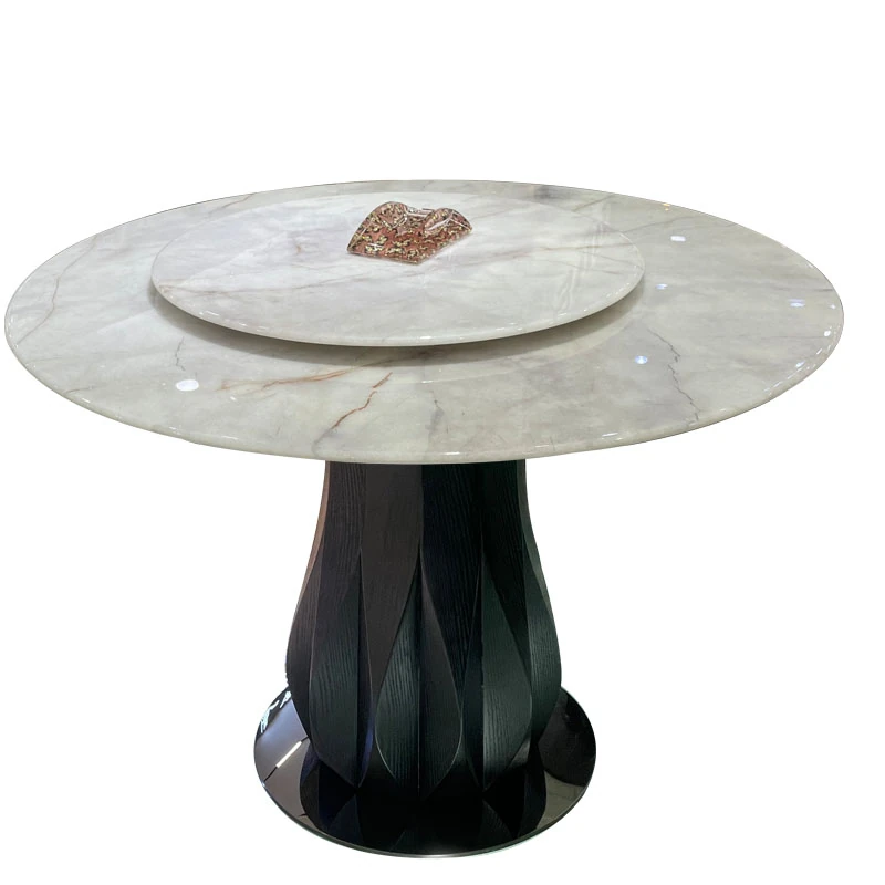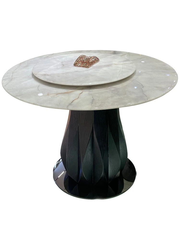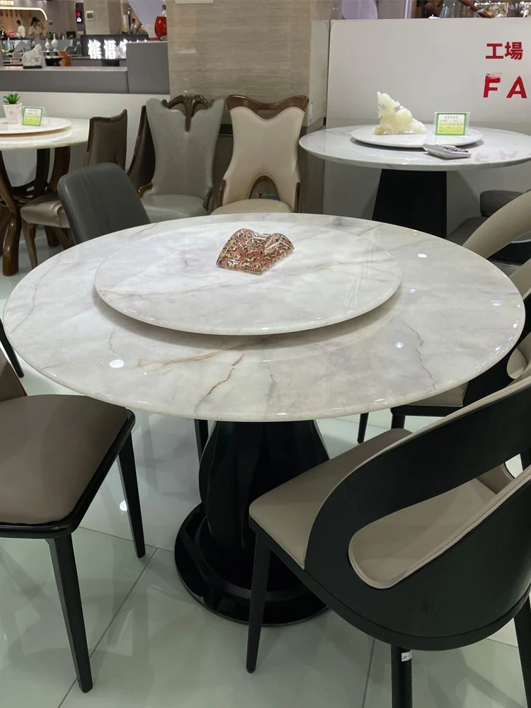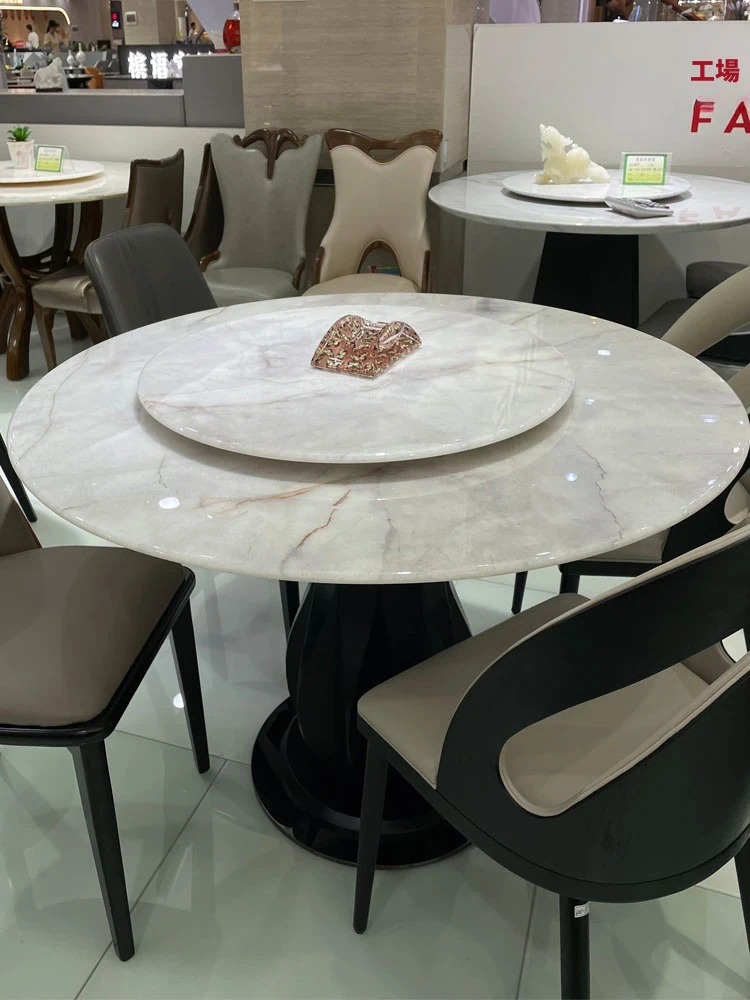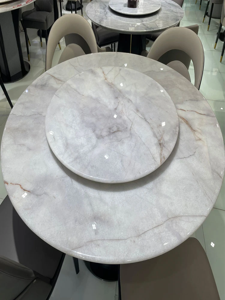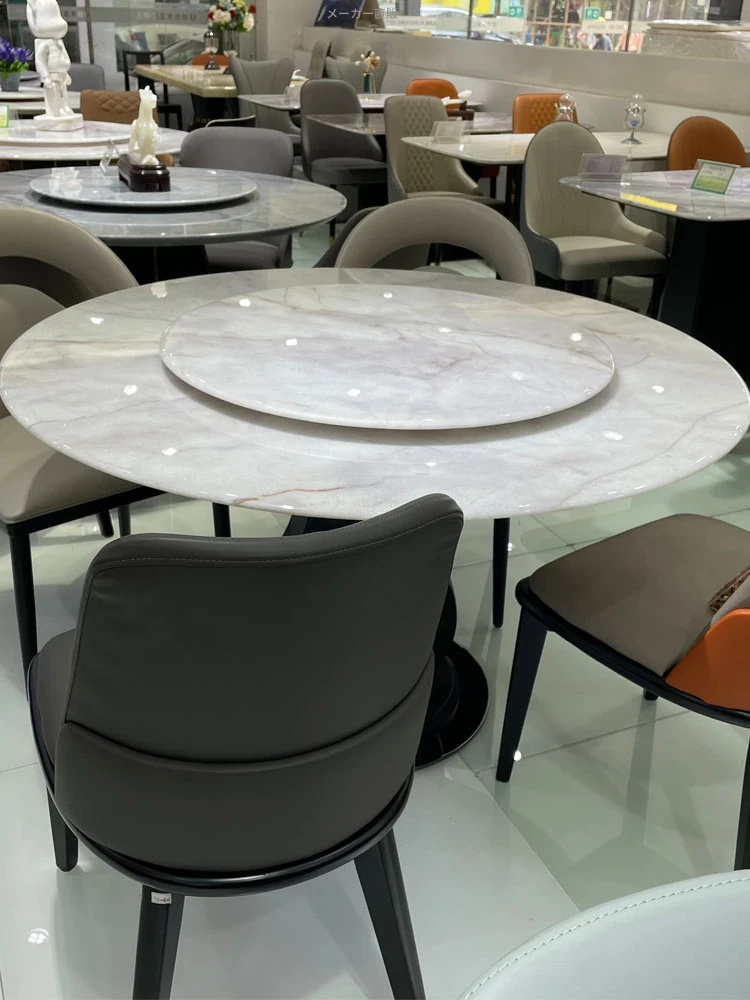 高級感溢れる大理石丸型ダイニングテーブルセット|超晶石使用のイタリアンミニマリズム|別荘や家庭に最適なモダンな円形テーブルで、優雅な食事空間を演出!