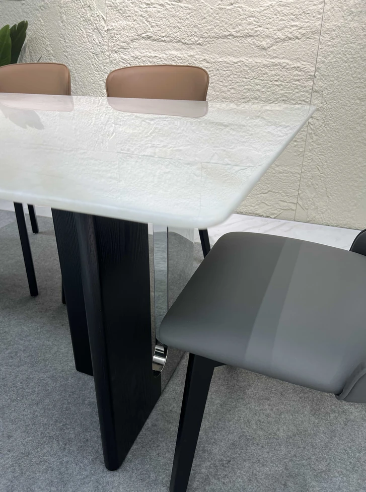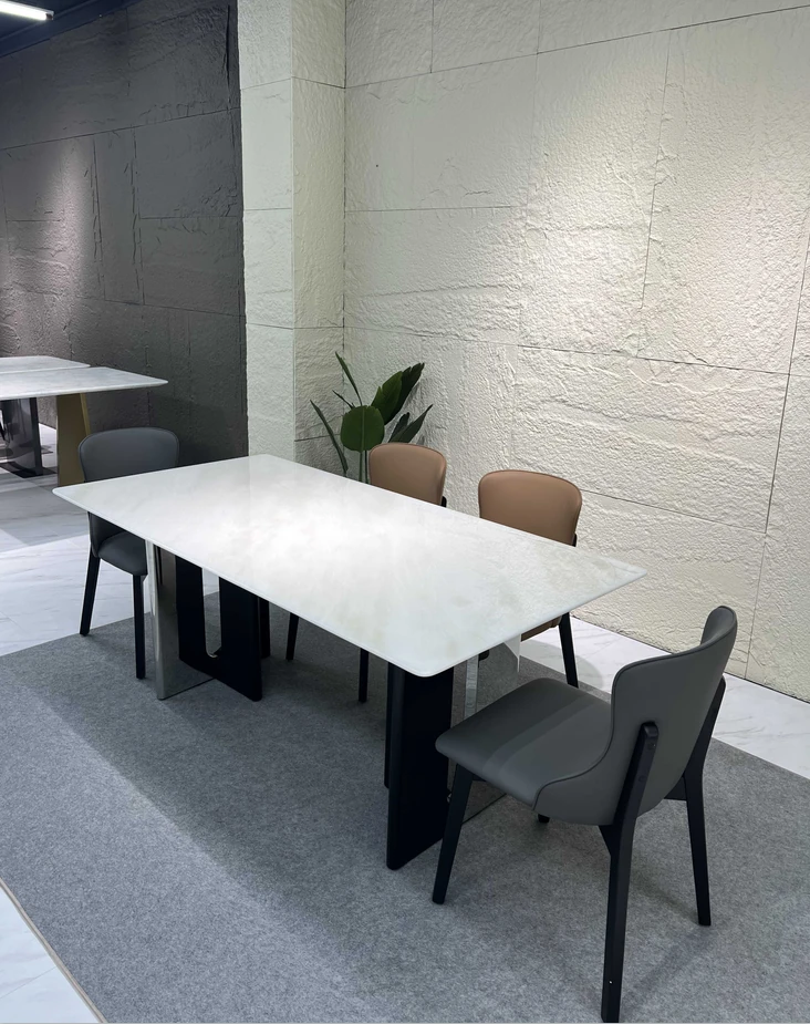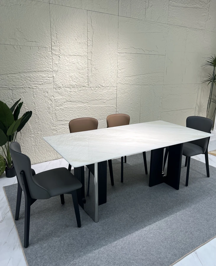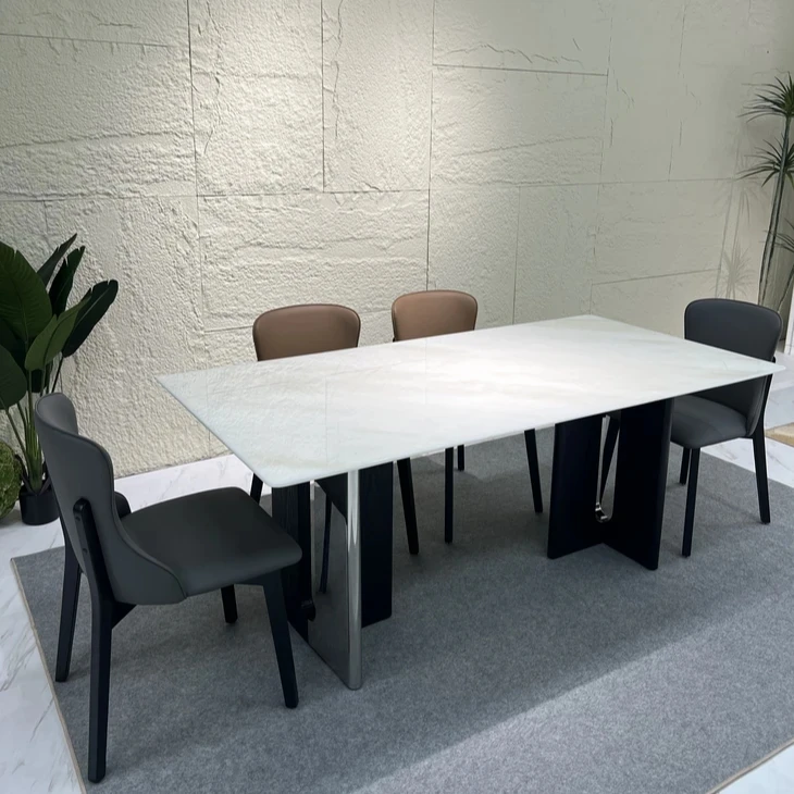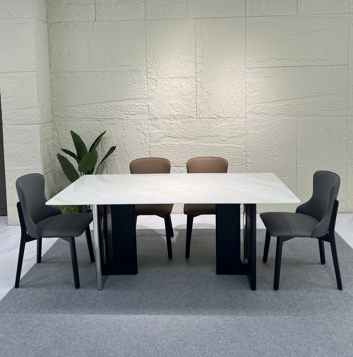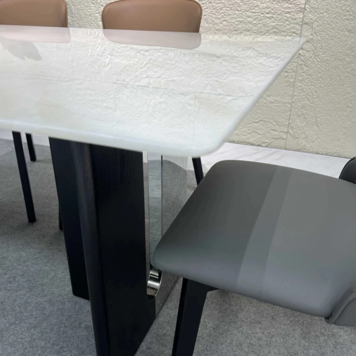 実店舗品質の天然ラグジュアリー、ミラノホワイトジェイドダイニングテーブル。デザイナーによる高級感あふれる別荘スタイル、大理石製のロングダイニングテーブル&チェアセット。