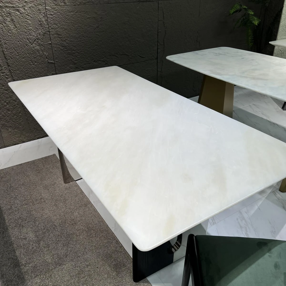 2.2*1.1メートルミラノホワイトジェイド高級石製ダイニングテーブル