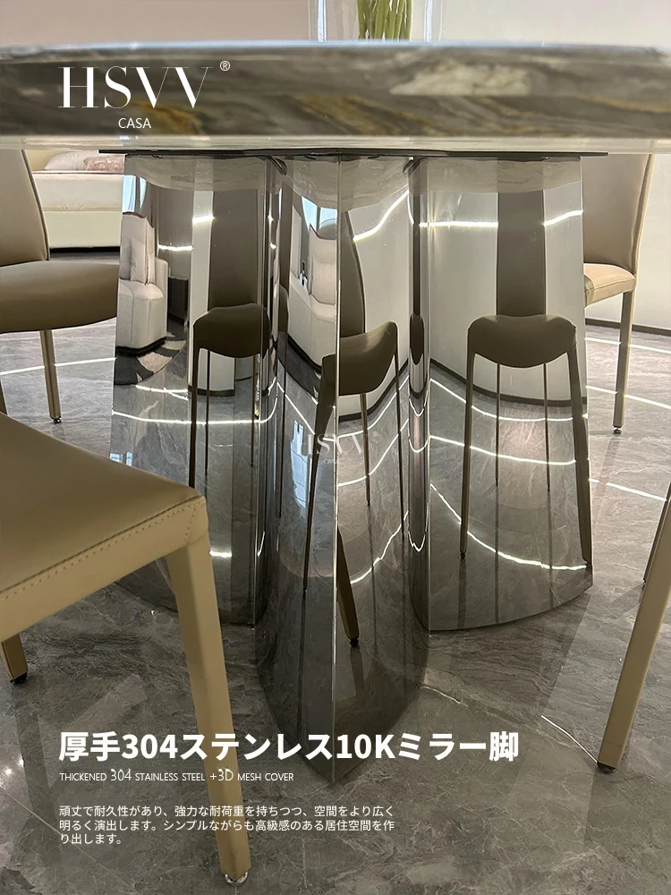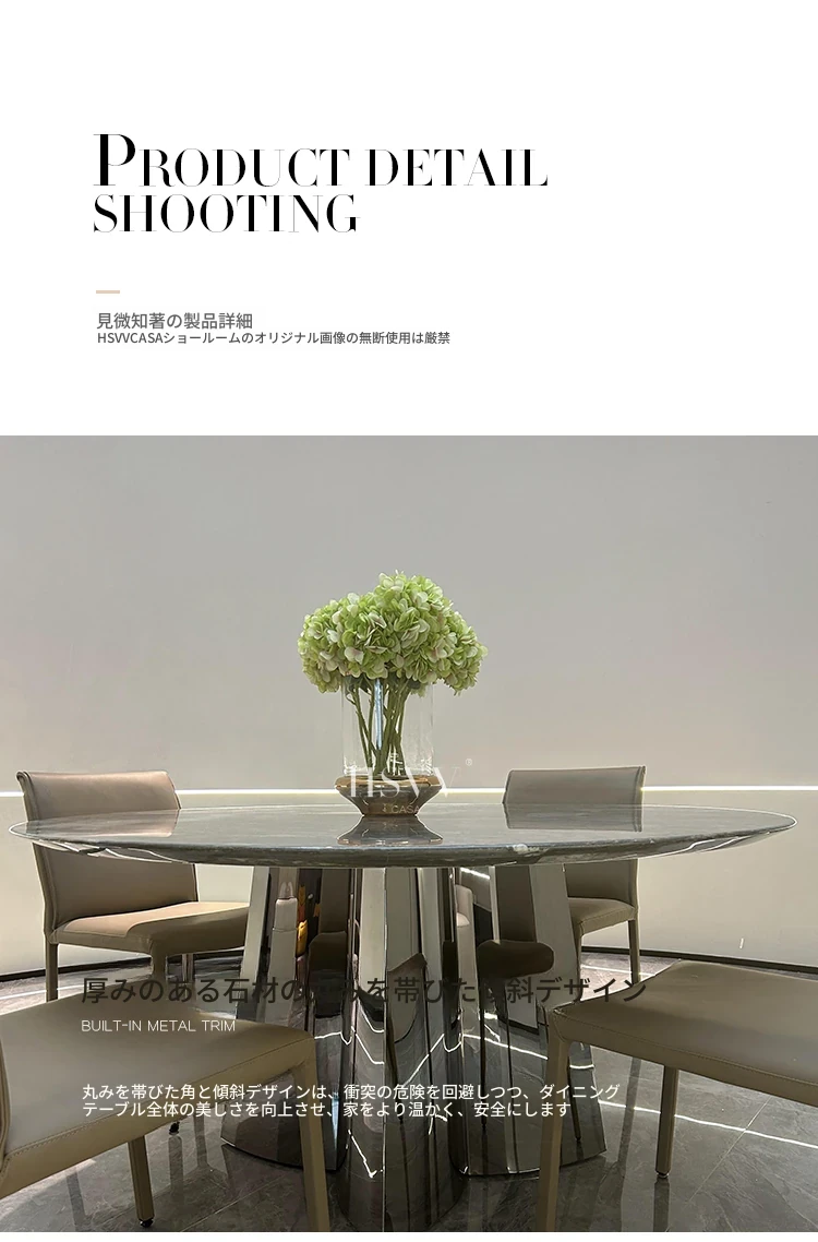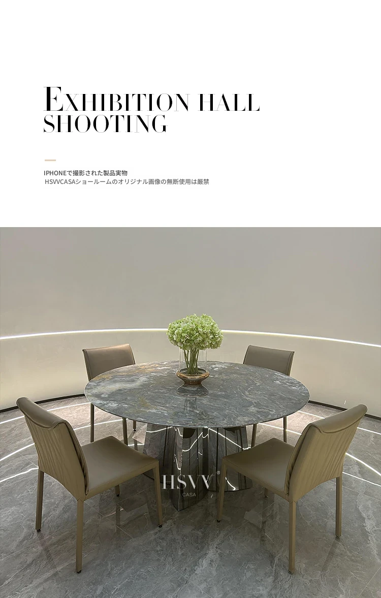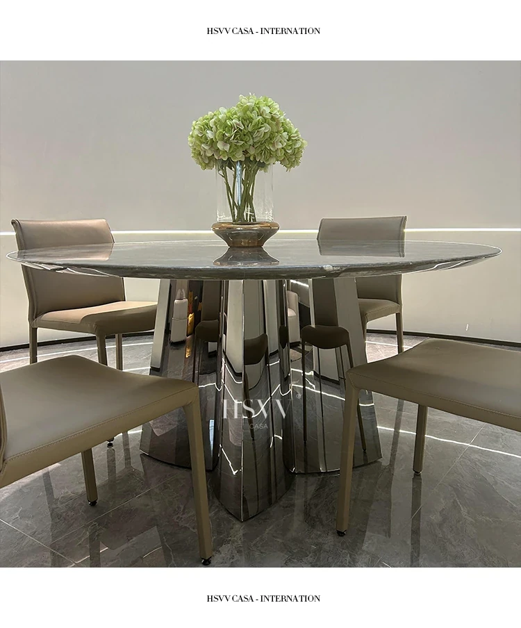 天然ブルーサンド円形ダイニングテーブル - 高級デザイン、ラグジュアリーな石材使用、洗練された大平层別荘にぴったりなテーブル&チェアセット、ミニマルな美しさを追求。