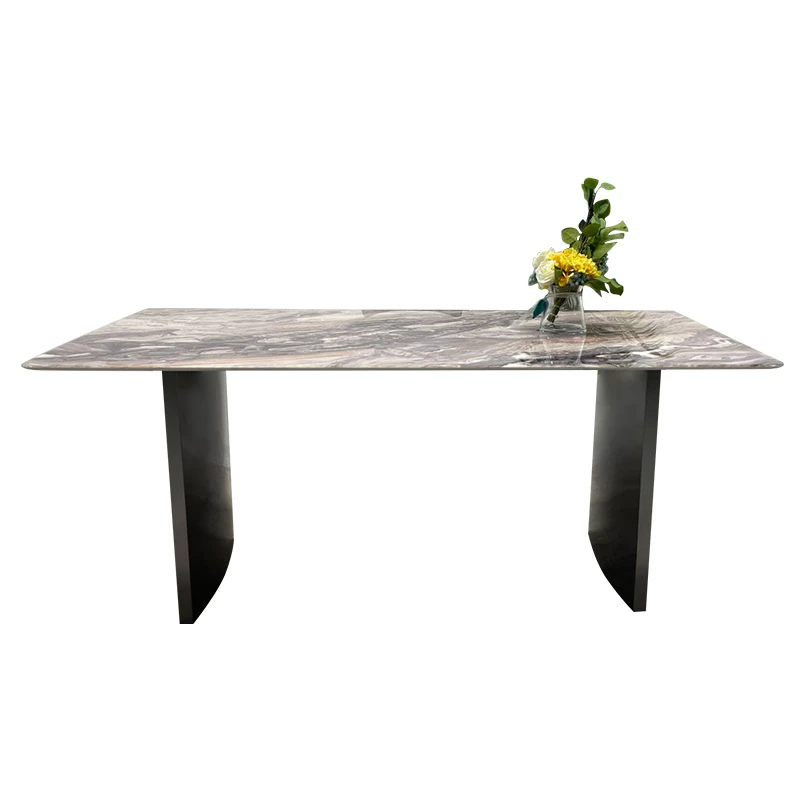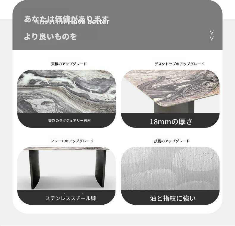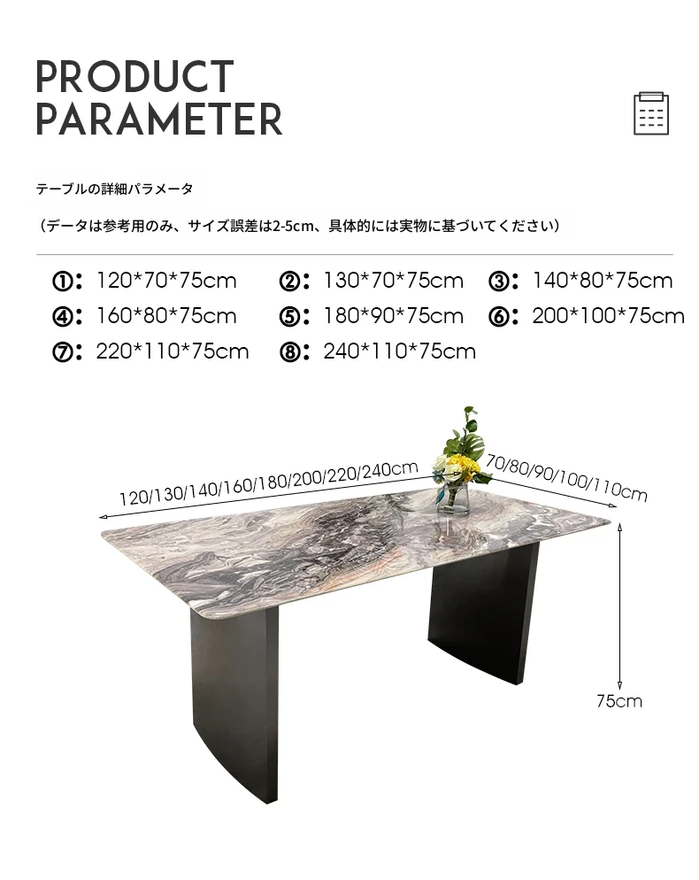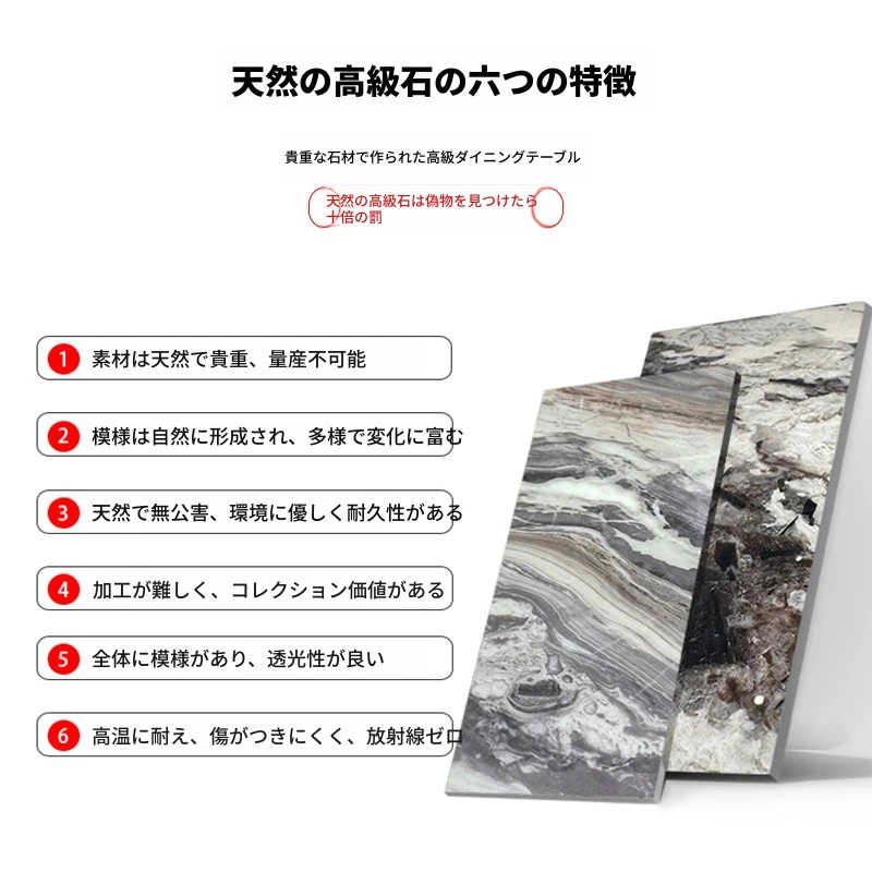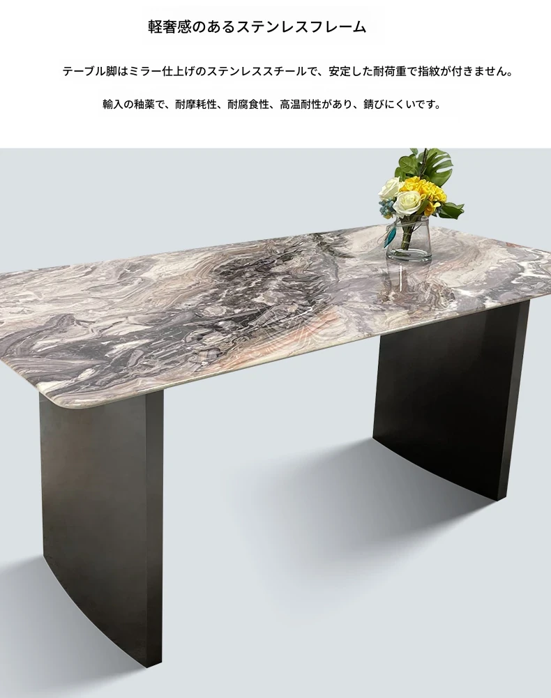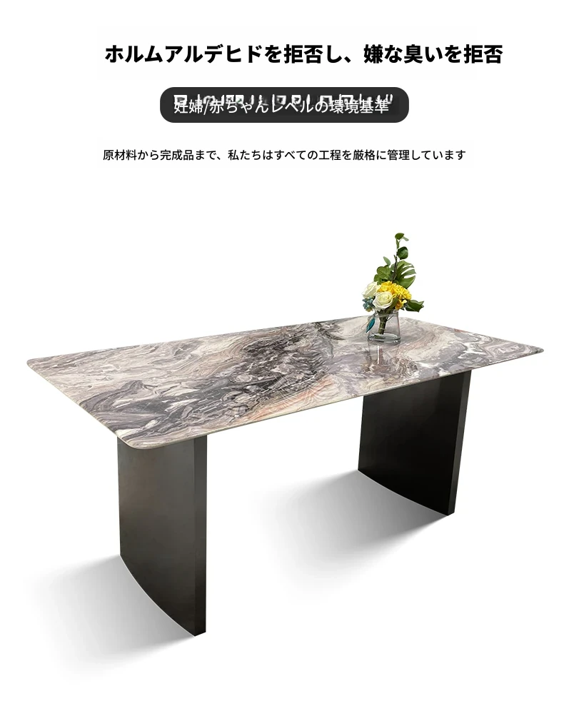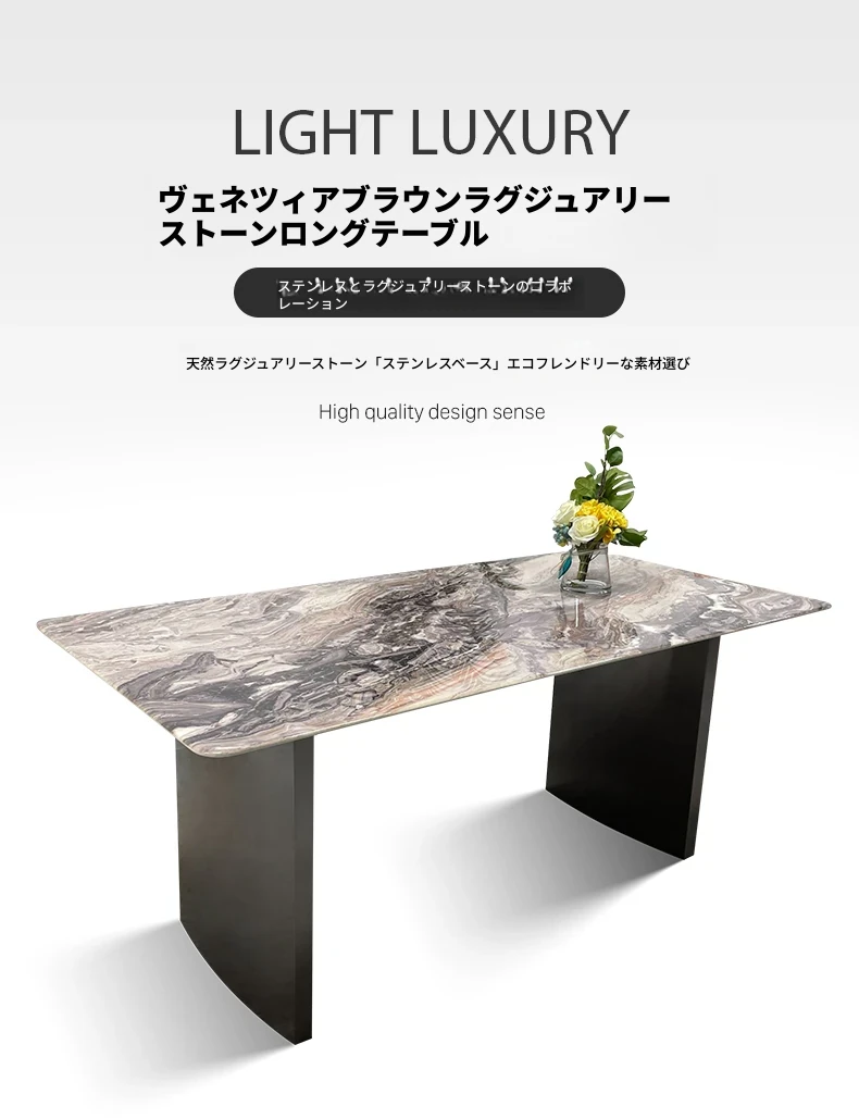 天然大理石の高級ダイニングテーブルセット|ヴェネツィアブラウン色のエレガントなデザイン|贅沢な空間を演出する長方形テーブル|あなたの家に相応しい洗練されたスタイルをお届けします!