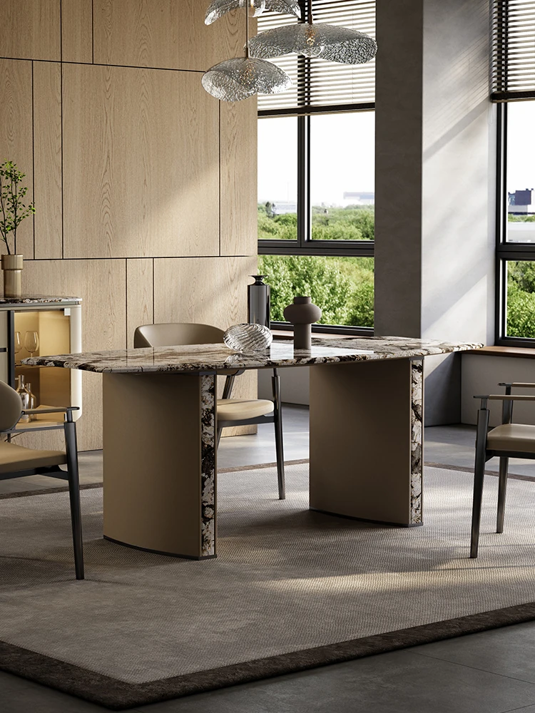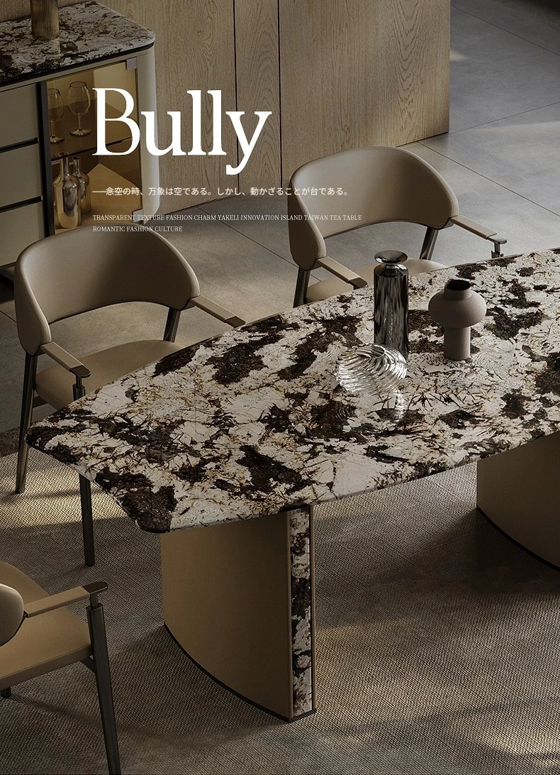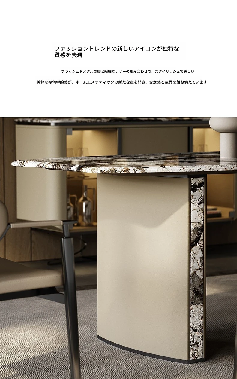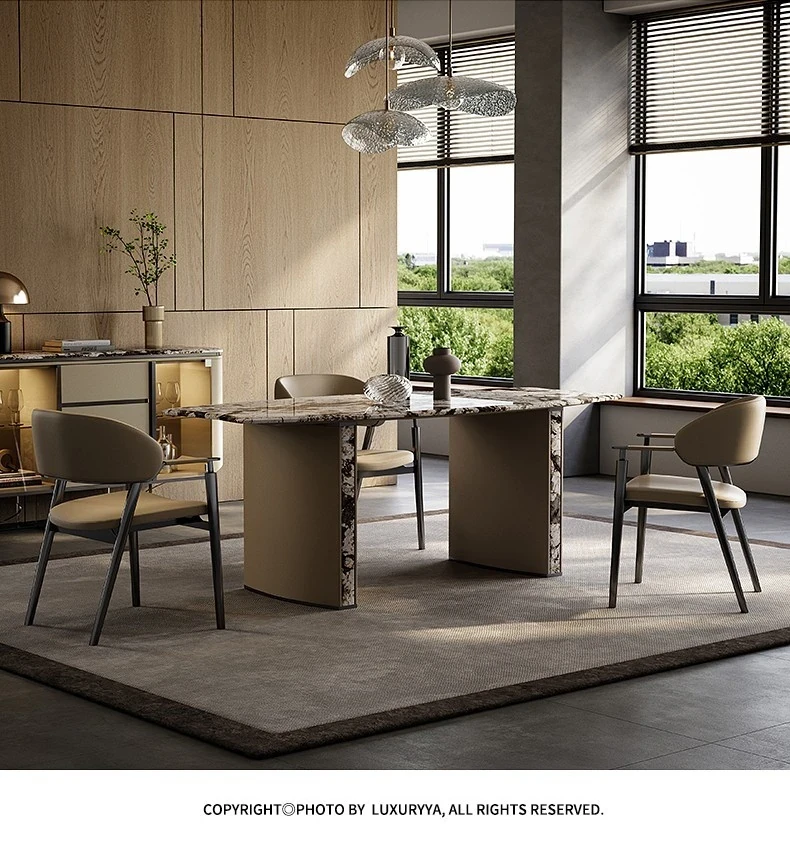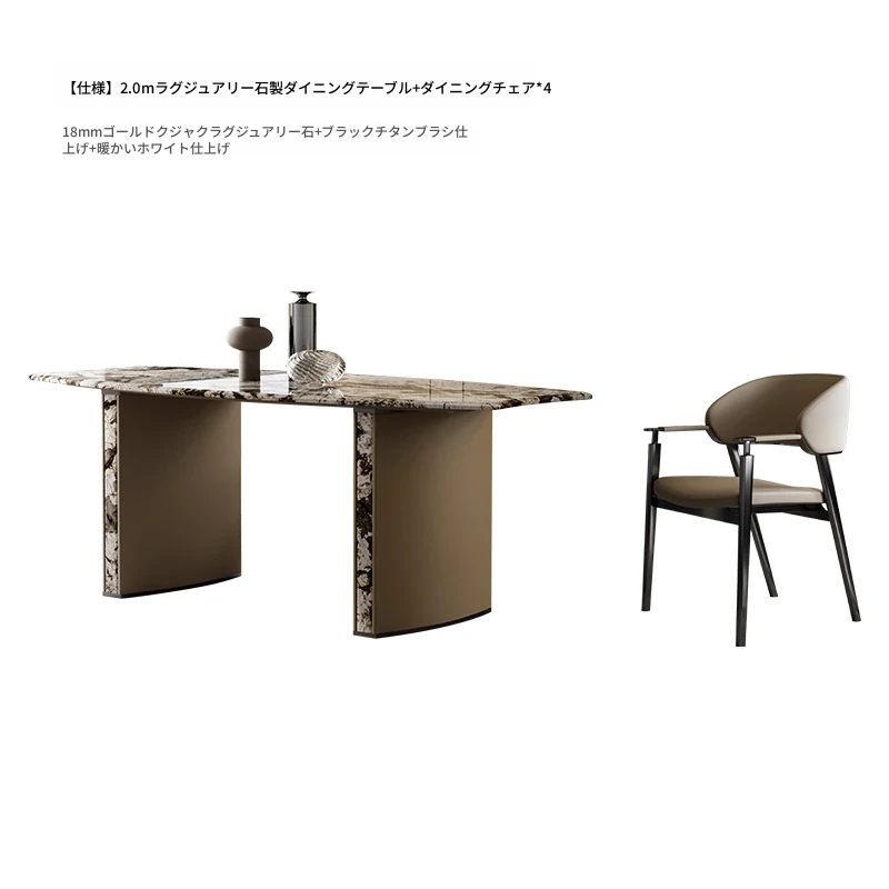 ラグジュアリー天然大理石ダイニングテーブル&チェアセット|モダンでシンプルな北欧スタイル|高級感あふれる長方形デザインで、特別なひとときを演出します!
