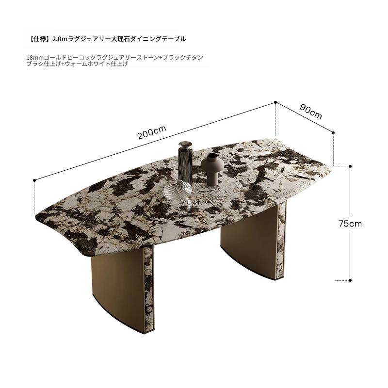 2.0メートルのダイニングテーブル/金孔雀大理石