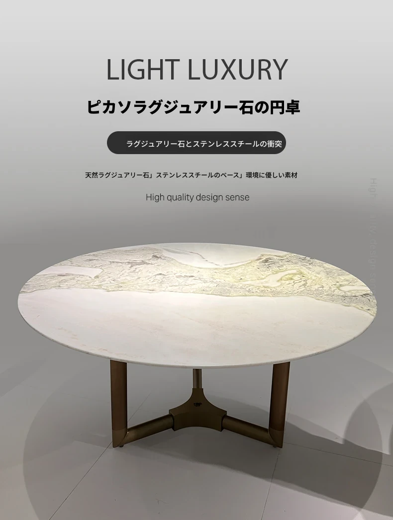 ピカソデザインの天然大理石ラウンドダイニングテーブル - 高級感溢れるリビング用軽奢スタイル、豪華なマンションや広々とした住空間に最適な家具。