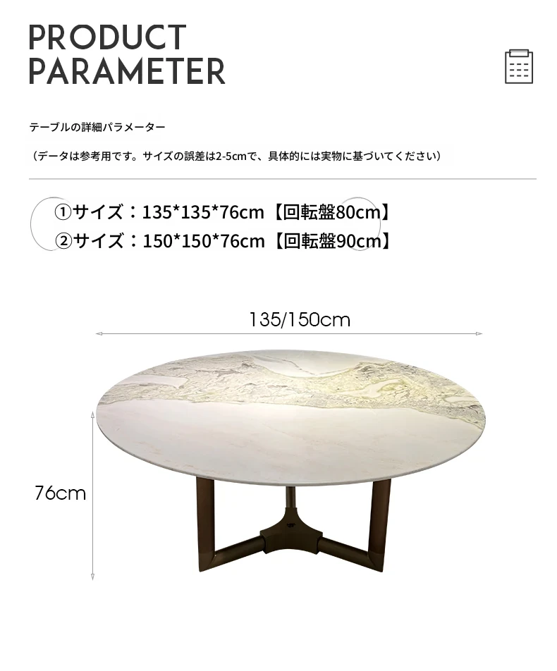 1.35*1.35メートル【回転盤80cm追加】ピカソラグジュアリー石材ダイニングテーブル