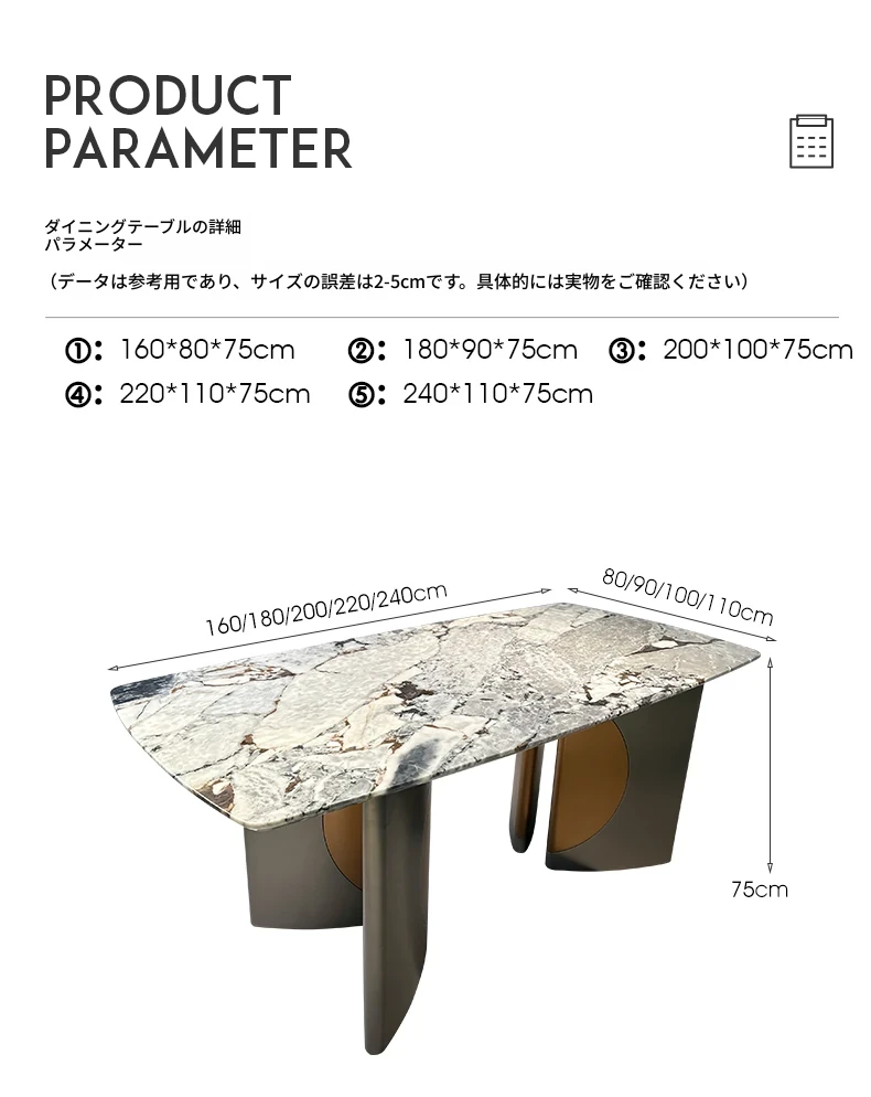 2.2*1.1メートルオーシャンストームラグジュアリーストーンダイニングテーブル