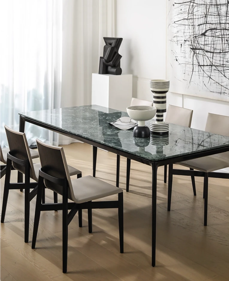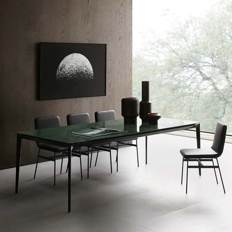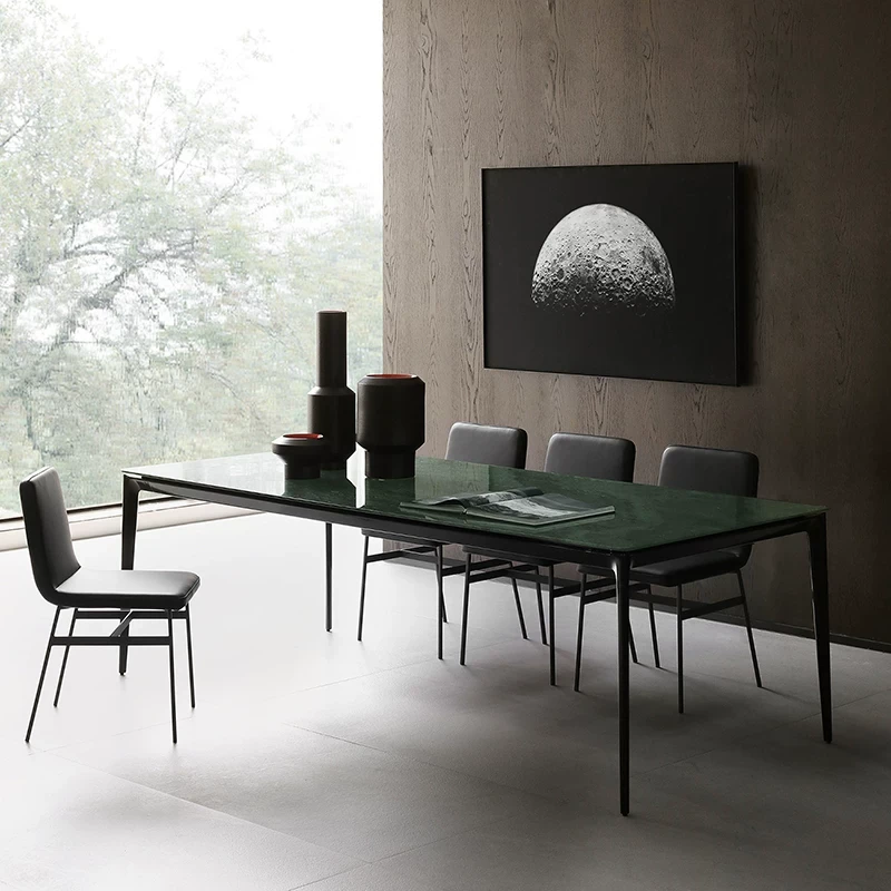 イタリアンメタル天然大理石長方形ダイニングテーブル|モダンでシンプルなデザイン|広々とした大サイズ|ラグジュアリーな極簡スタイルでおしゃれな食卓を演出!