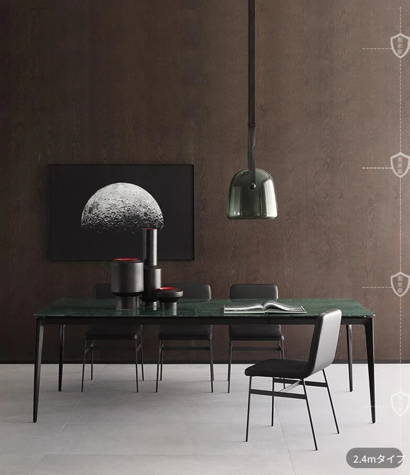 天然インドグリーン大理石:2.4mのダイニングテーブル 選べる板