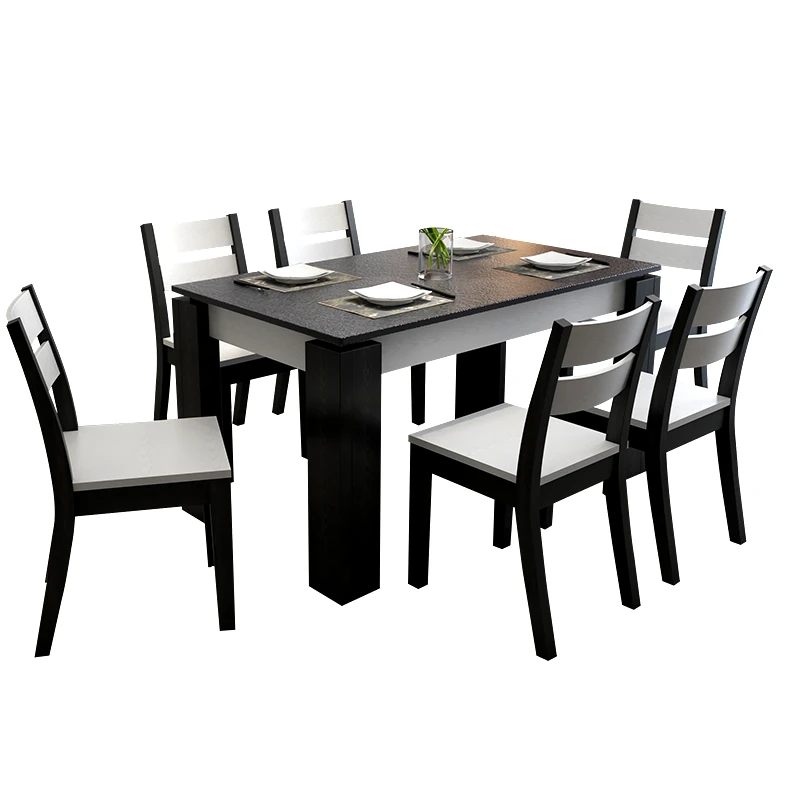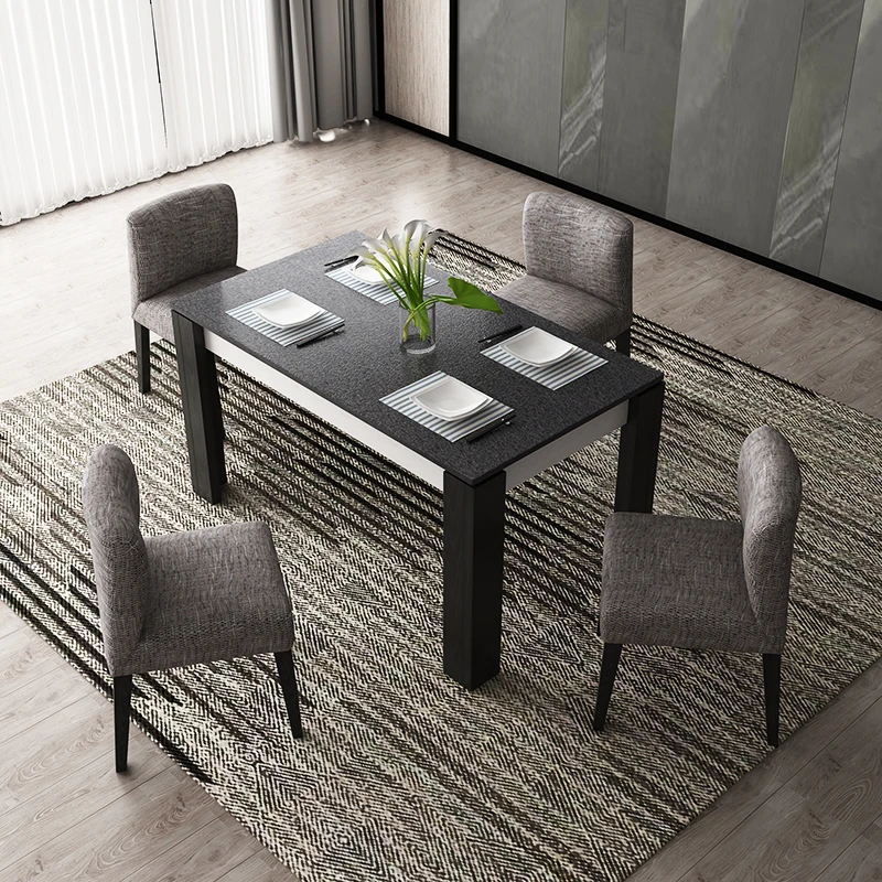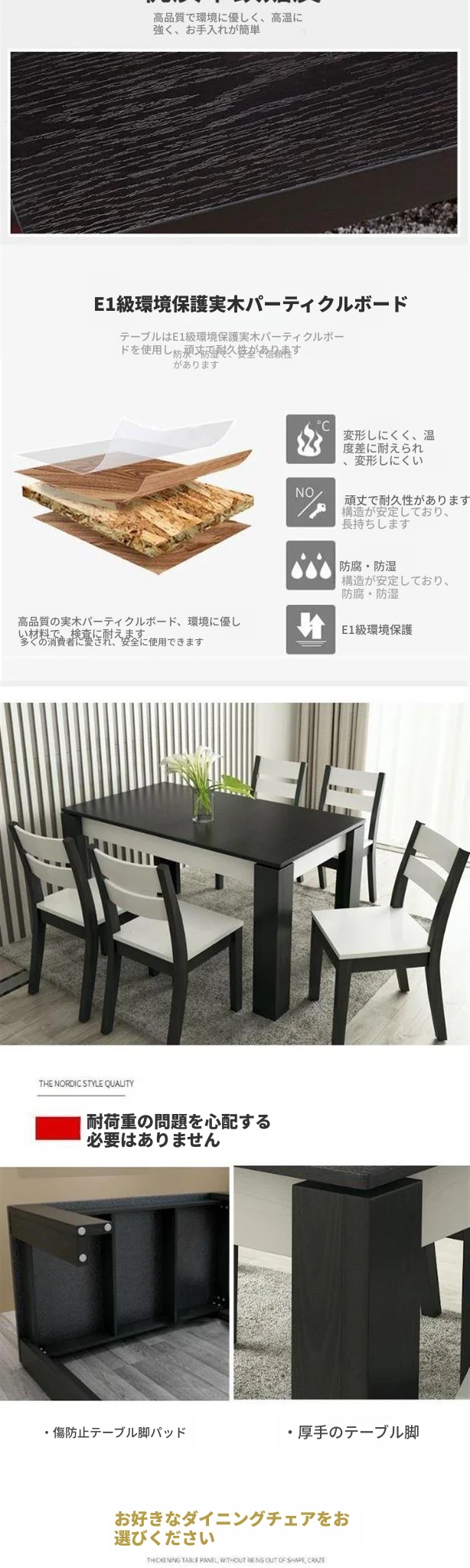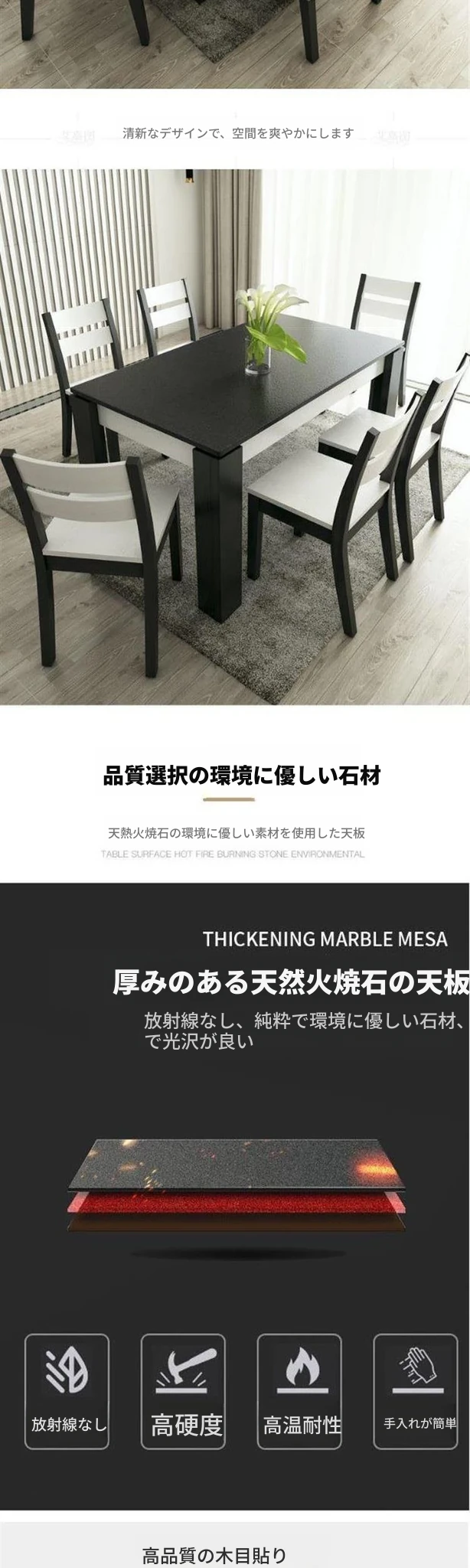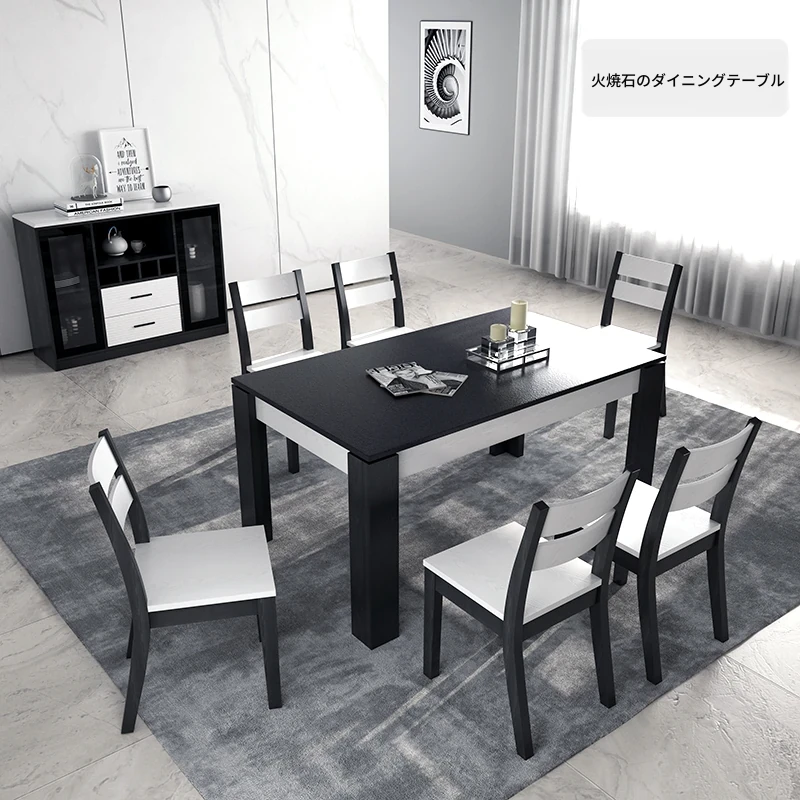 火焼石デザインのモダンなダイニングテーブル&チェアセット - シンプルでスタイリッシュ、北欧風の長方形テーブル。小さなスペースにもぴったり!家庭用に最適な一品で、食卓を華やかに演出します。