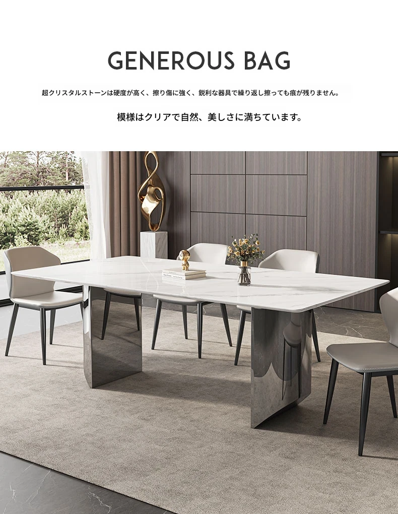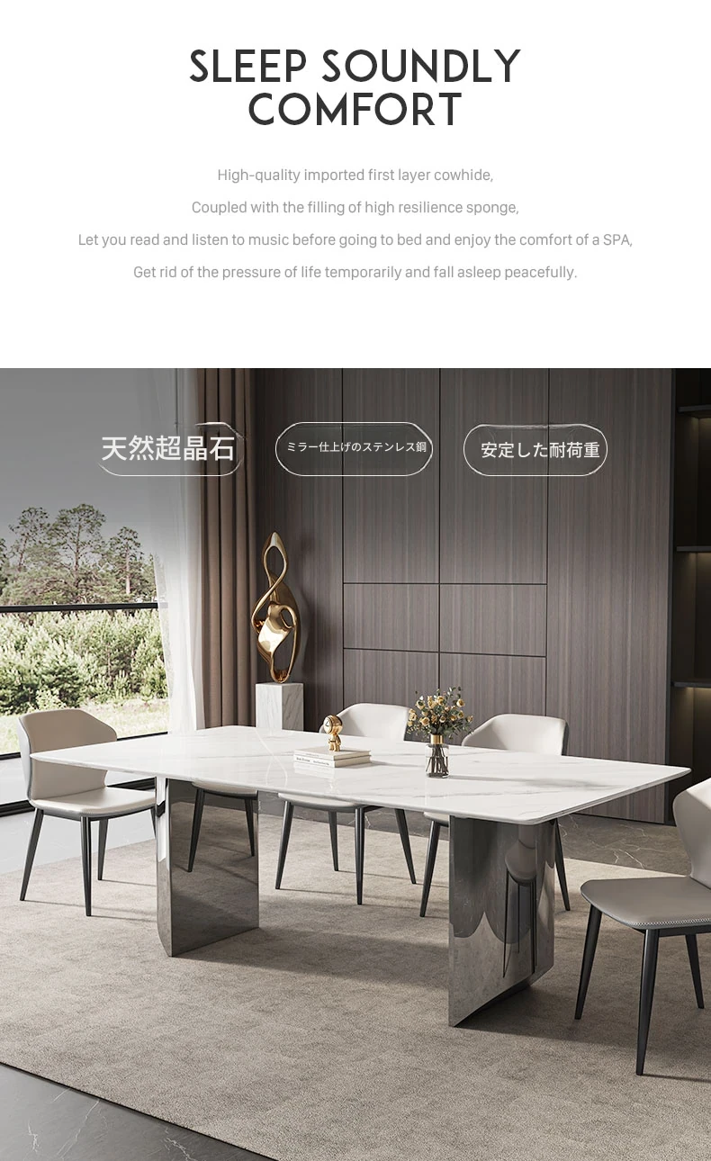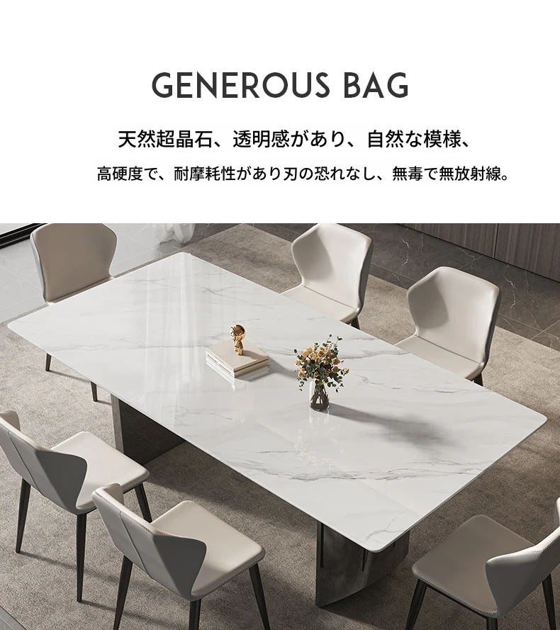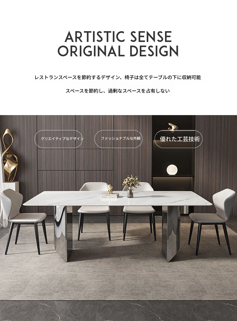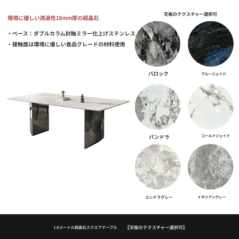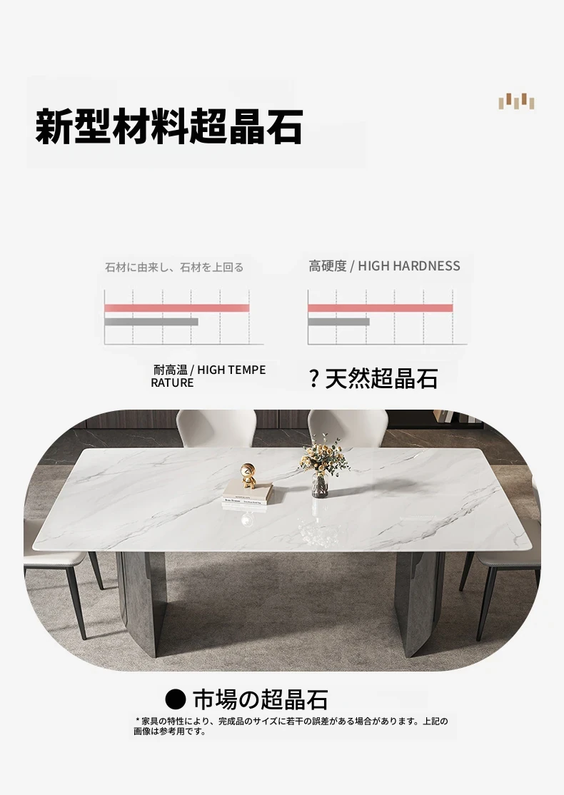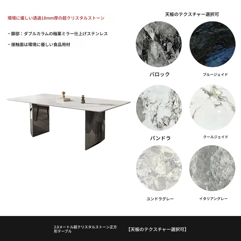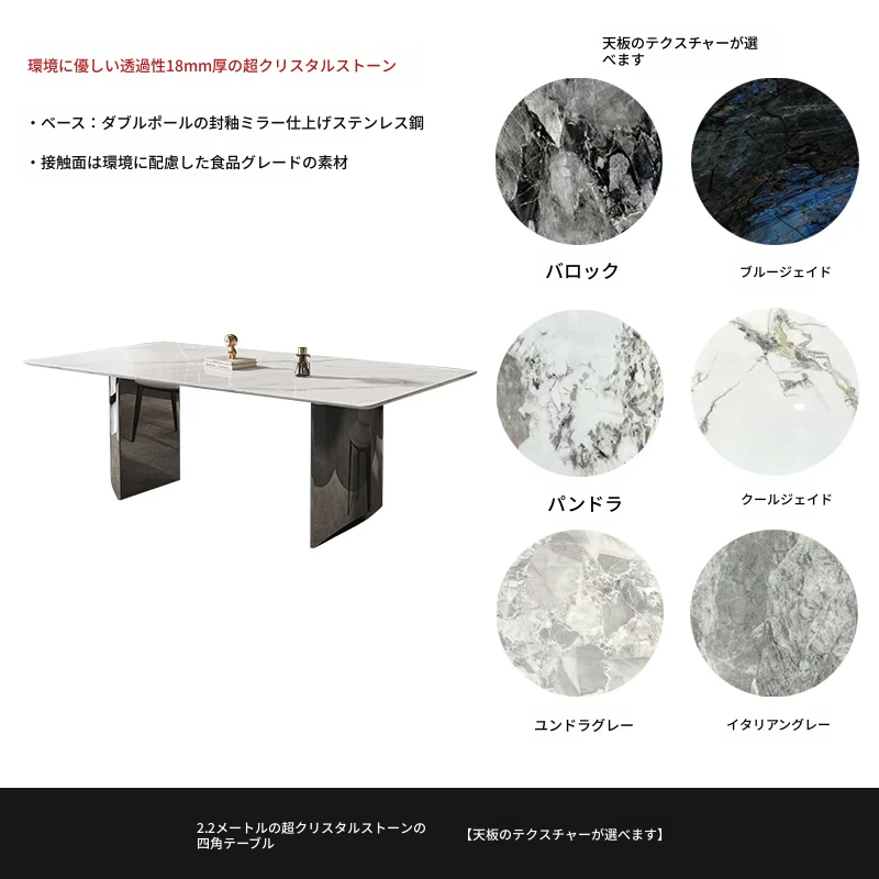 イタリアンミニマリズムの超クリスタルストーンダイニングテーブル - モダンでシンプルなリビングにぴったり!大理石と微晶石の美しい組み合わせで、家族や友人との特別なひとときを演出します。快適なダイニングチェアとのセットで、食卓を華やかに彩ります。