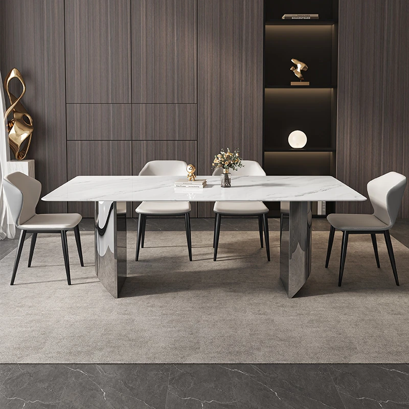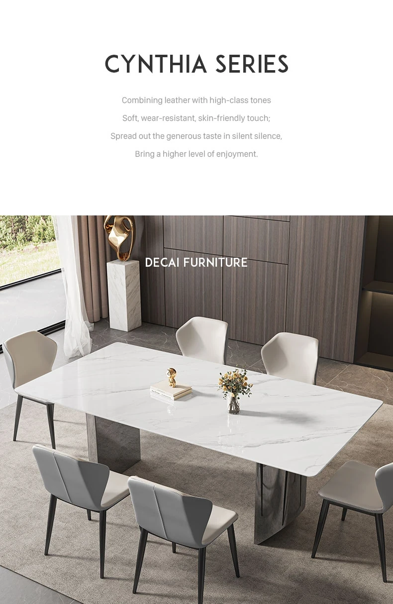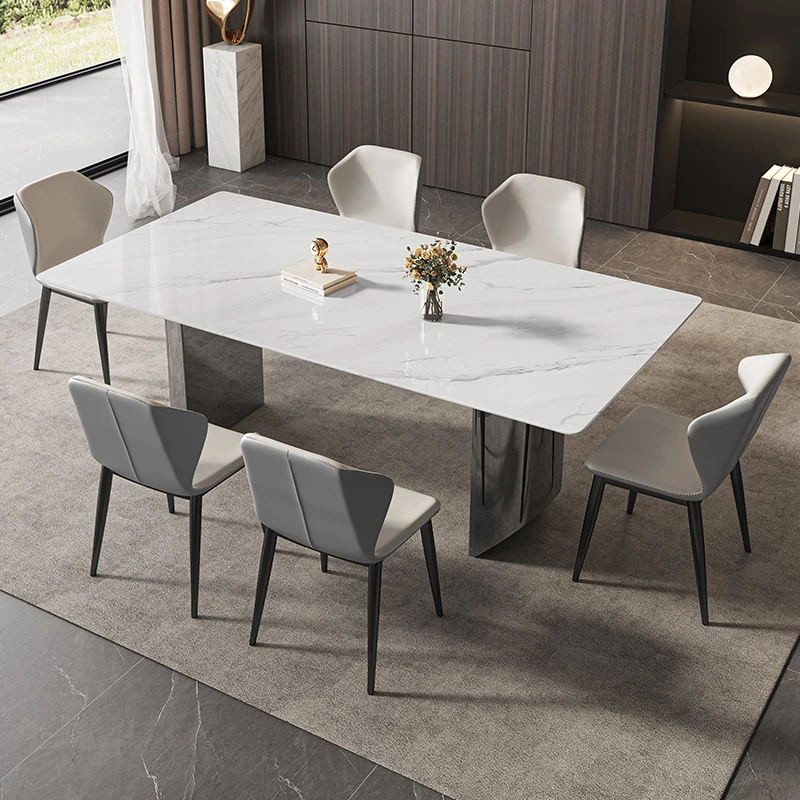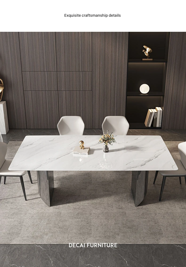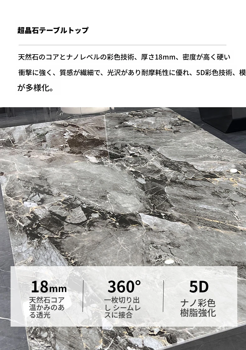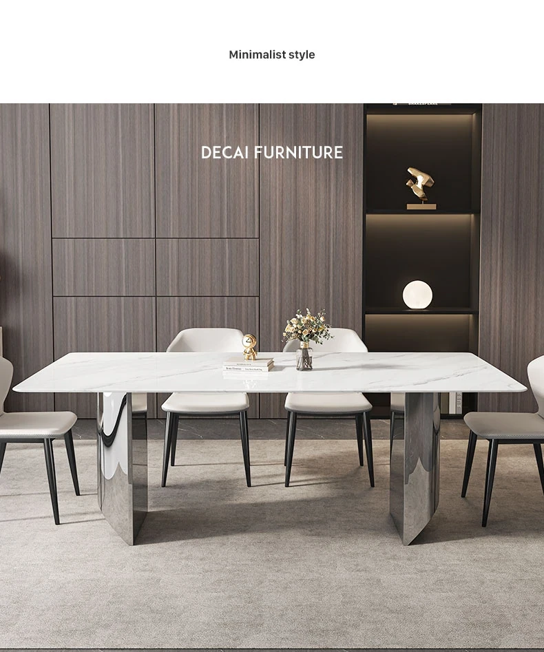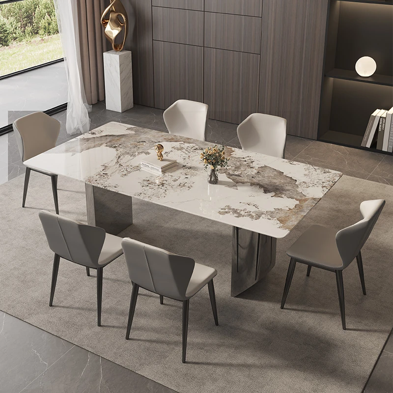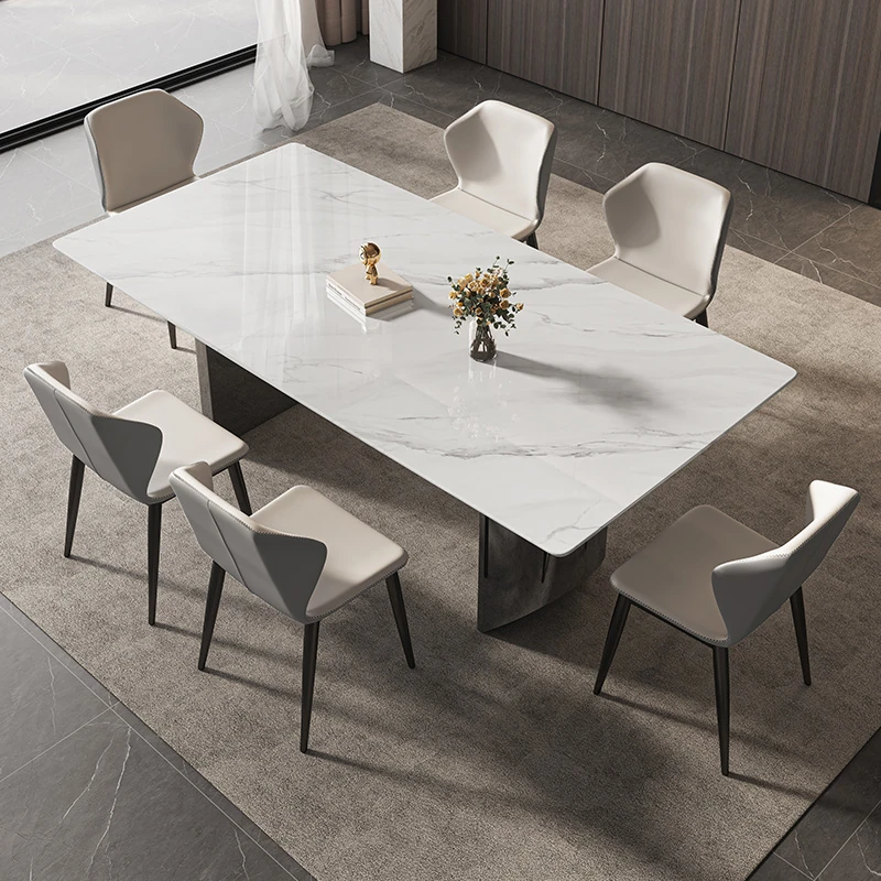 イタリアンミニマリズムの超クリスタルストーンダイニングテーブル - モダンでシンプルなリビングにぴったり!大理石と微晶石の美しい組み合わせで、家族や友人との特別なひとときを演出します。快適なダイニングチェアとのセットで、食卓を華やかに彩ります。