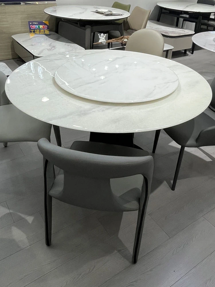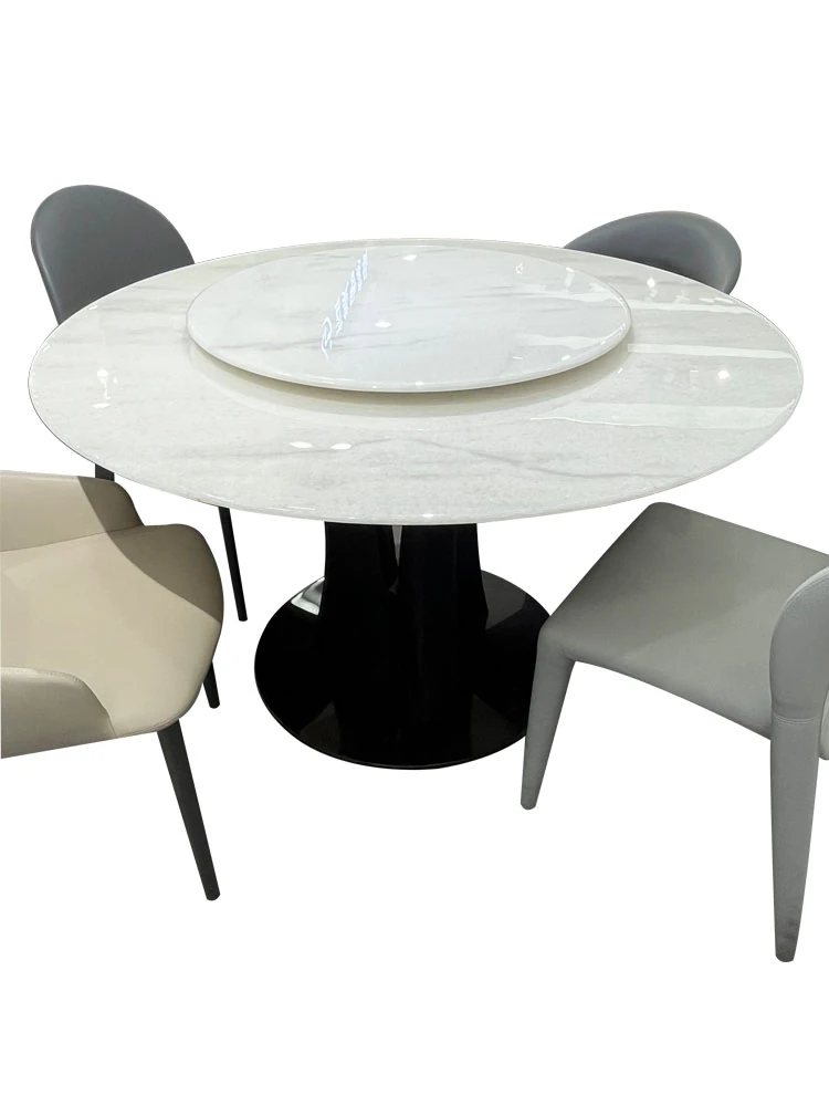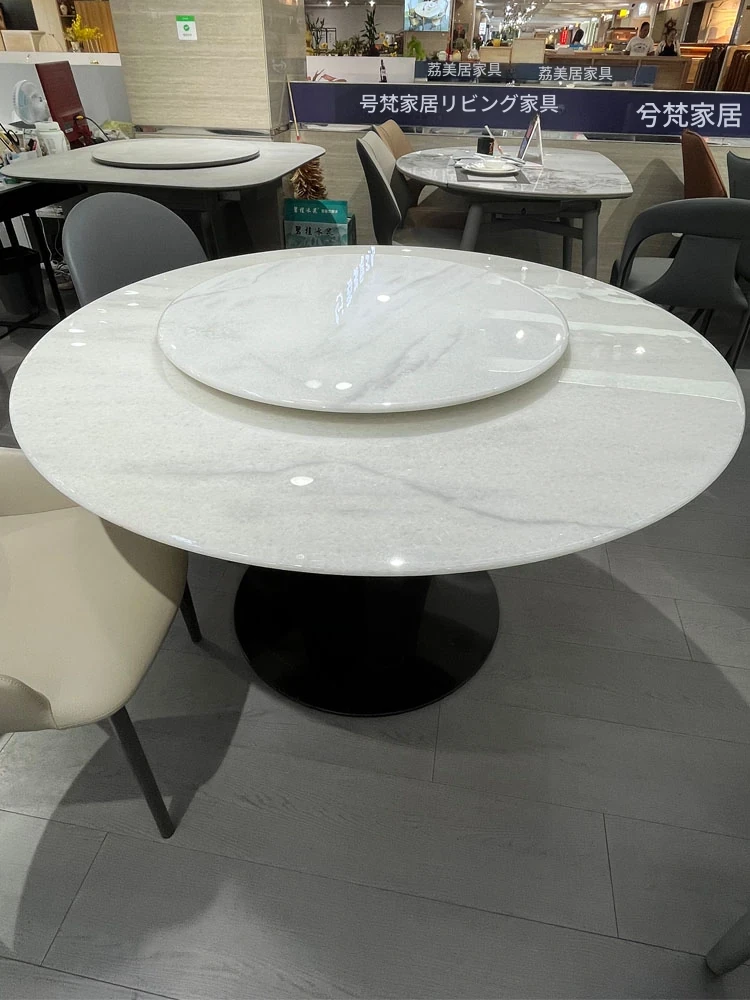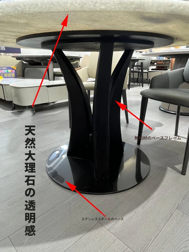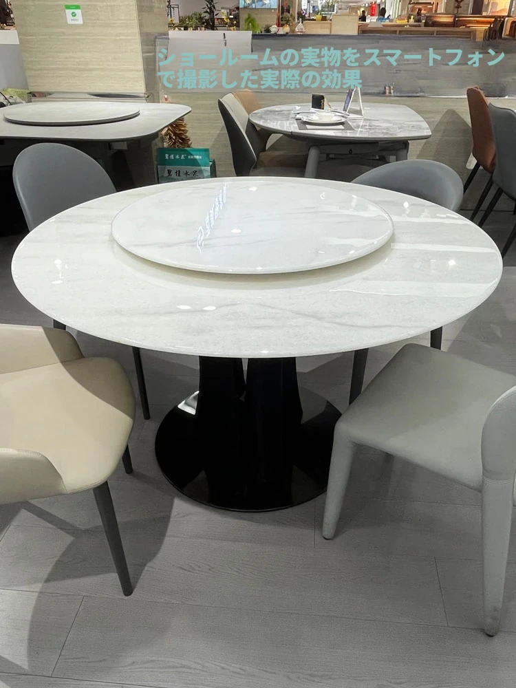 天然大理石の透過性を持つ現代的な円形ダイニングテーブルセット - シンプルで洗練されたデザイン、家族団らんや特別な場面に最適!おしゃれな回転テーブルで食事を楽しむ新しいスタイル。