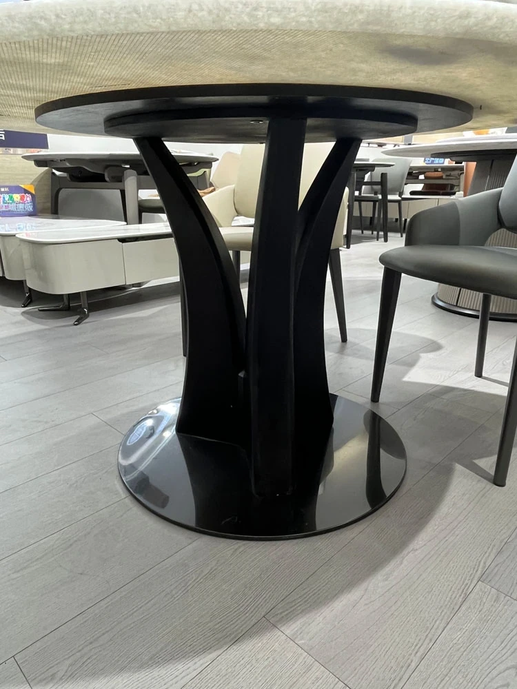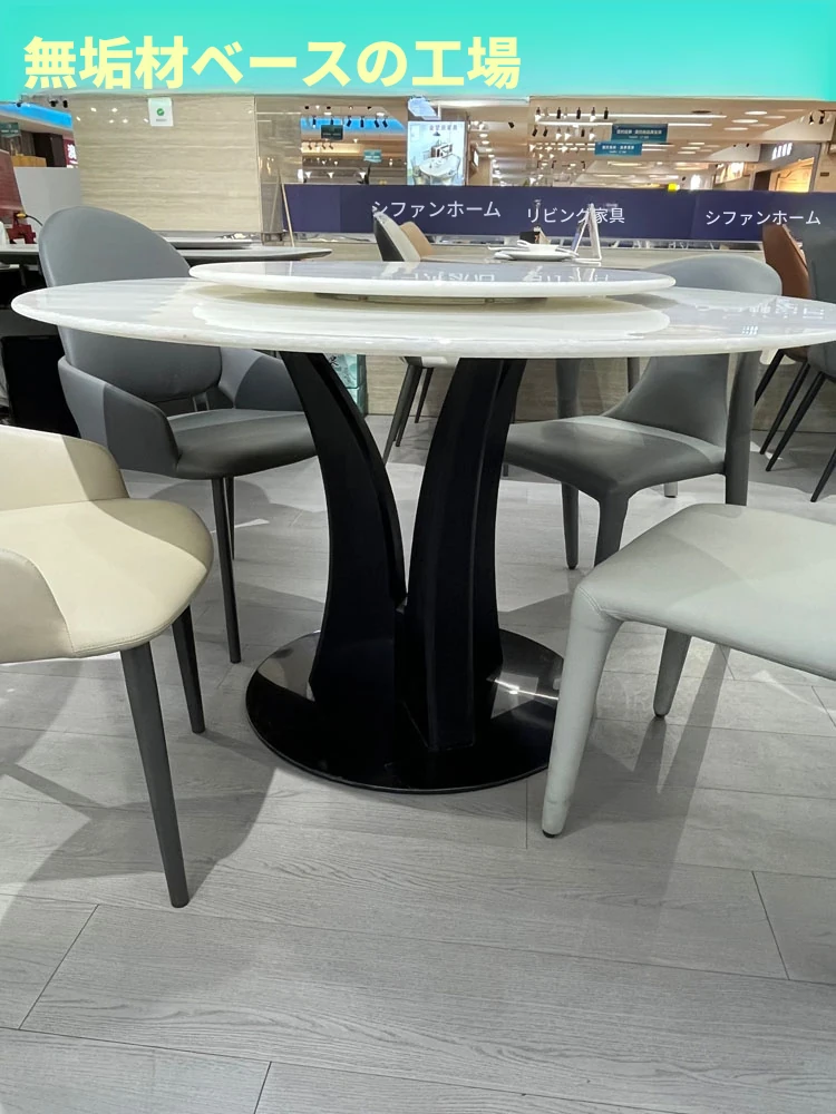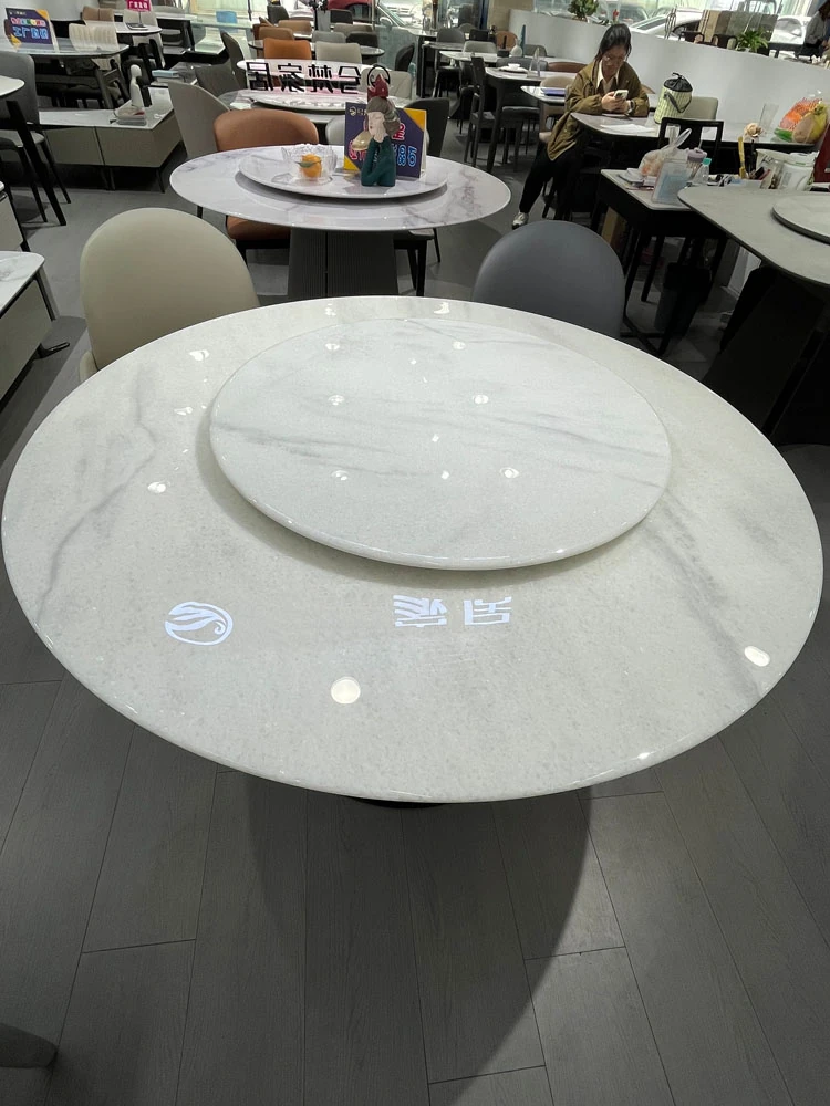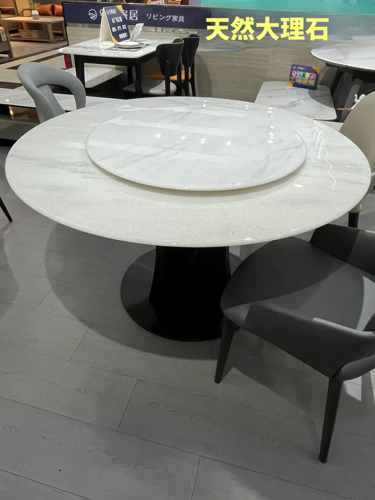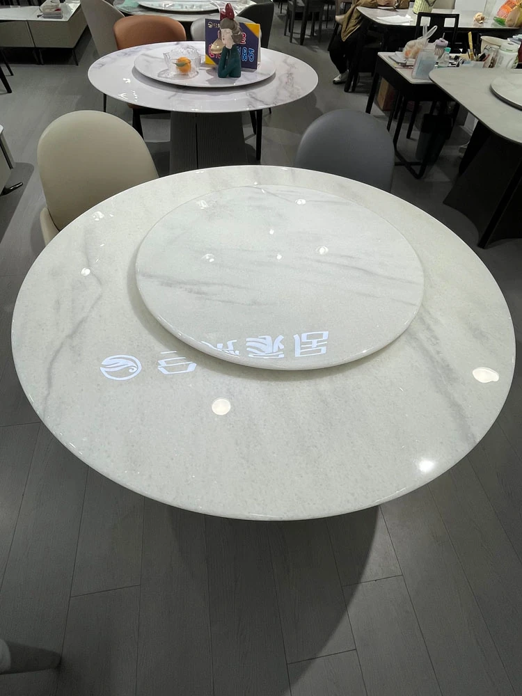 天然大理石の透過性を持つ現代的な円形ダイニングテーブルセット - シンプルで洗練されたデザイン、家族団らんや特別な場面に最適!おしゃれな回転テーブルで食事を楽しむ新しいスタイル。